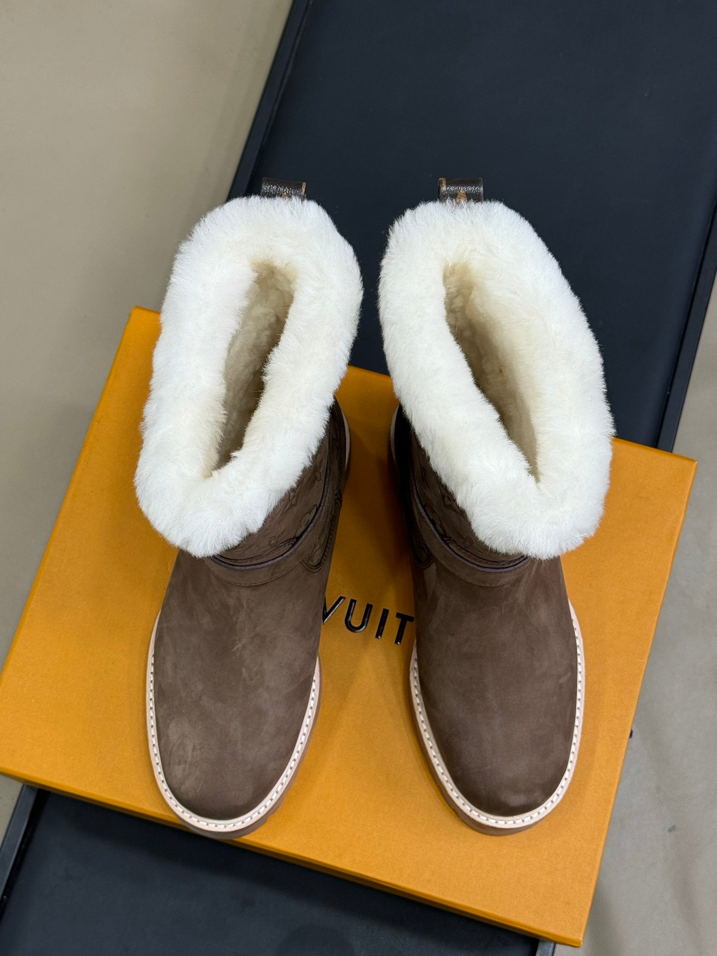 LV 25 Snow Boots Brown White Leather Wool 576936