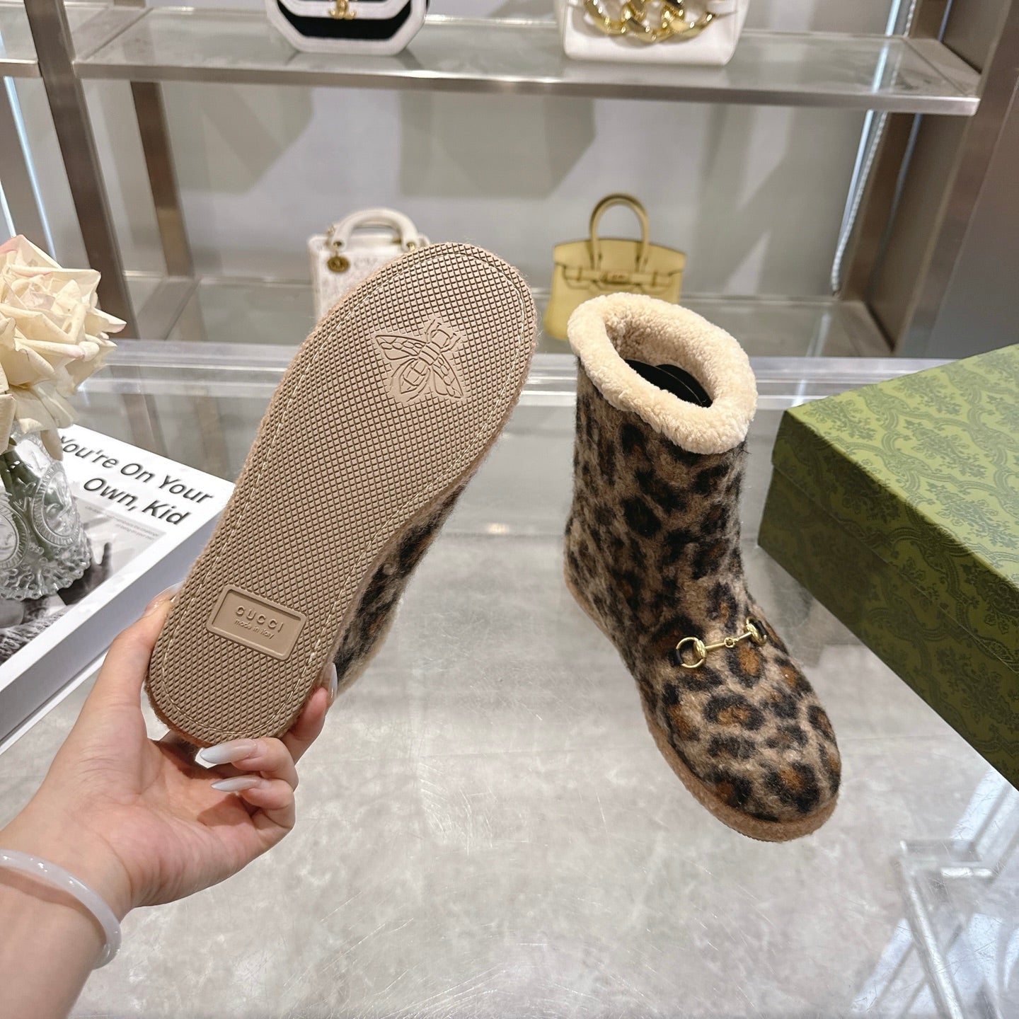 GG Horsebit Snow Leopard Woolen Fleece 576258