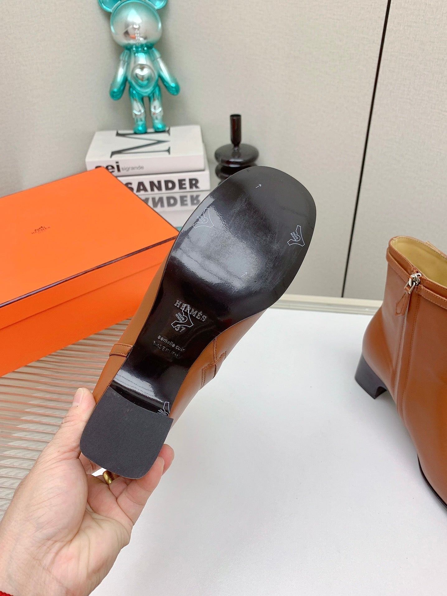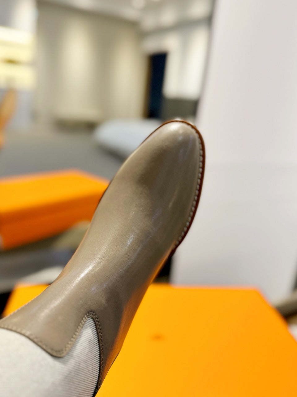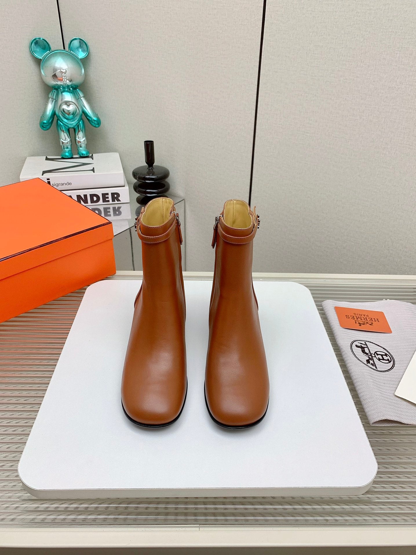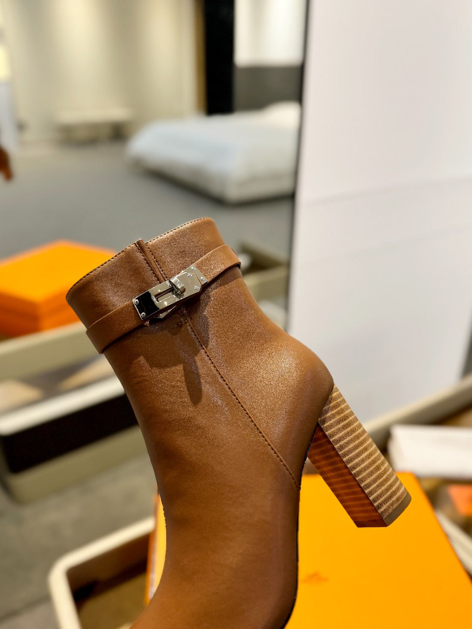 HM Saint Germain Ankle Boot 85mm Beige Light Brown Cowhide 961649