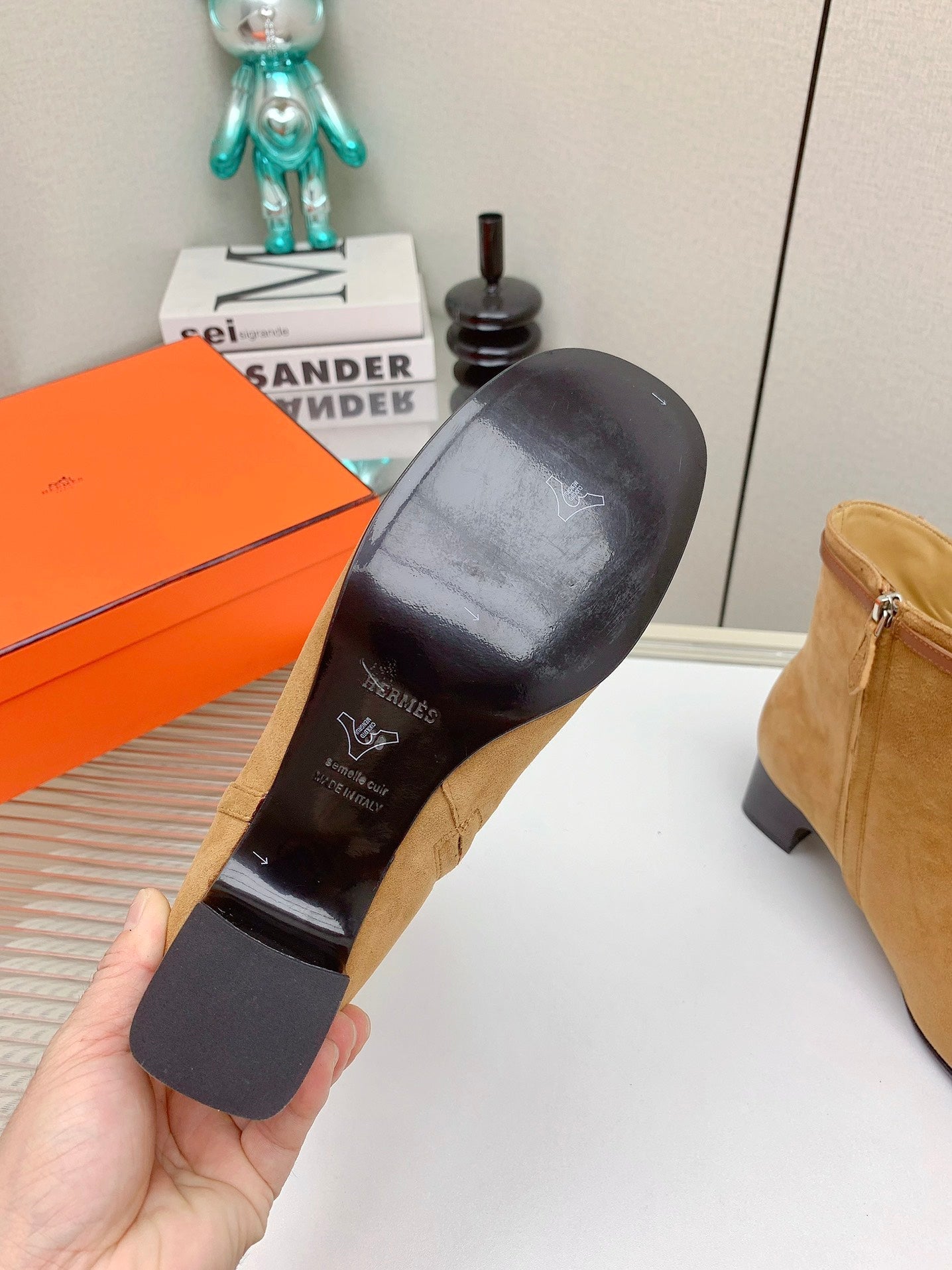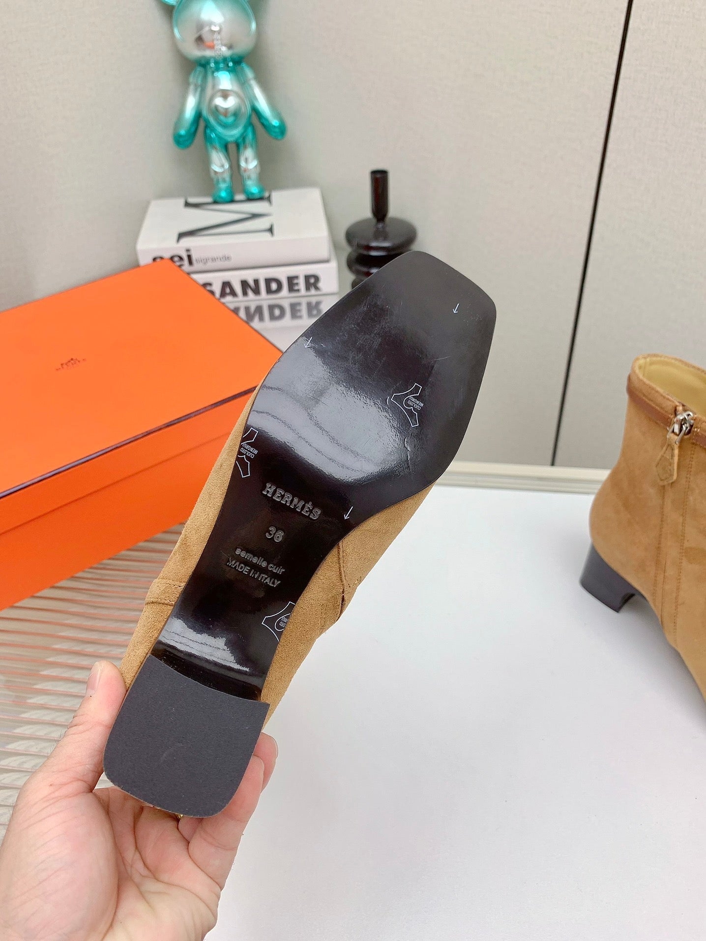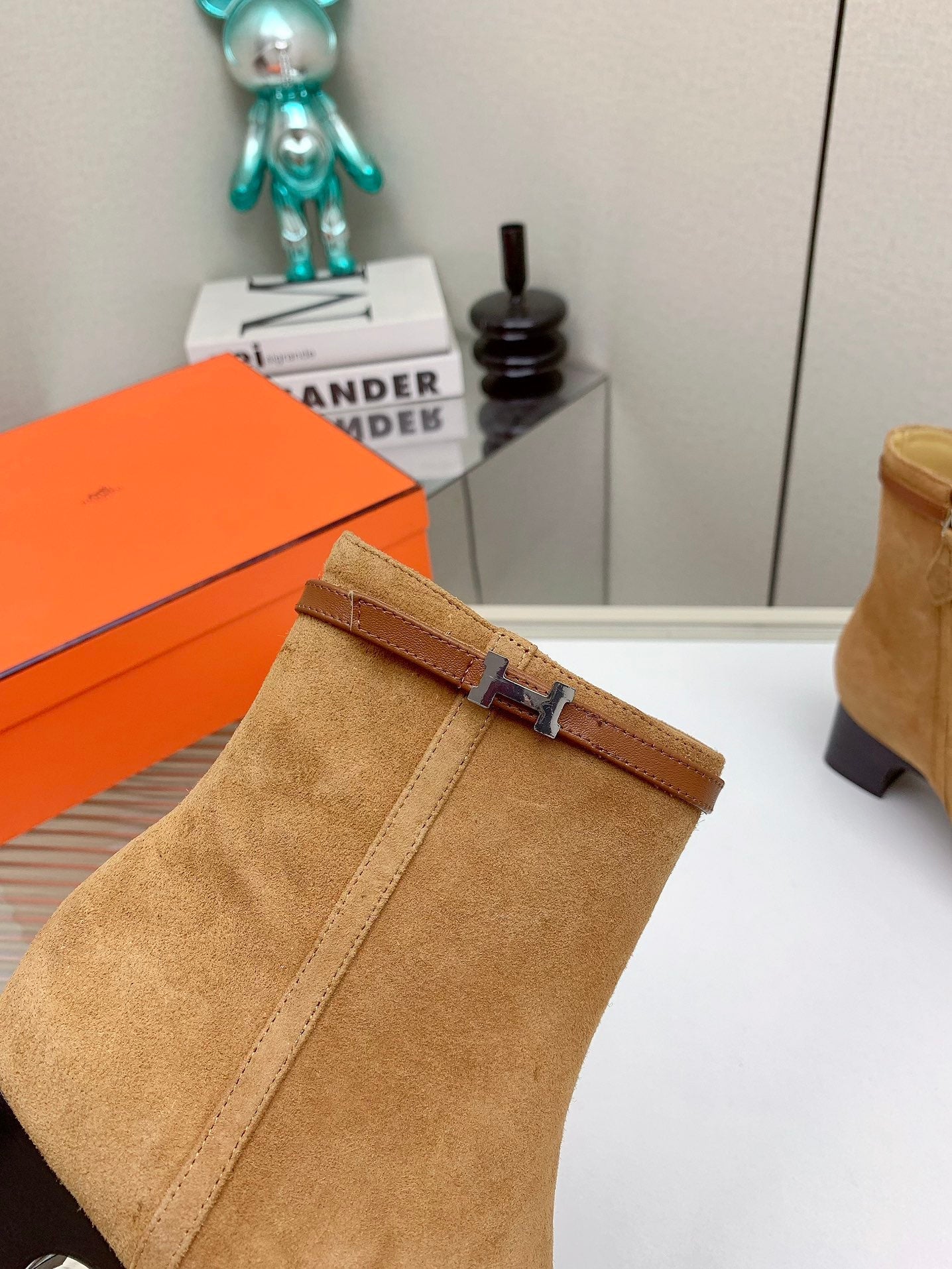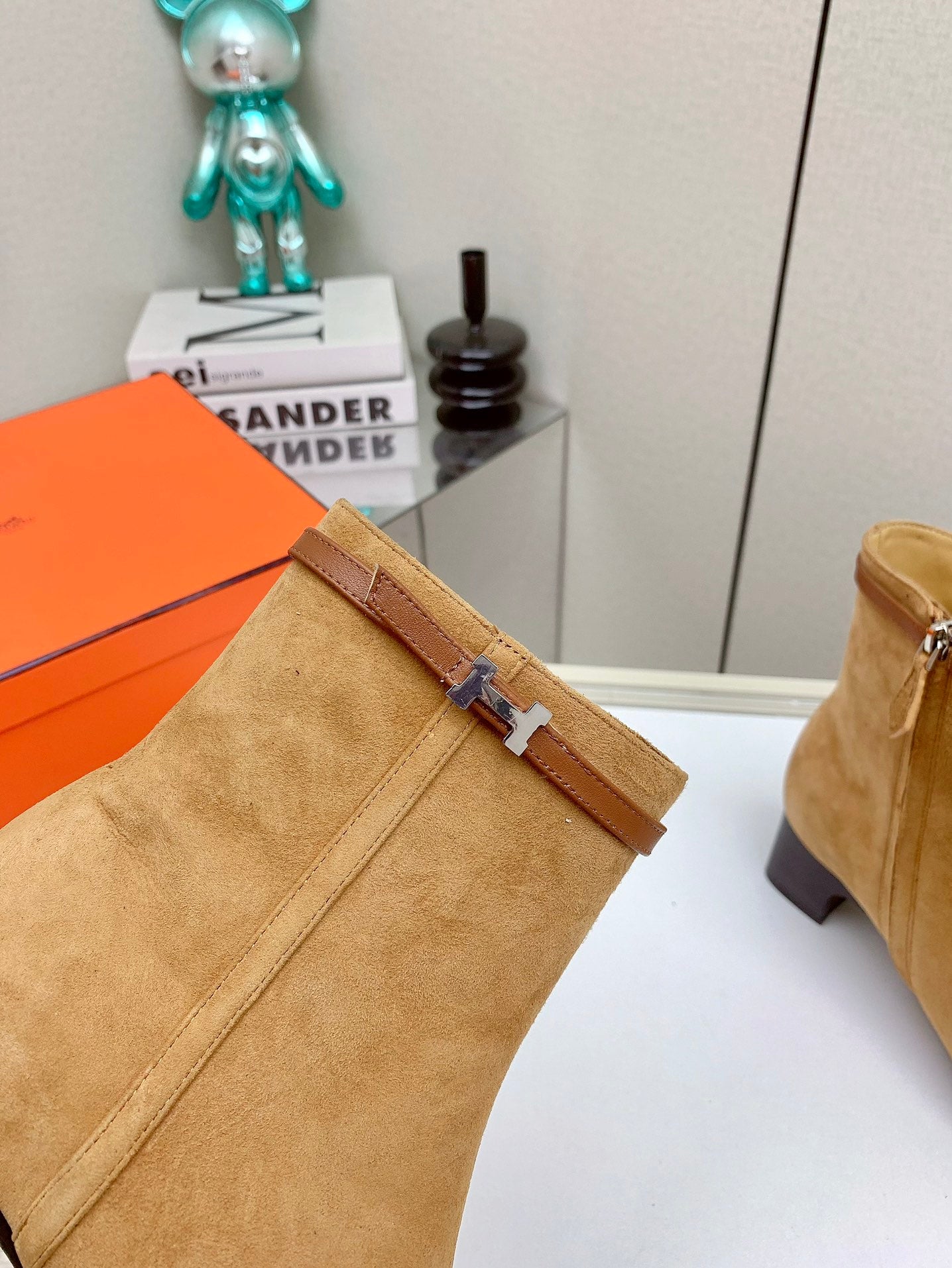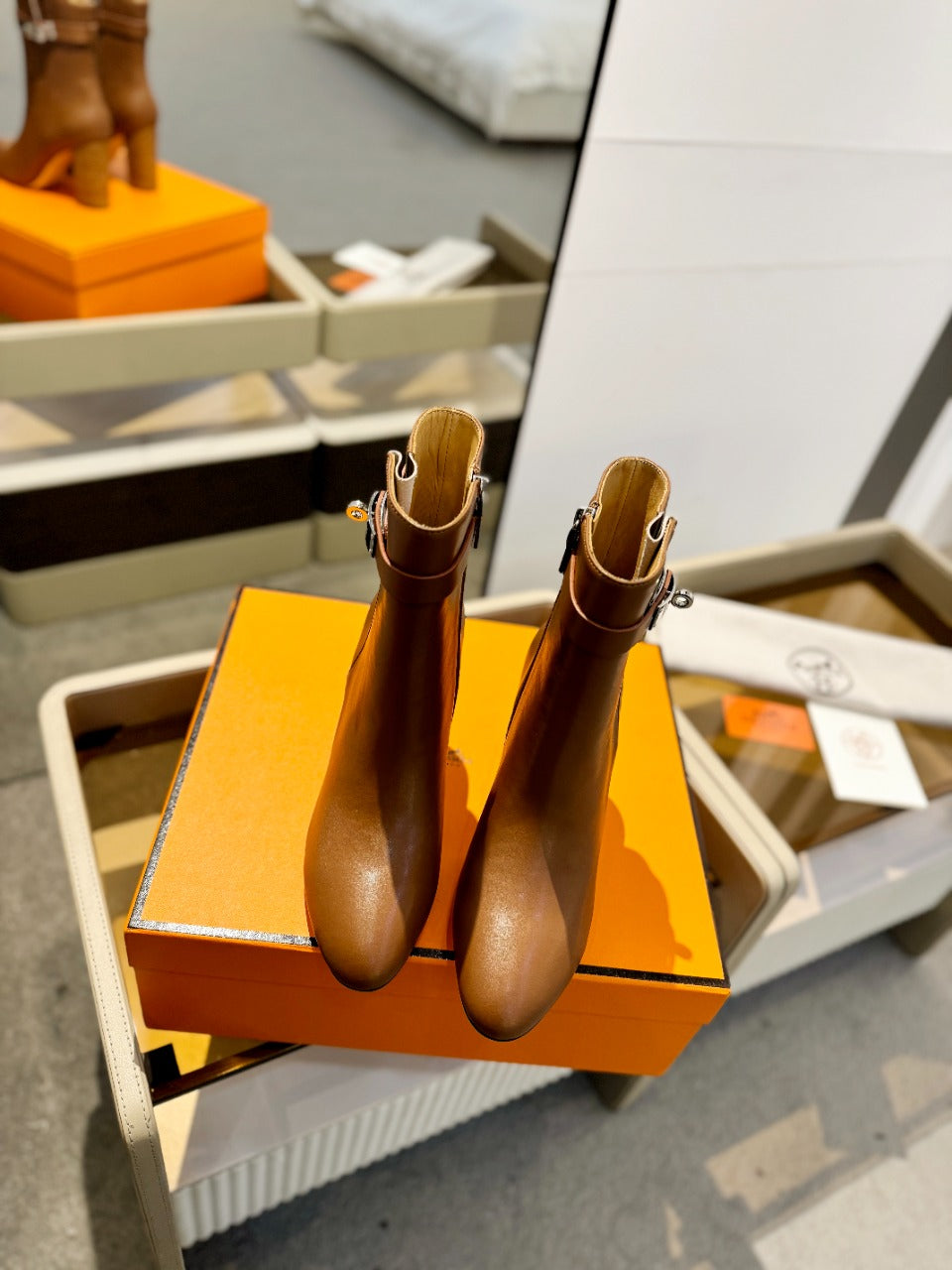 HM Ankle Boots 60mm Brown Orange Calfskin And Suede 972381