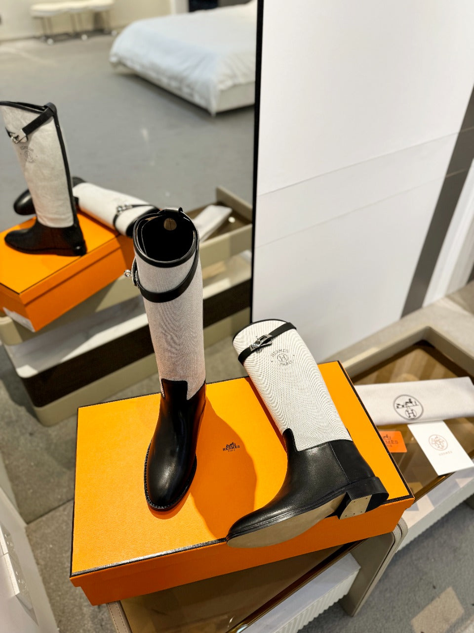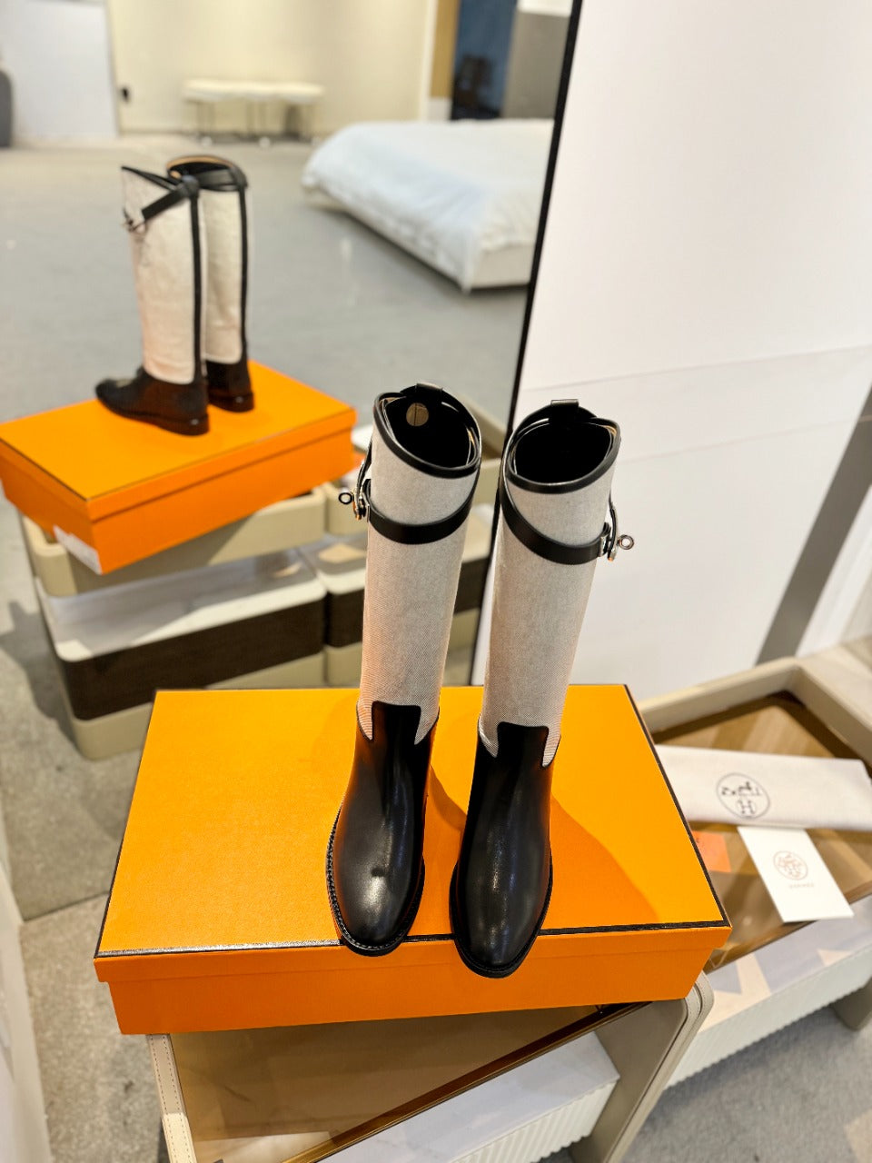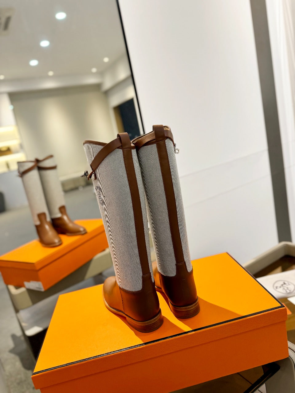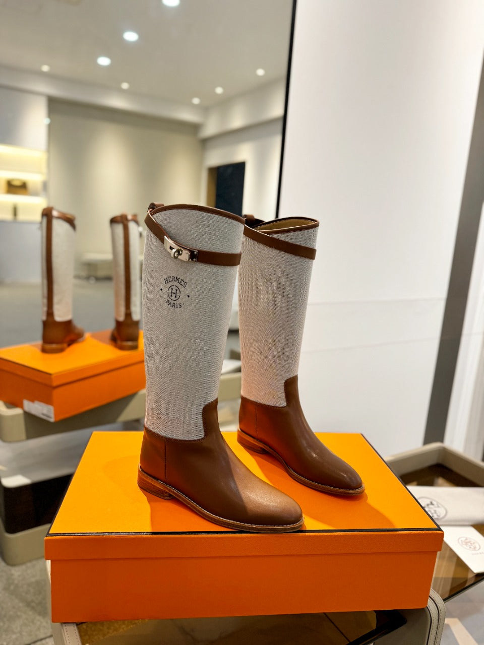 HM Jumping Boot 20mm Beige Light Brown Mix Grey White Cowhide And Tech Fabric 961655