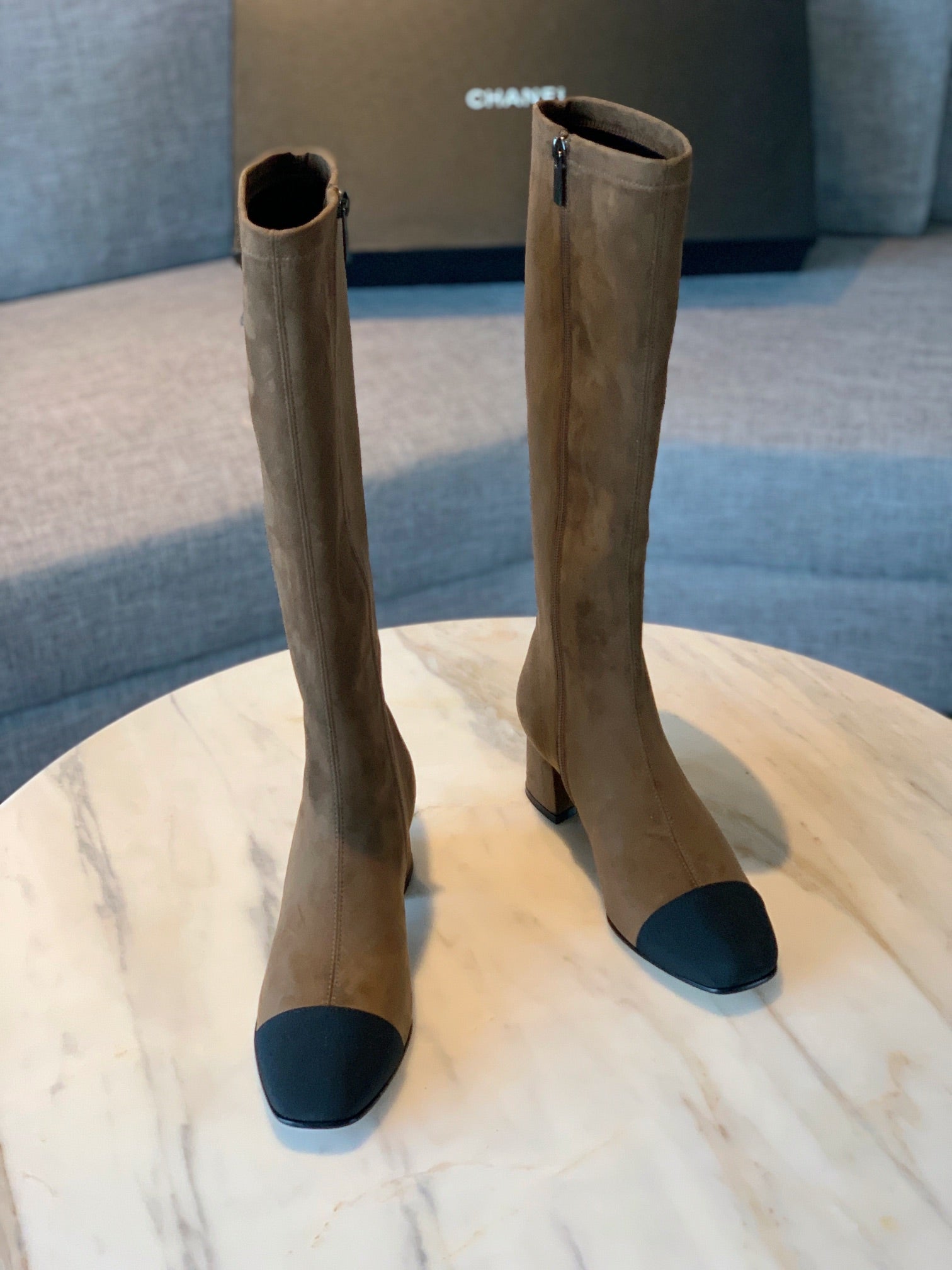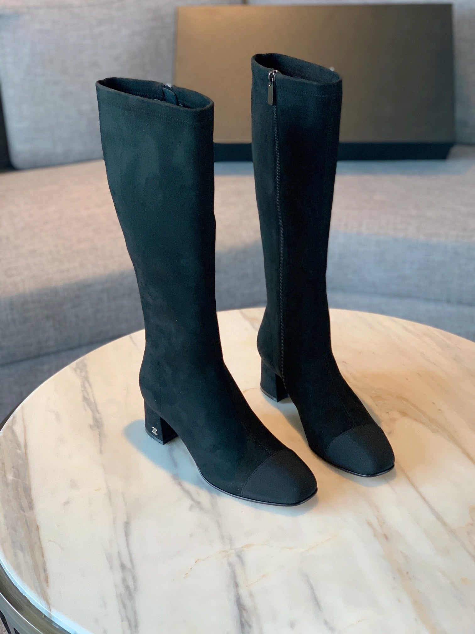 CC High Boots 50mm In Coffee Black Suede And Lycra Fabric 940062
