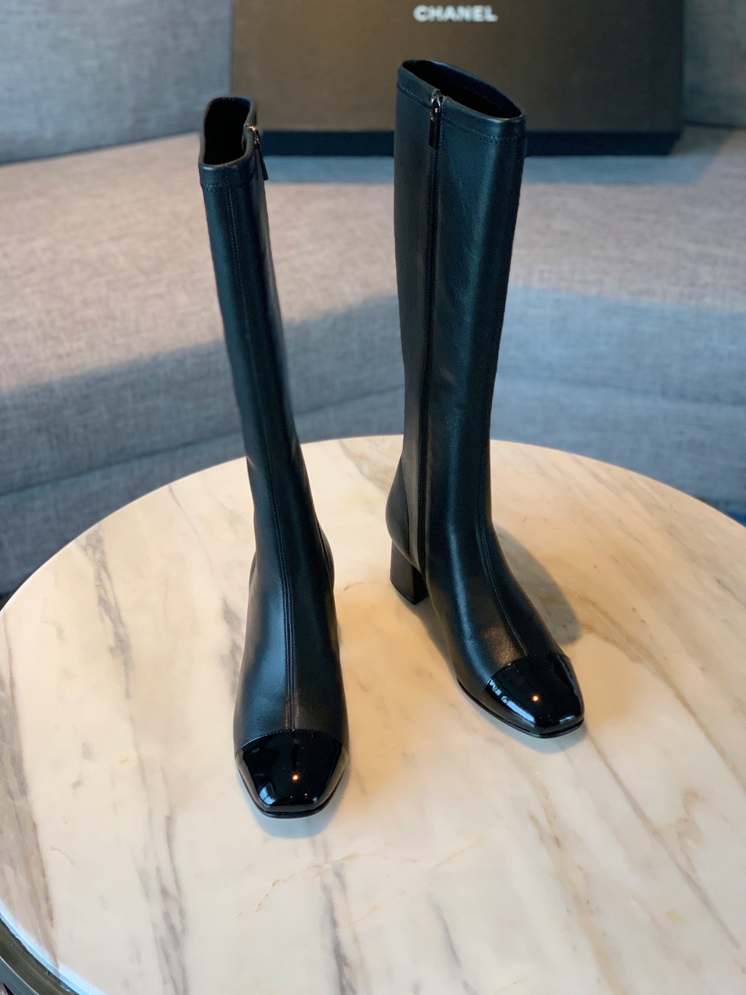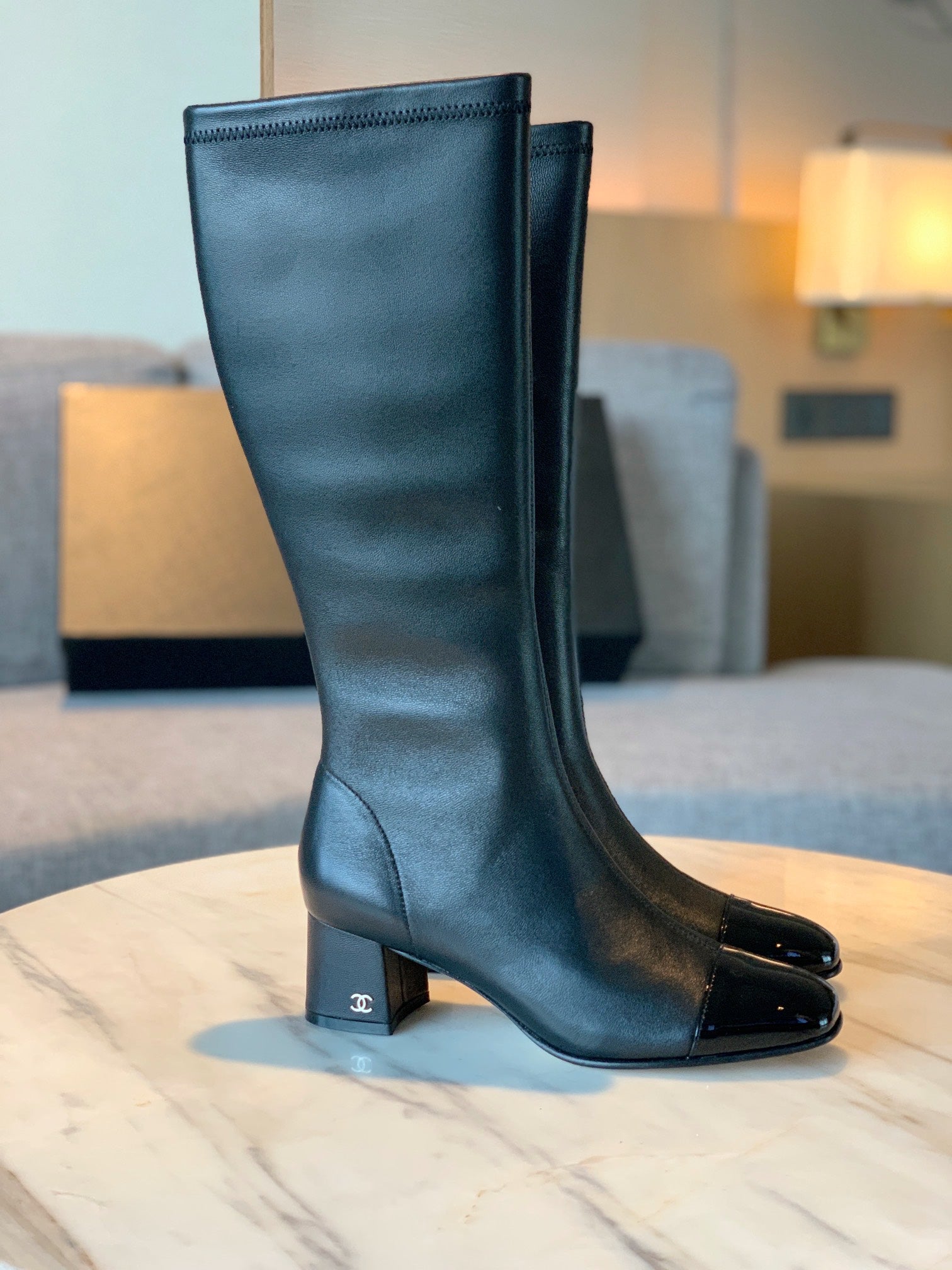 CC High Boots 50mm In Black Lambskin And Glossy Cowhide 940065