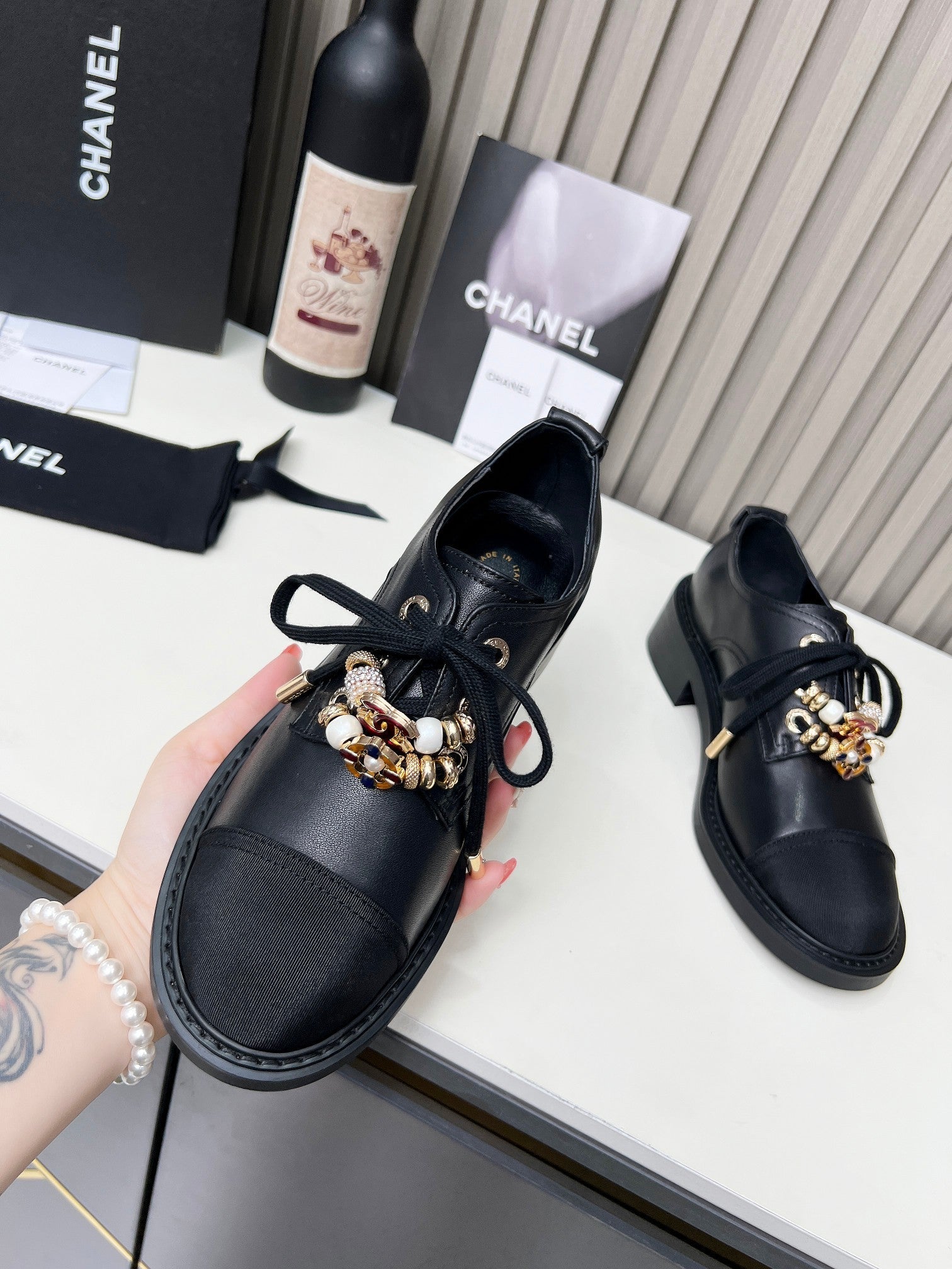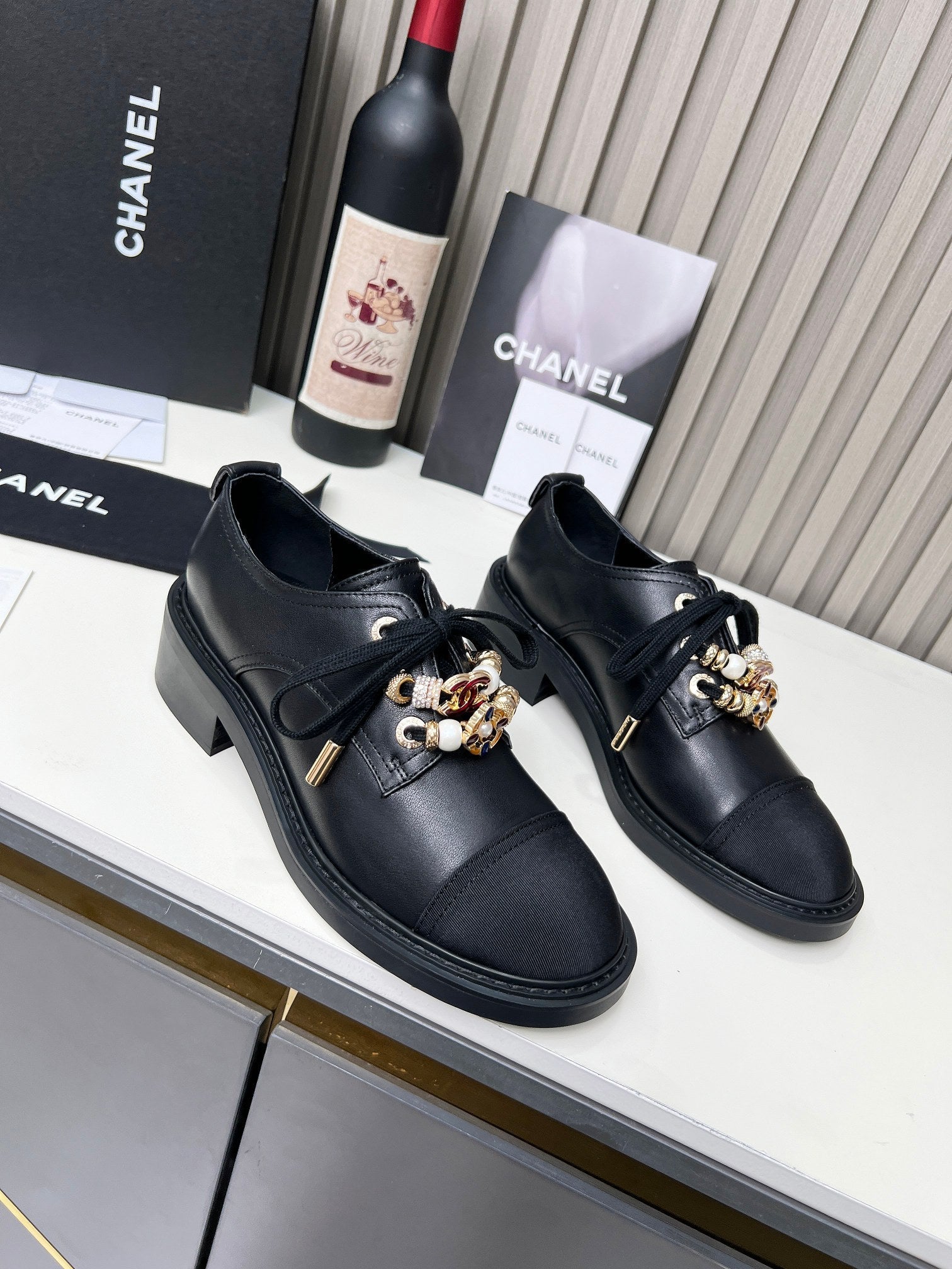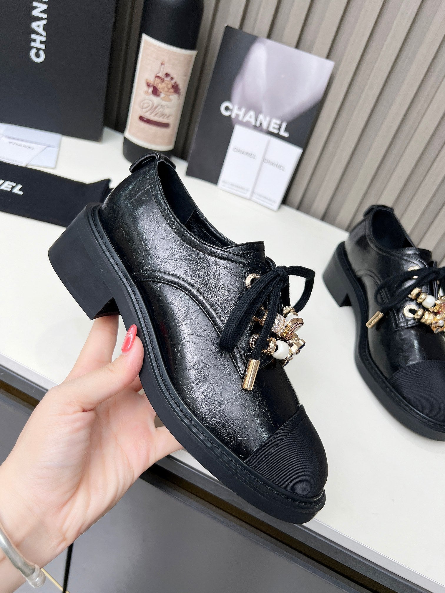 CC Shoe Oxford 50mm In Black Glossy Calfskin And Lycra Fabric 944547