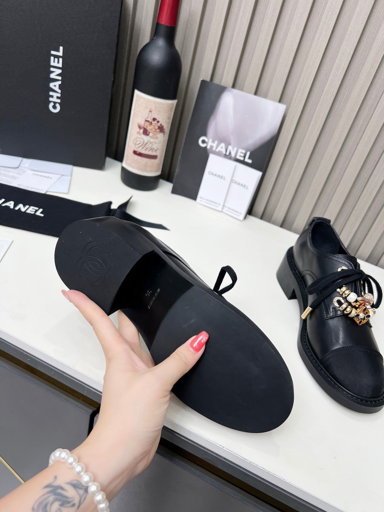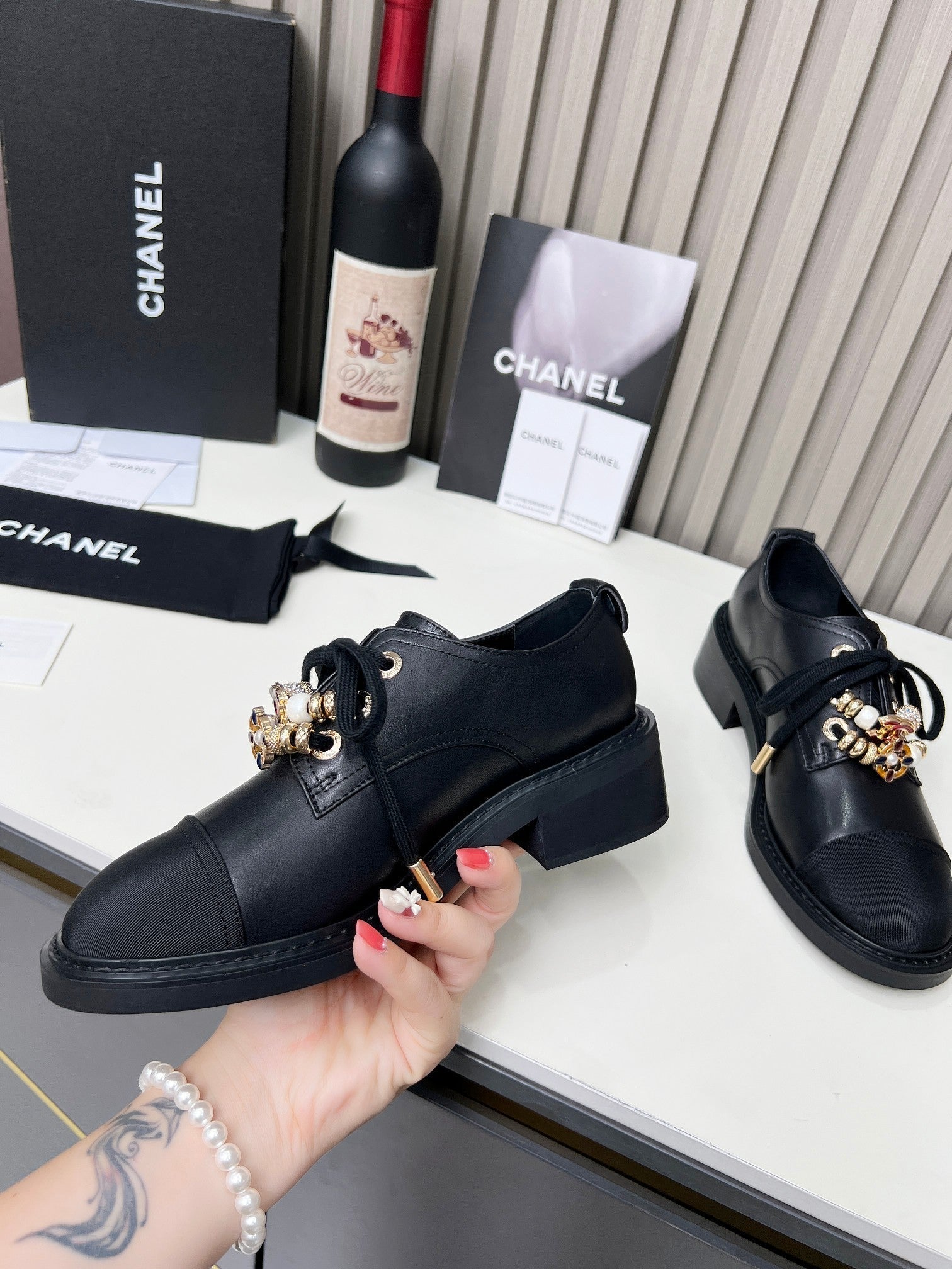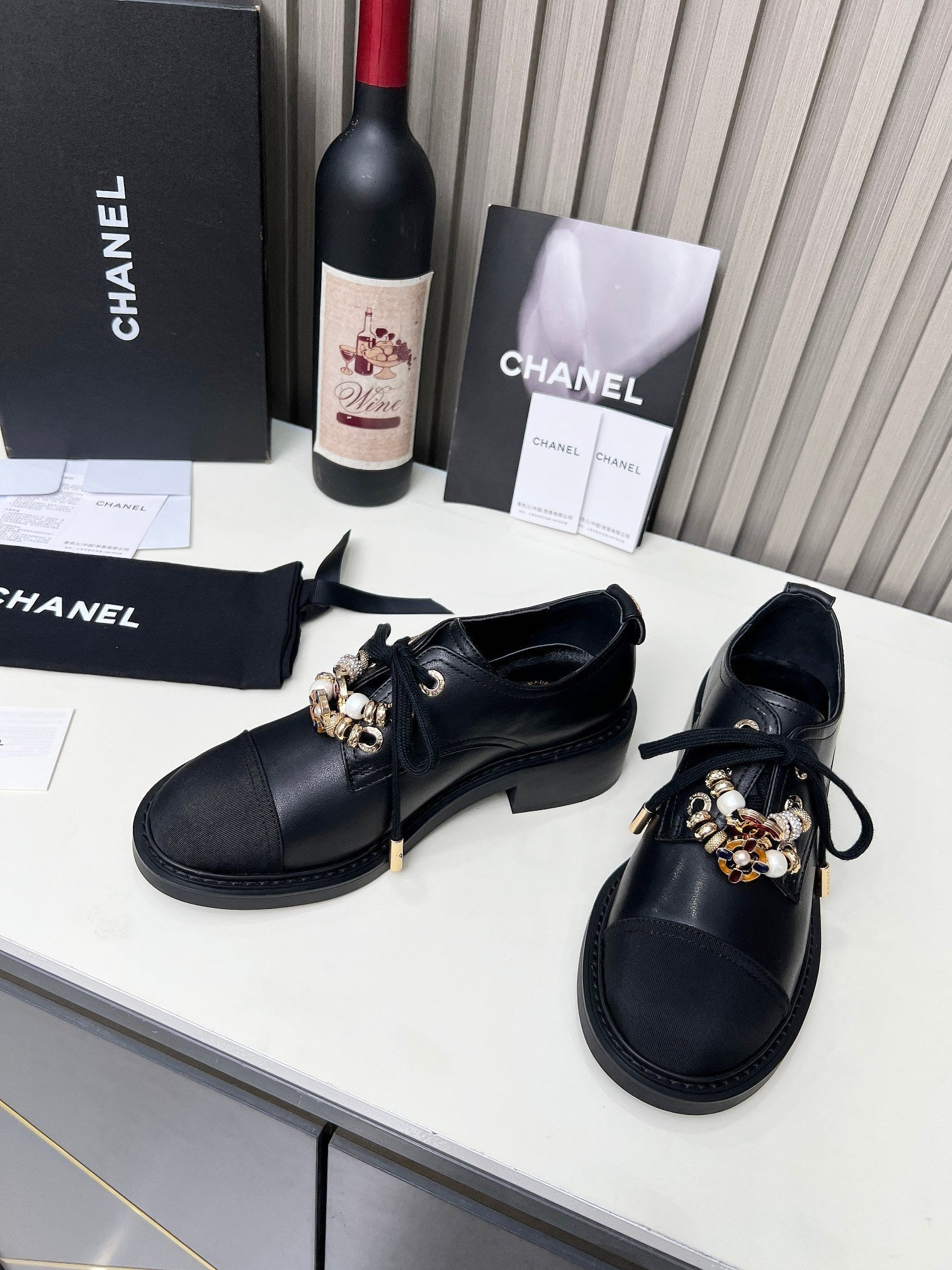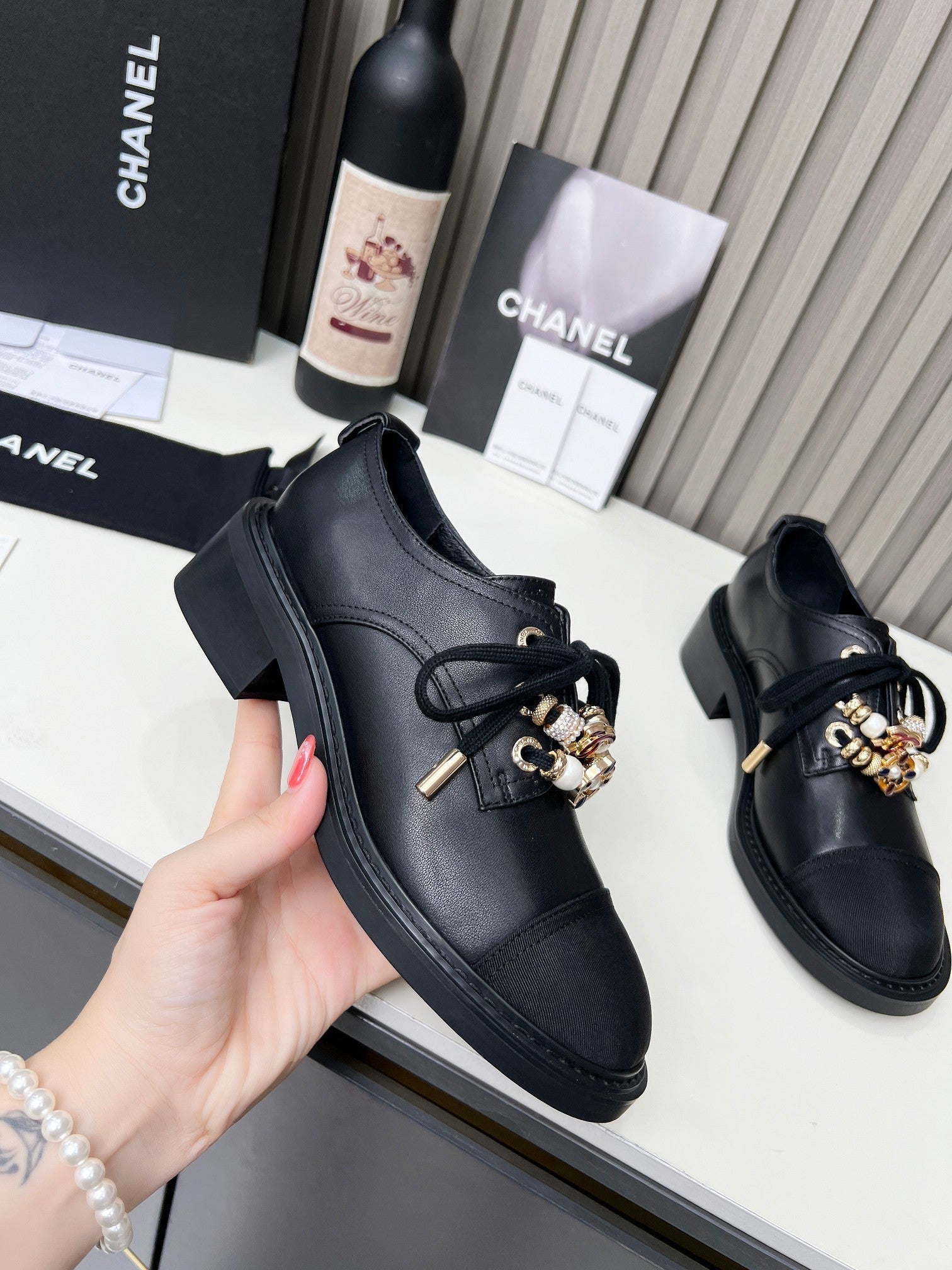 CC Shoe Oxford 50mm In Black Glossy Calfskin And Lycra Fabric 944547