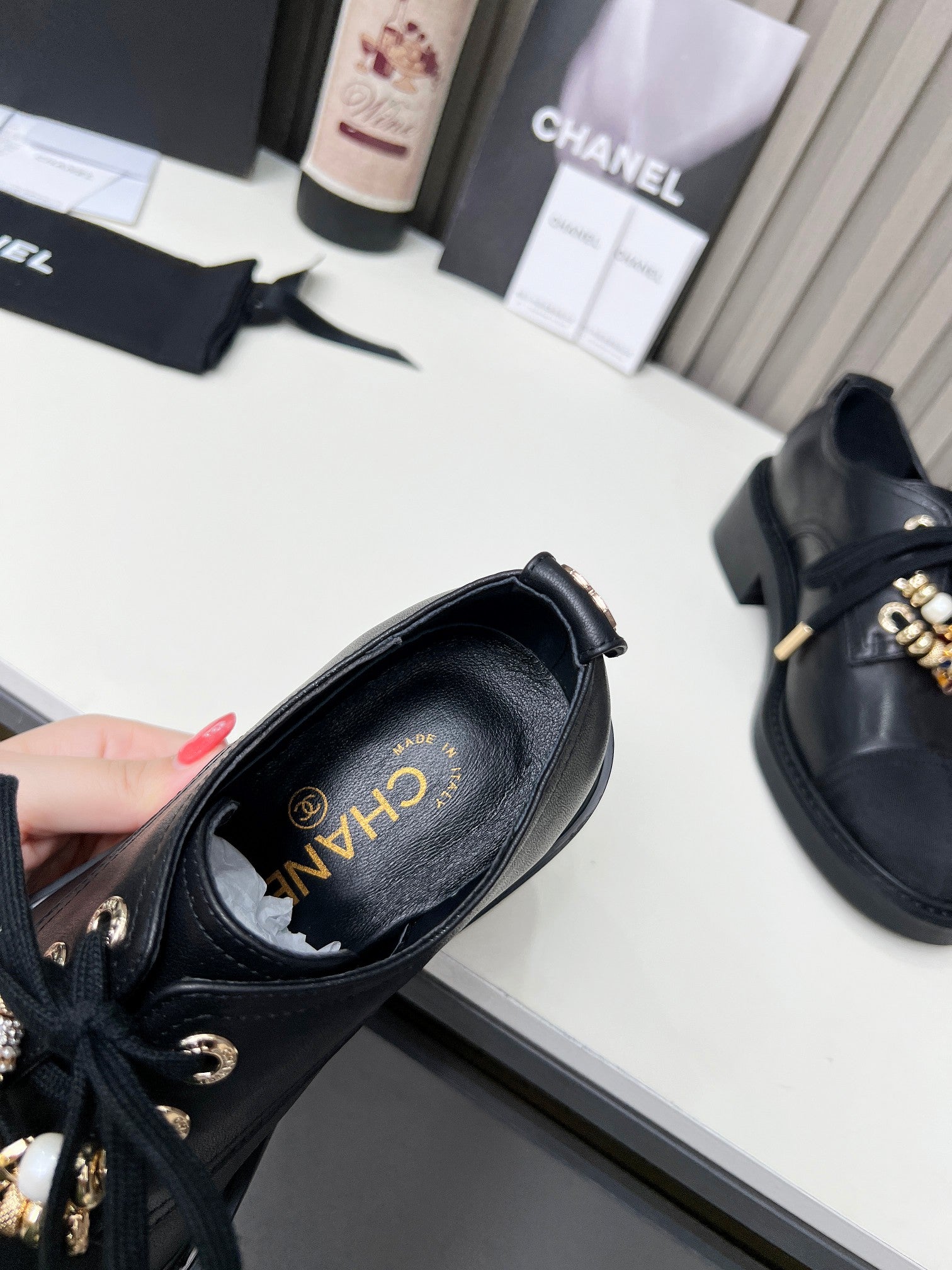 CC High Mary Janes 55mm Black With Bow Glossy Calfskin 943290