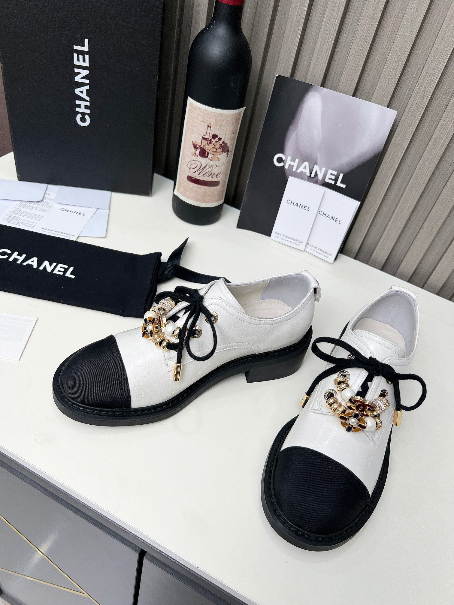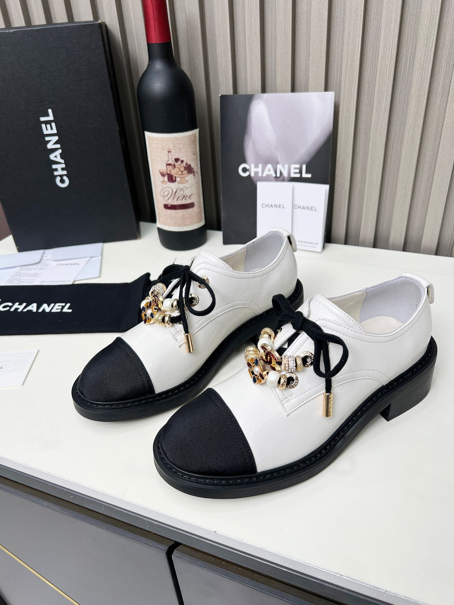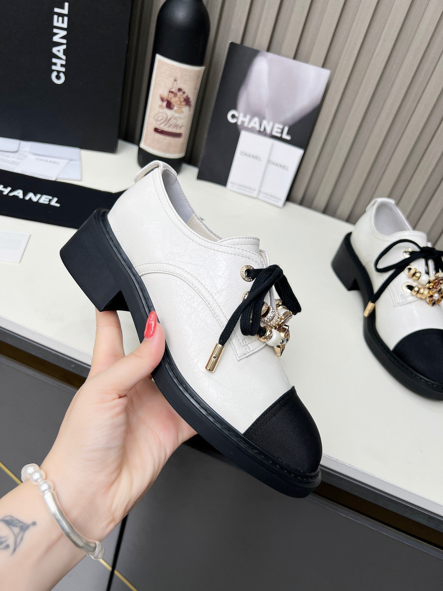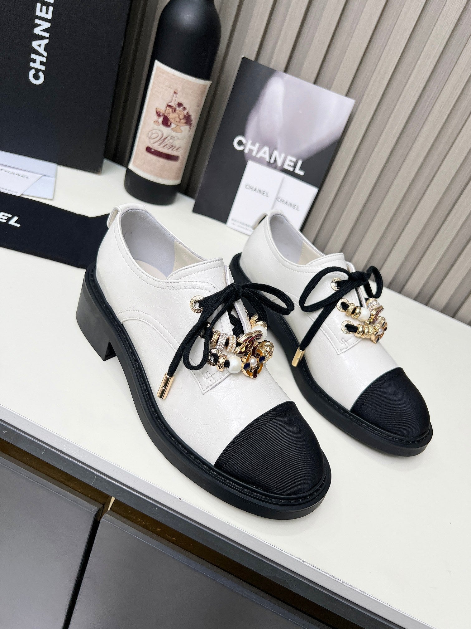 CC Shoe Oxford 50mm In White Black Calfskin And Lycra Fabric 944546