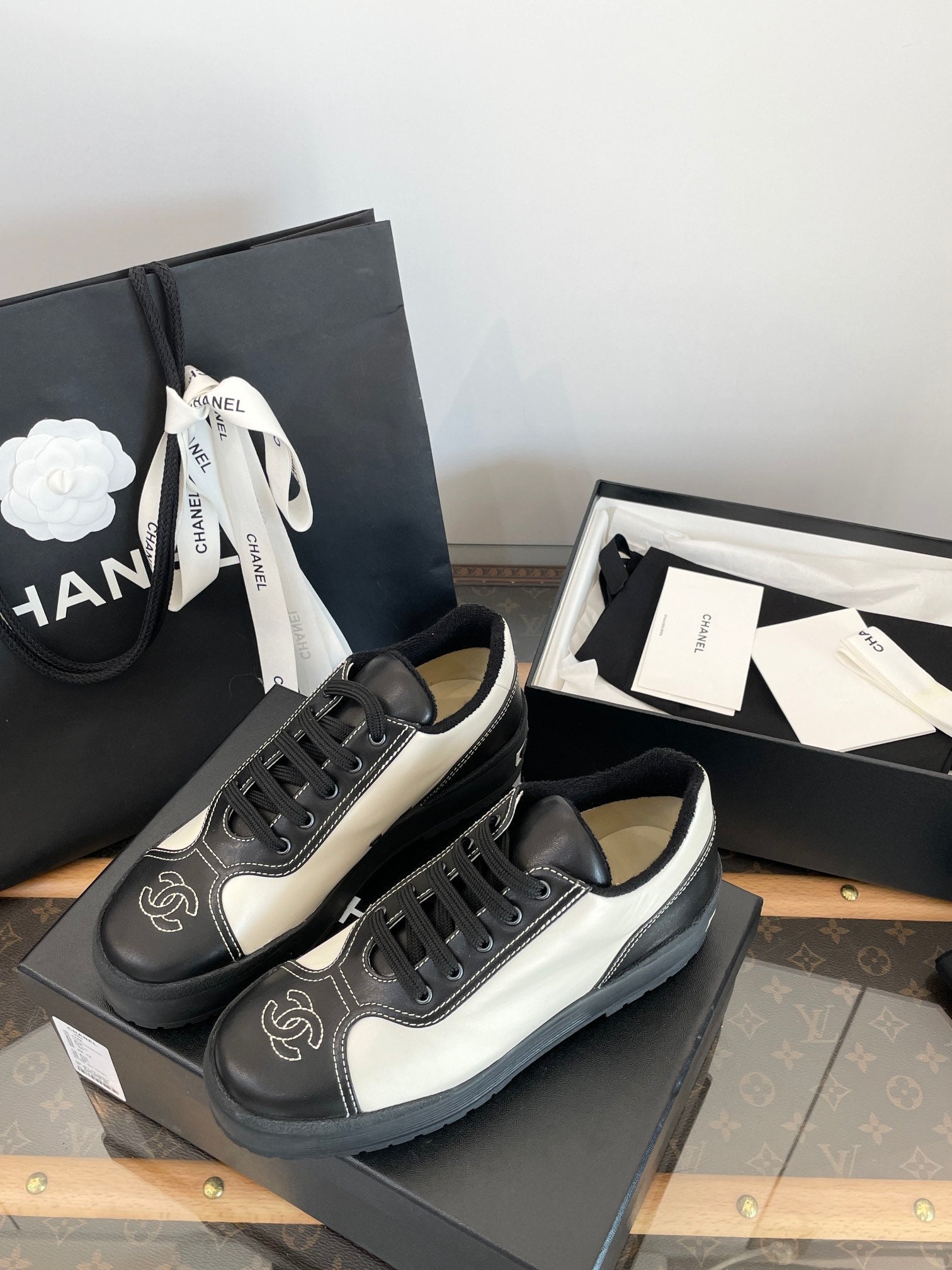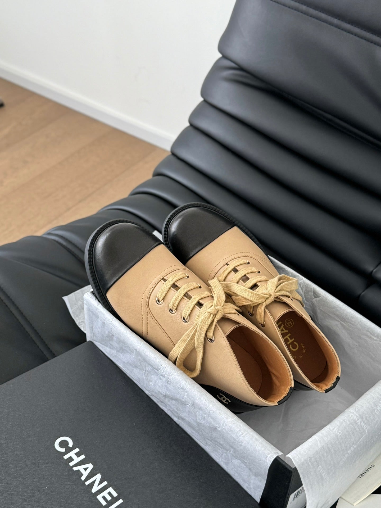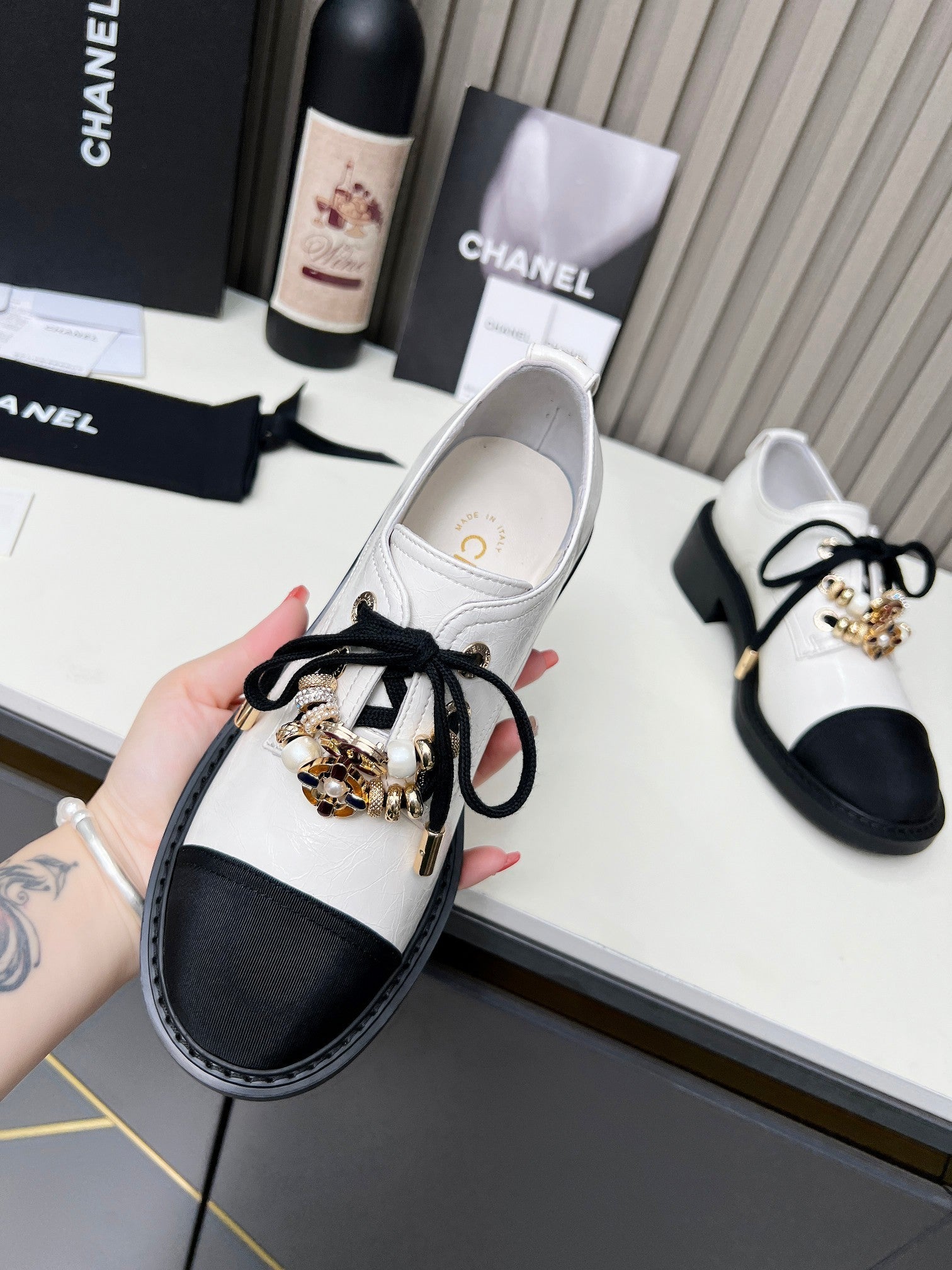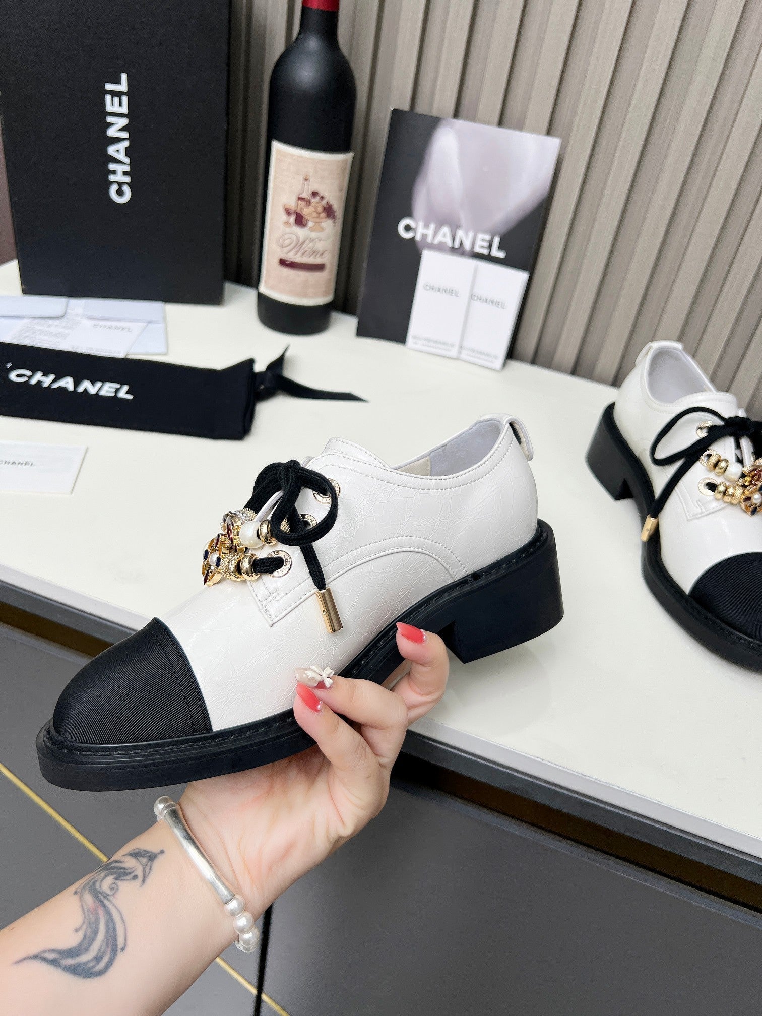 CC Shoe Oxford 50mm In White Black Calfskin And Lycra Fabric 944546