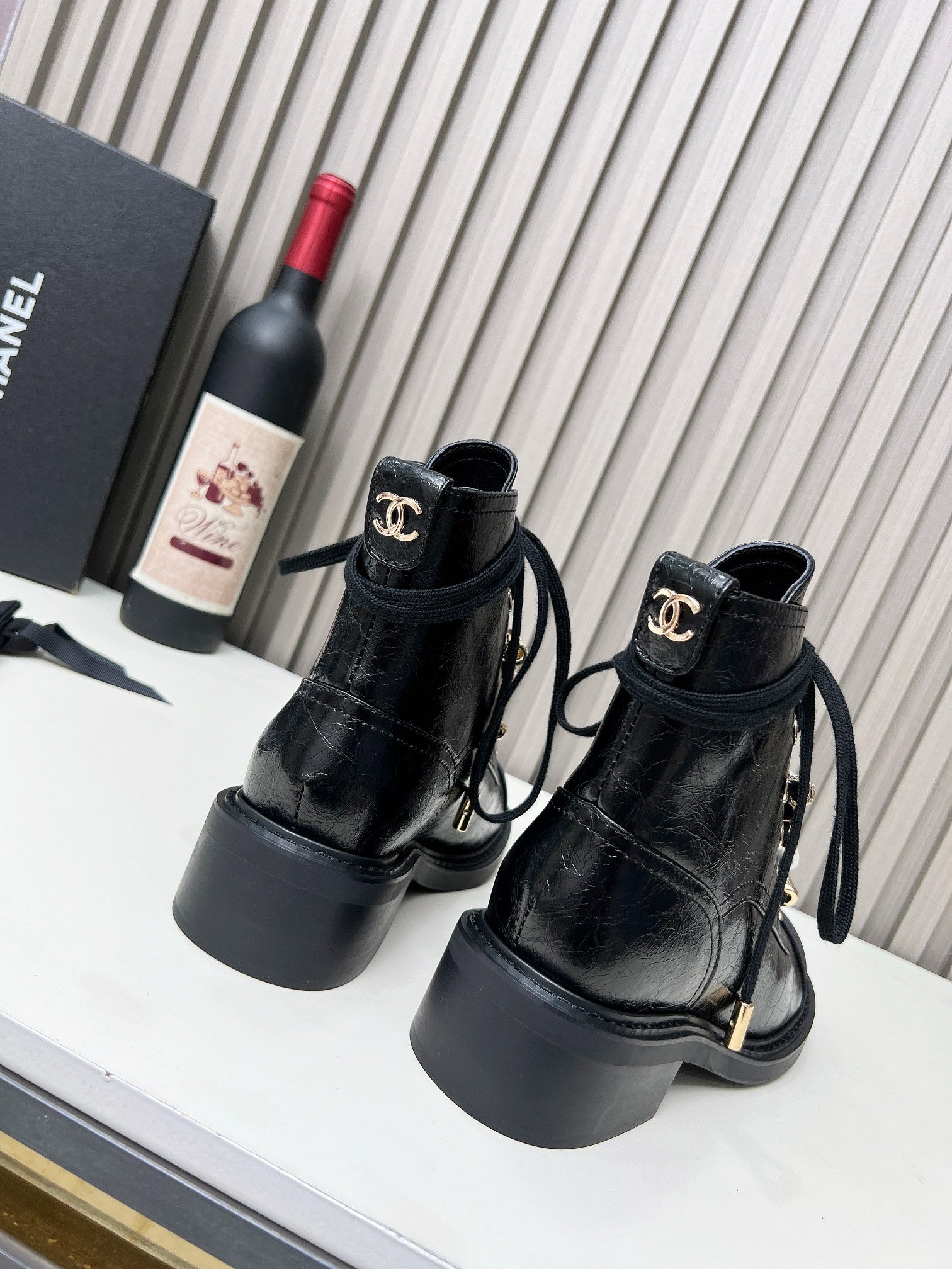 CC Short Boots 40mm In Black Wrinkled Calfskin 940068