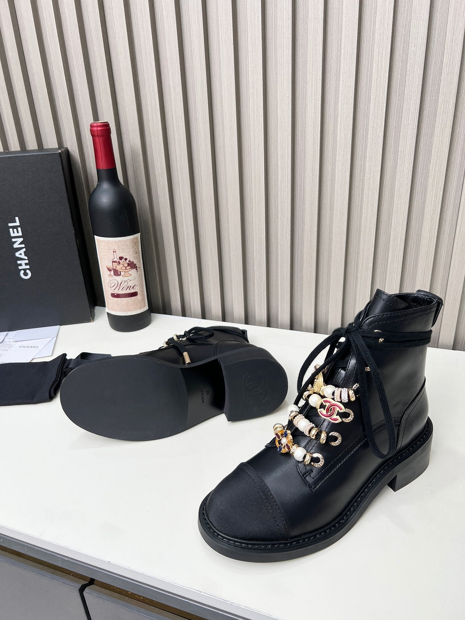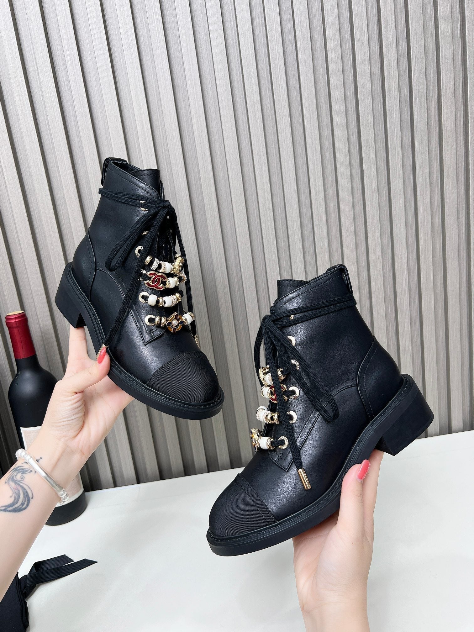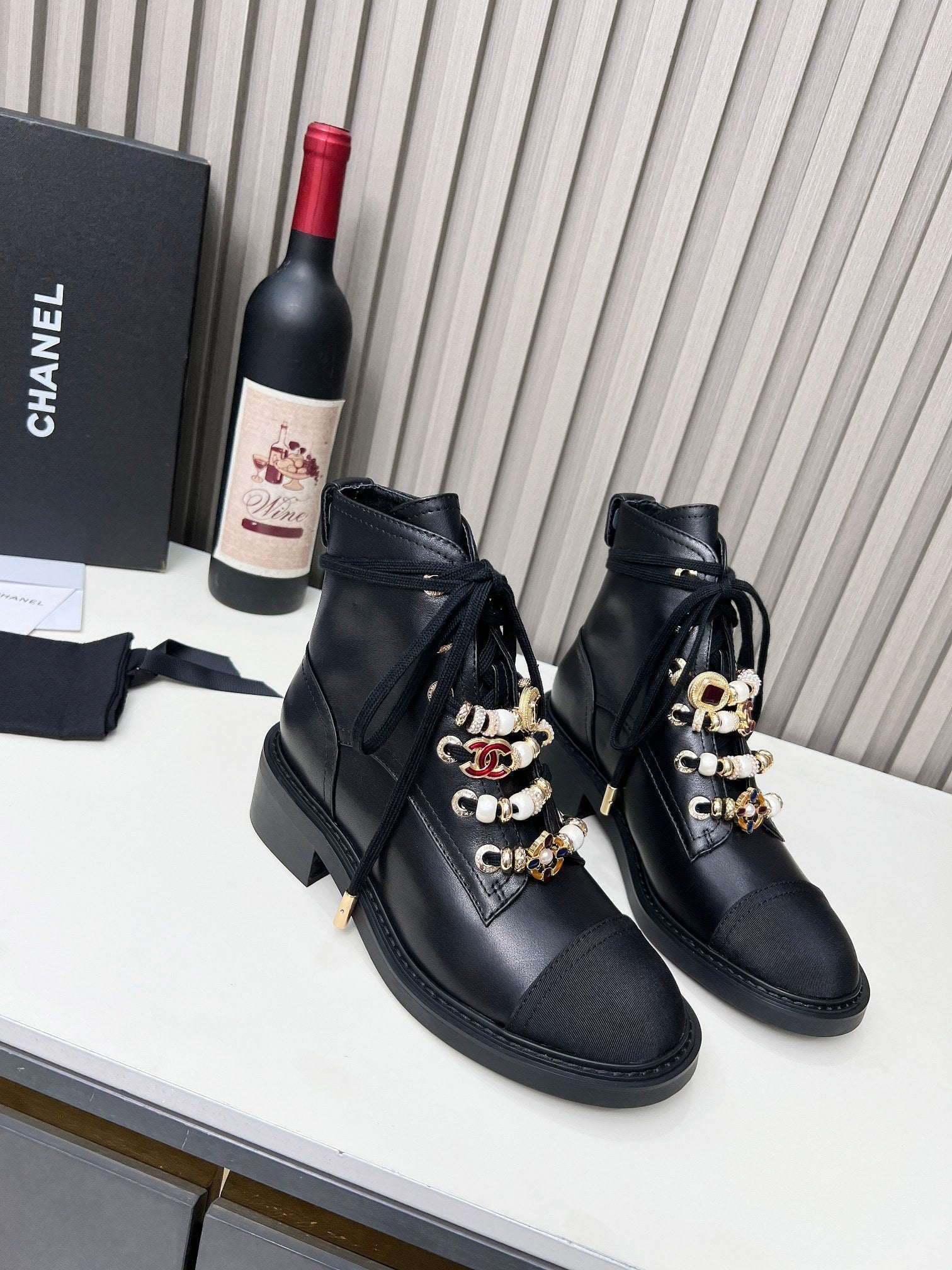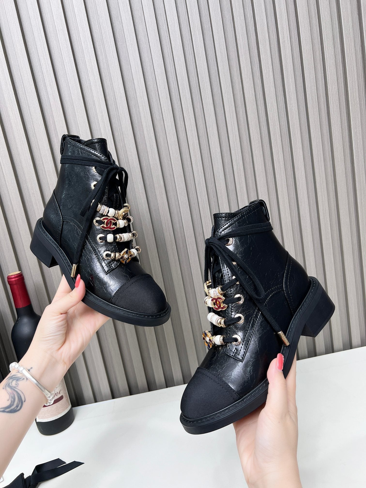 CC Ankle Boots Black Mix White Calfskin And Fleece