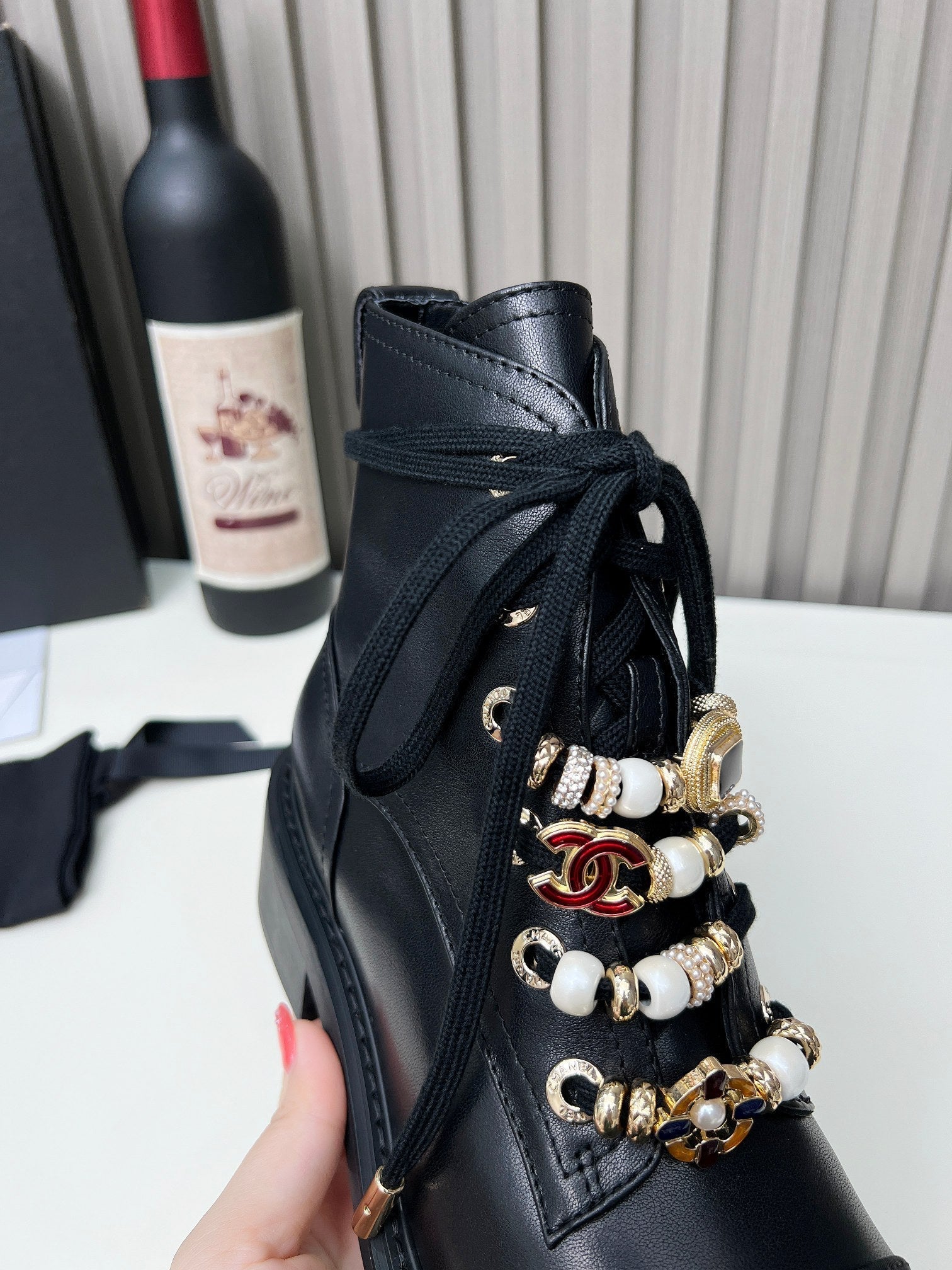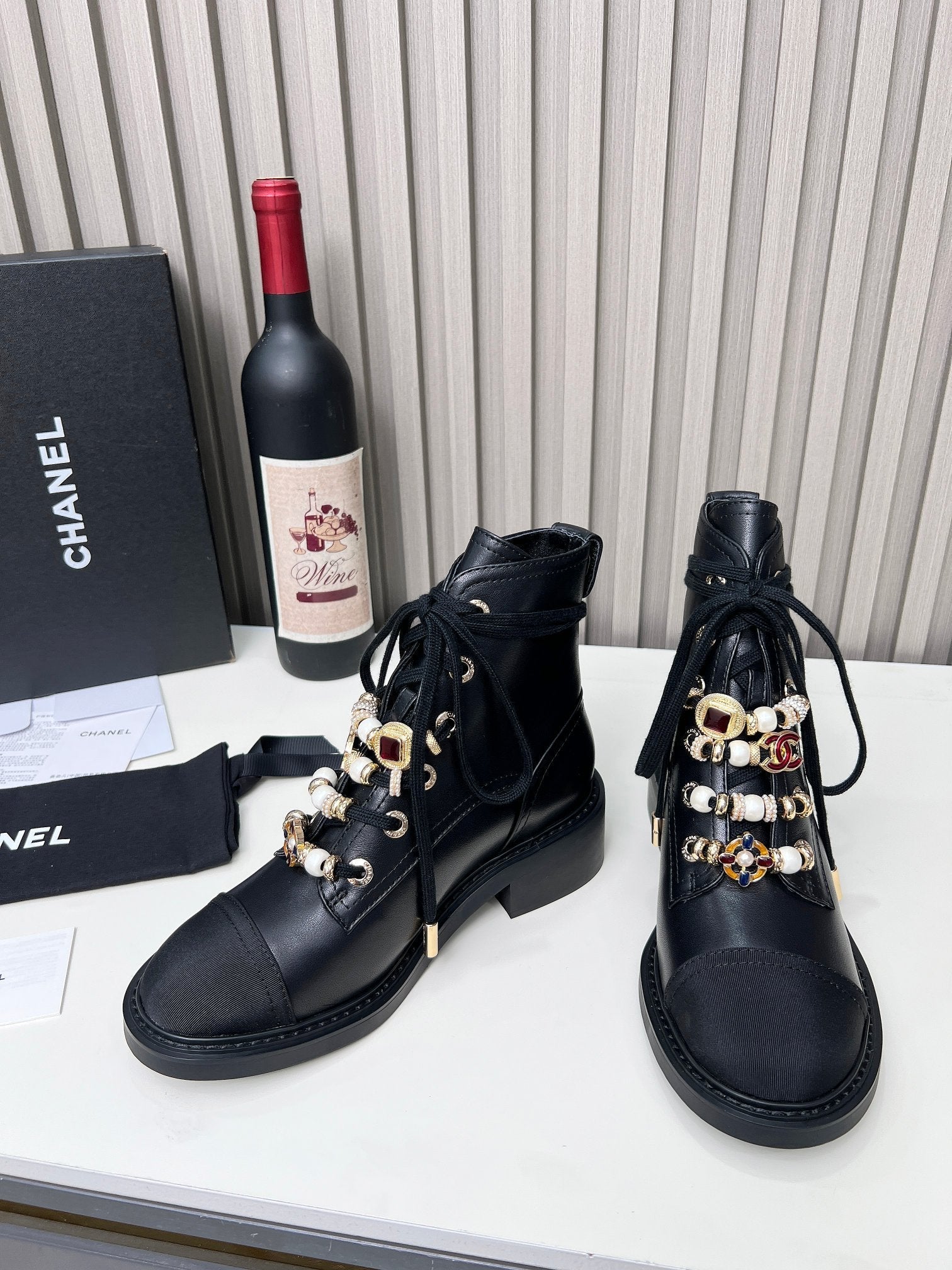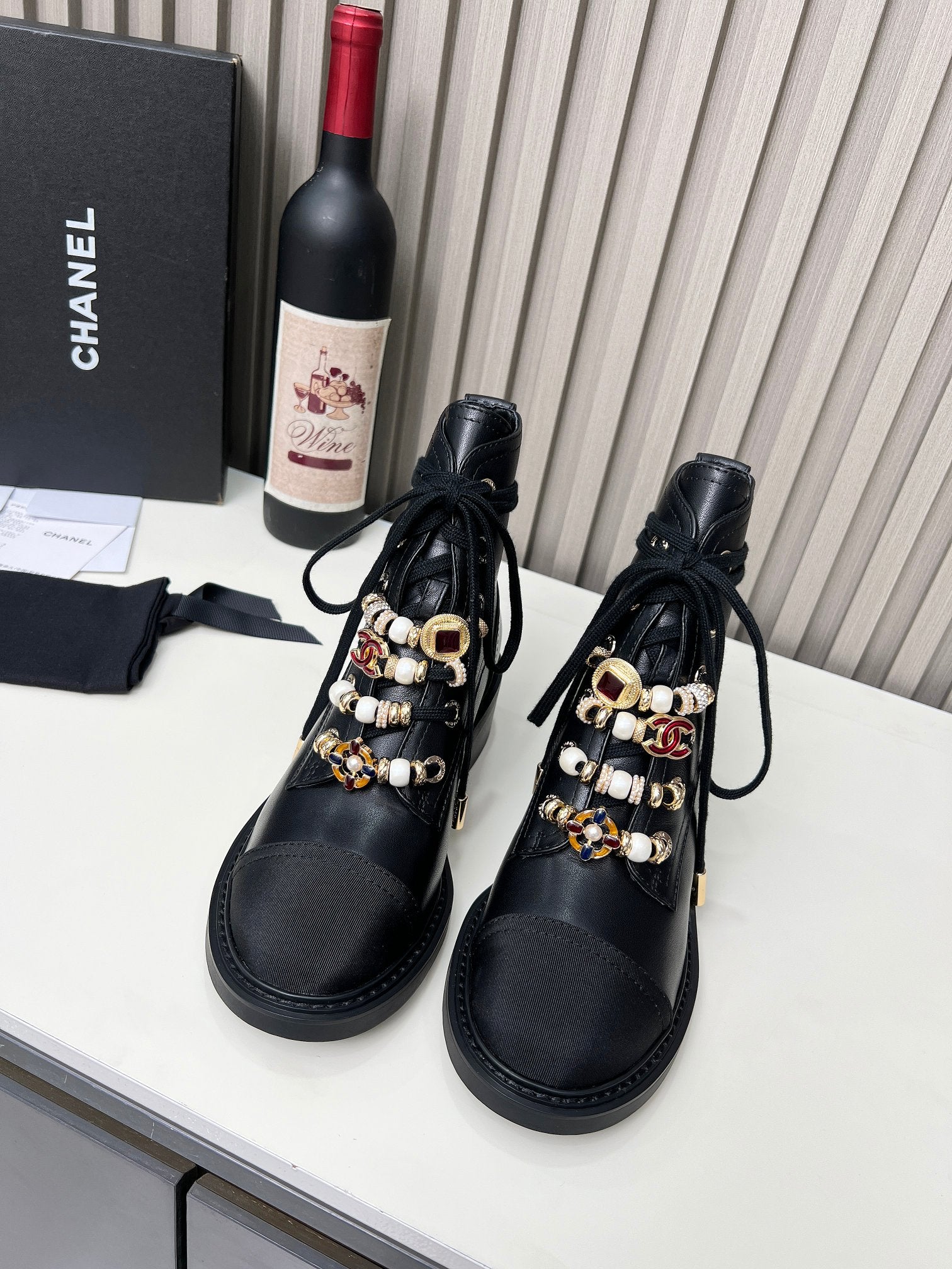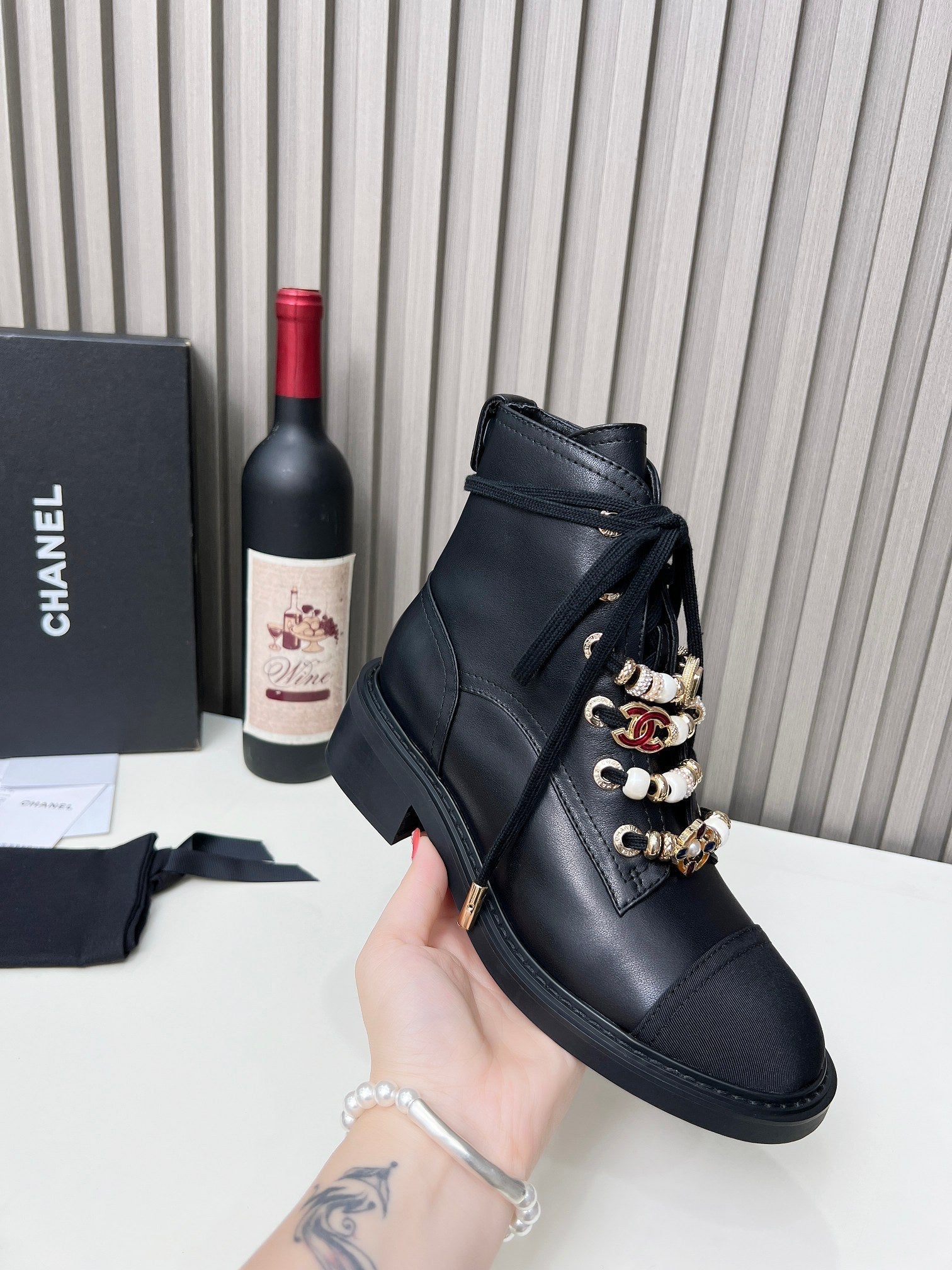 CC Ankle Boots Black Mix White Calfskin And Fleece