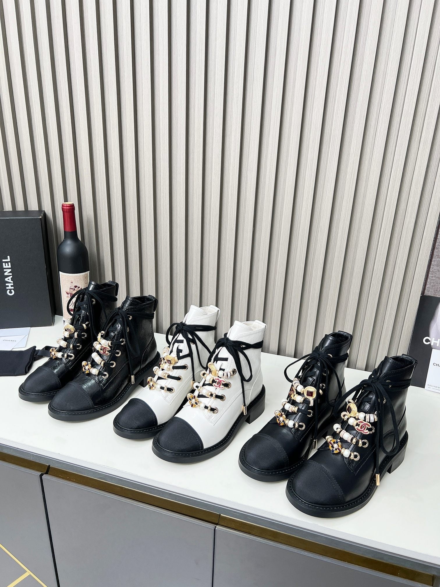 CC Ankle Boots White Mix Black Calfskin 937066