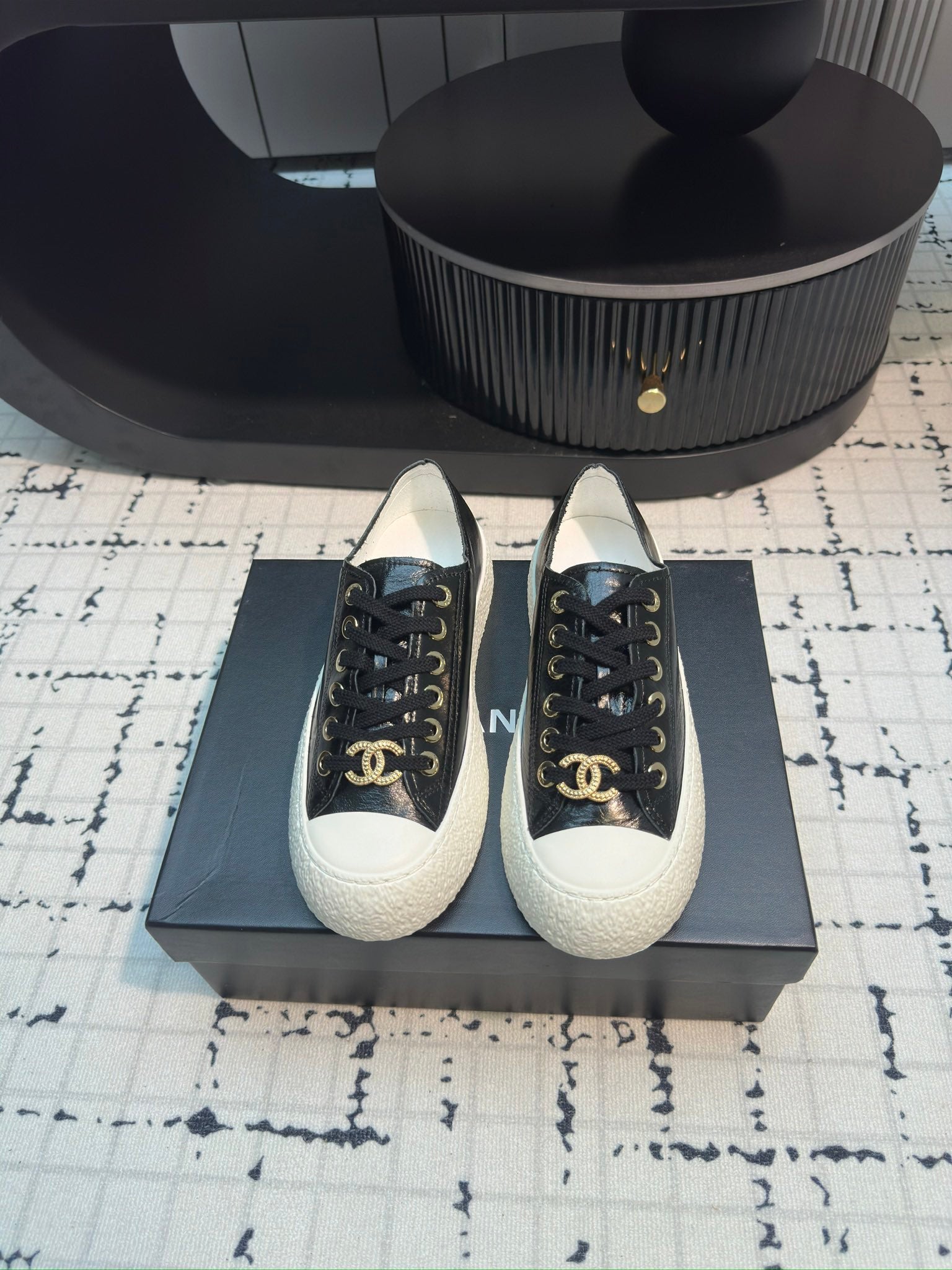 CC Low Sneaker 30mm Black Calfskin