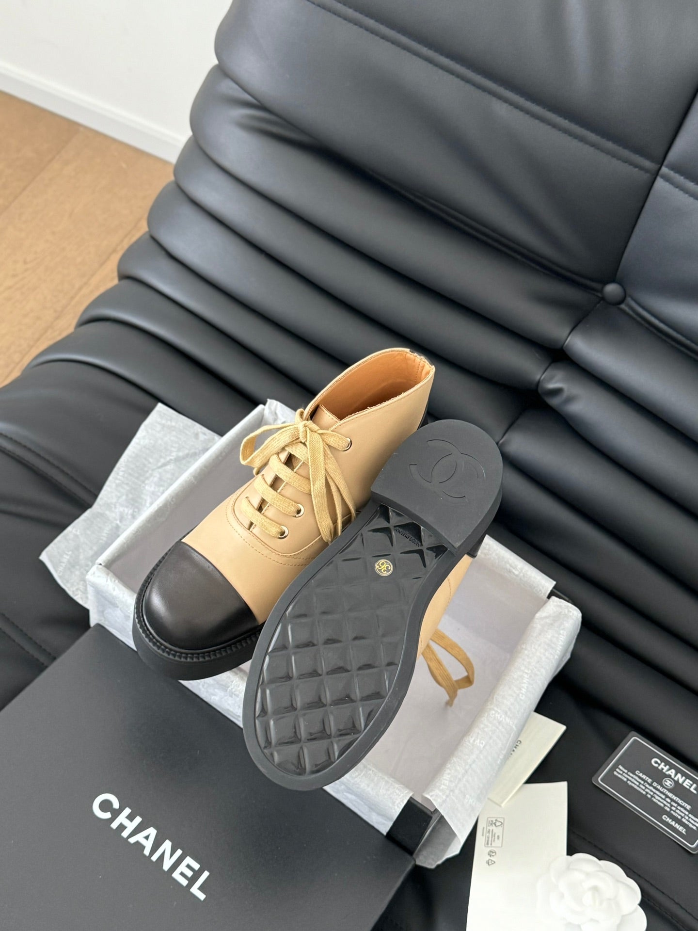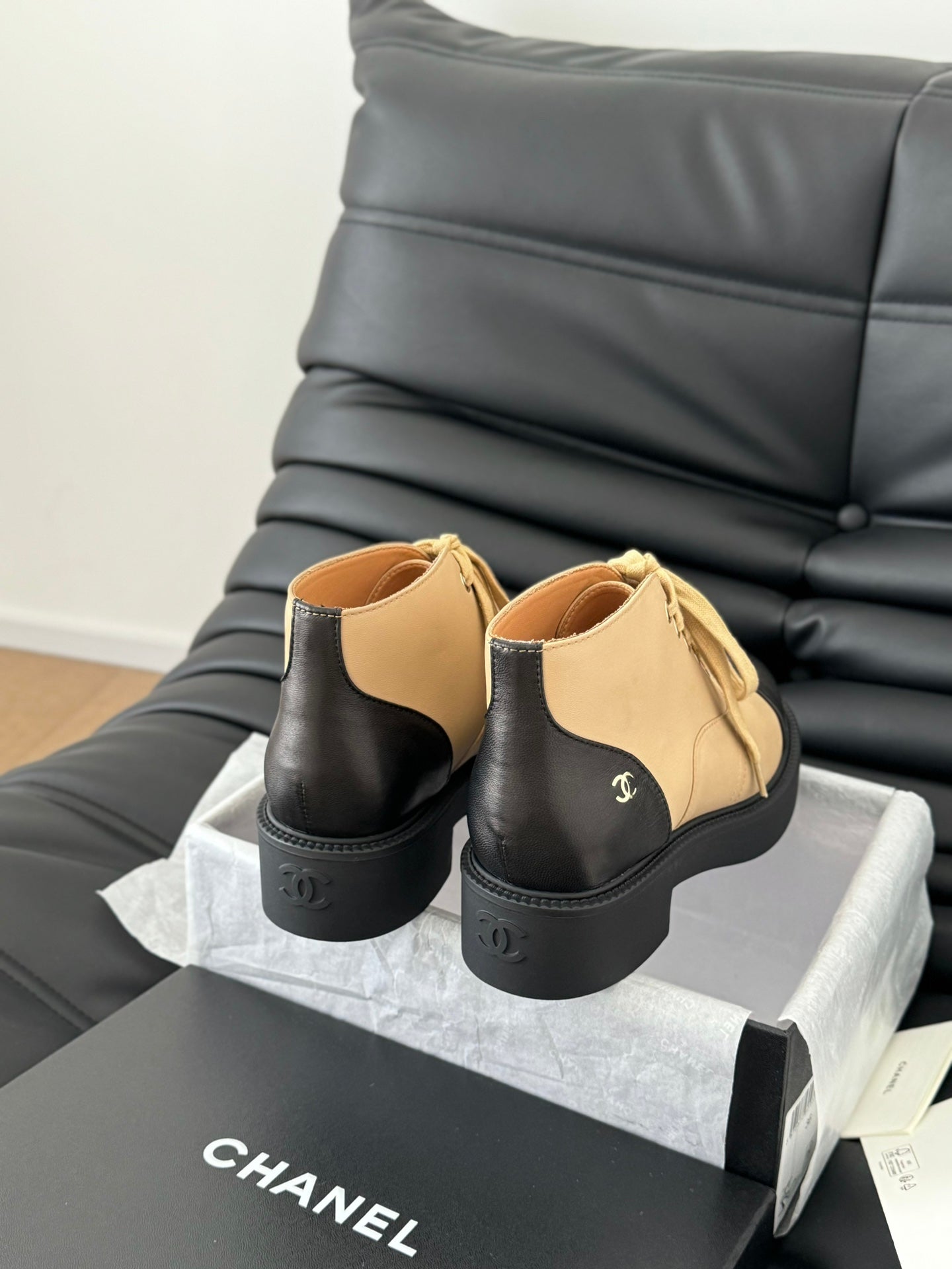 CC Ankle Boots Dark Beige Mix Black Calfskin 937064