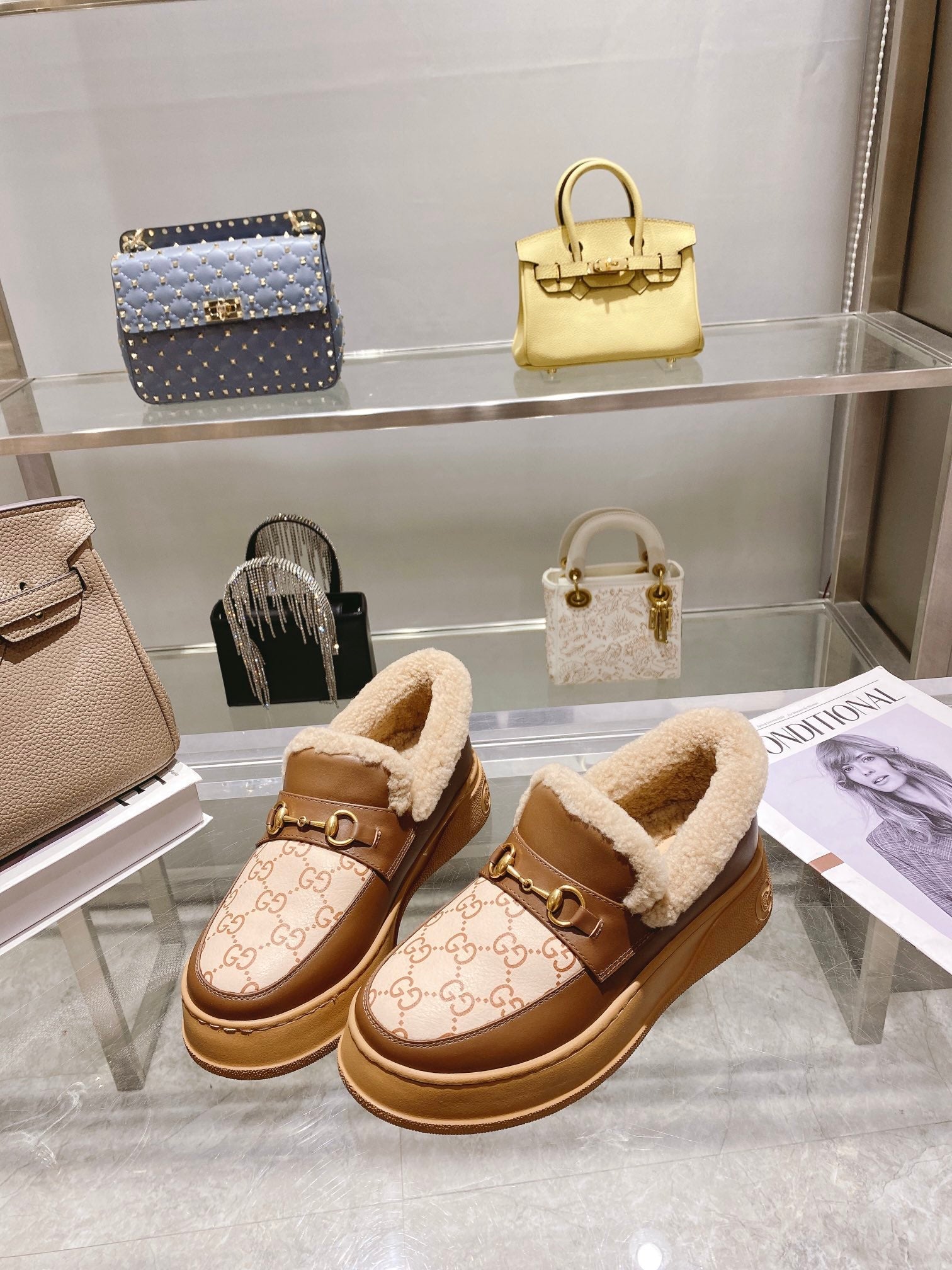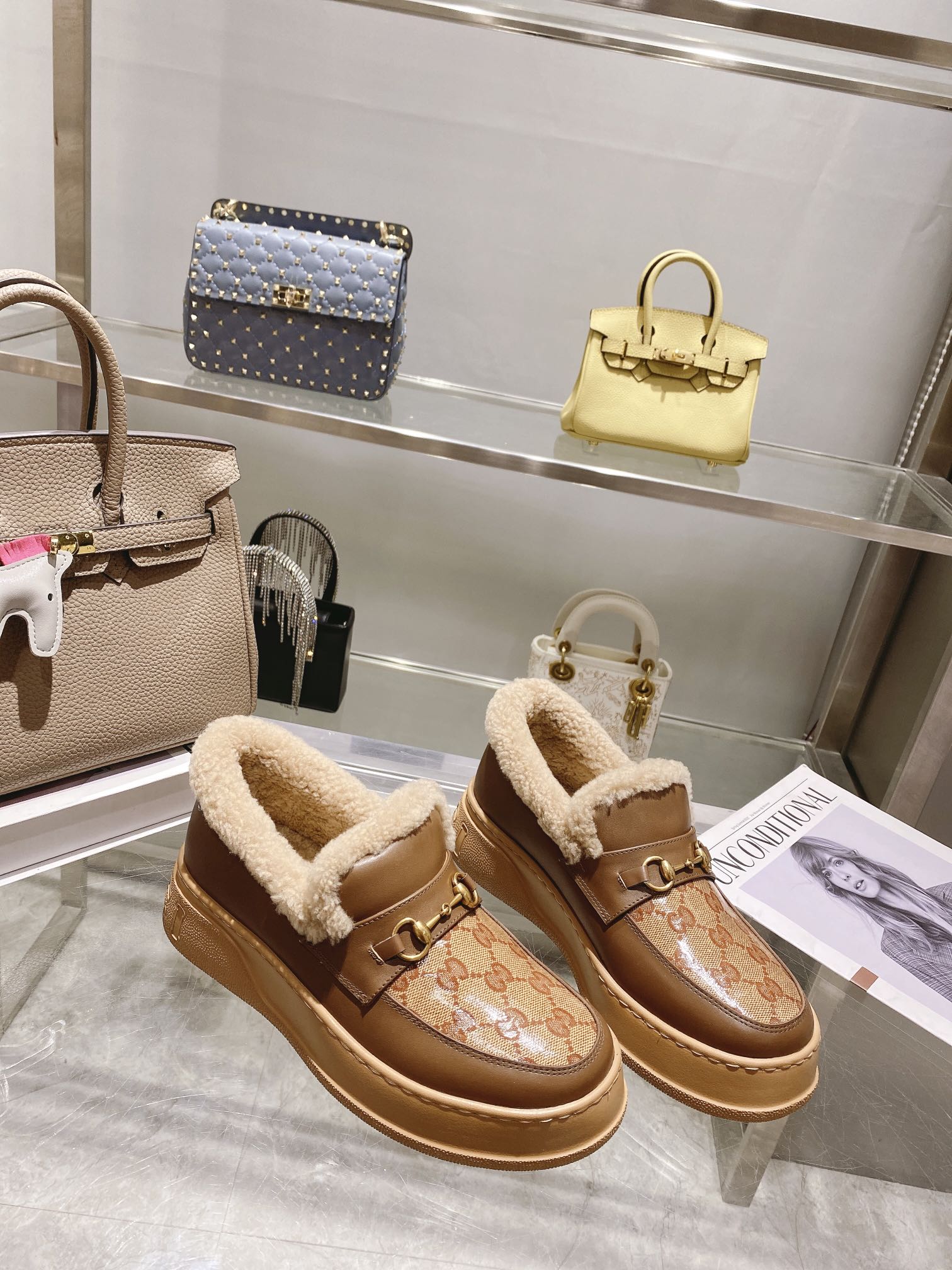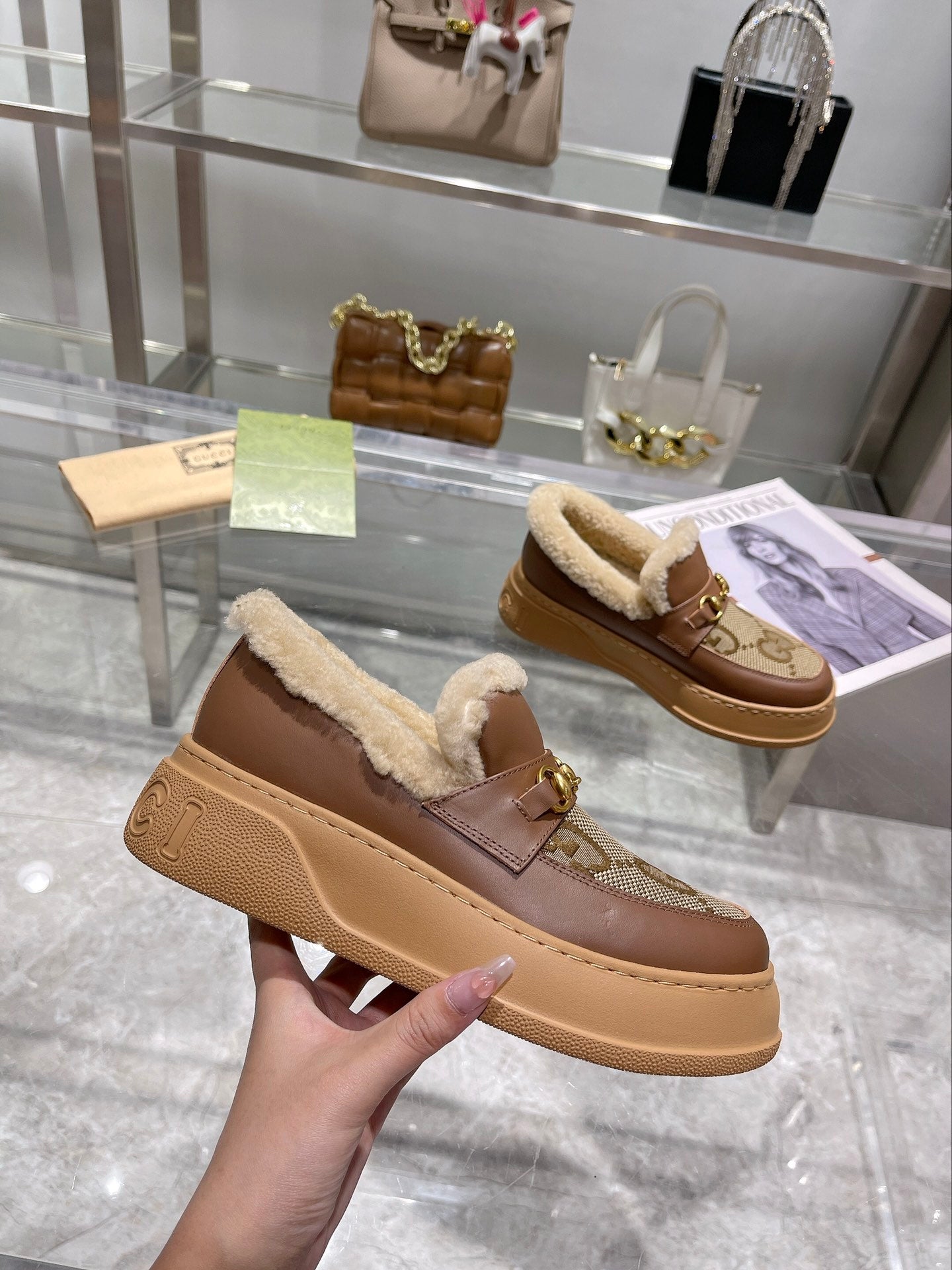 GG Snow Boots Brown Calfskin Wool 576240