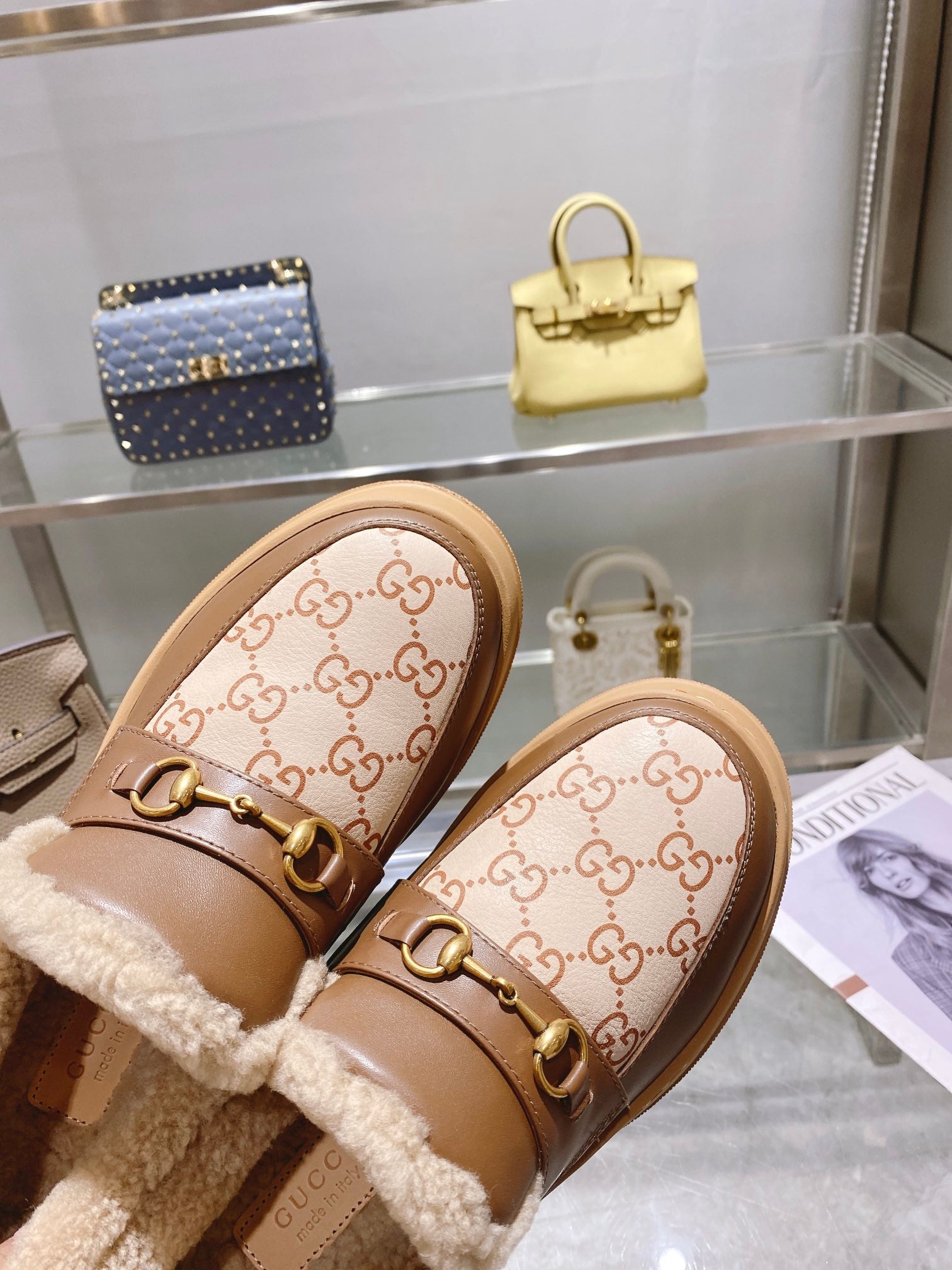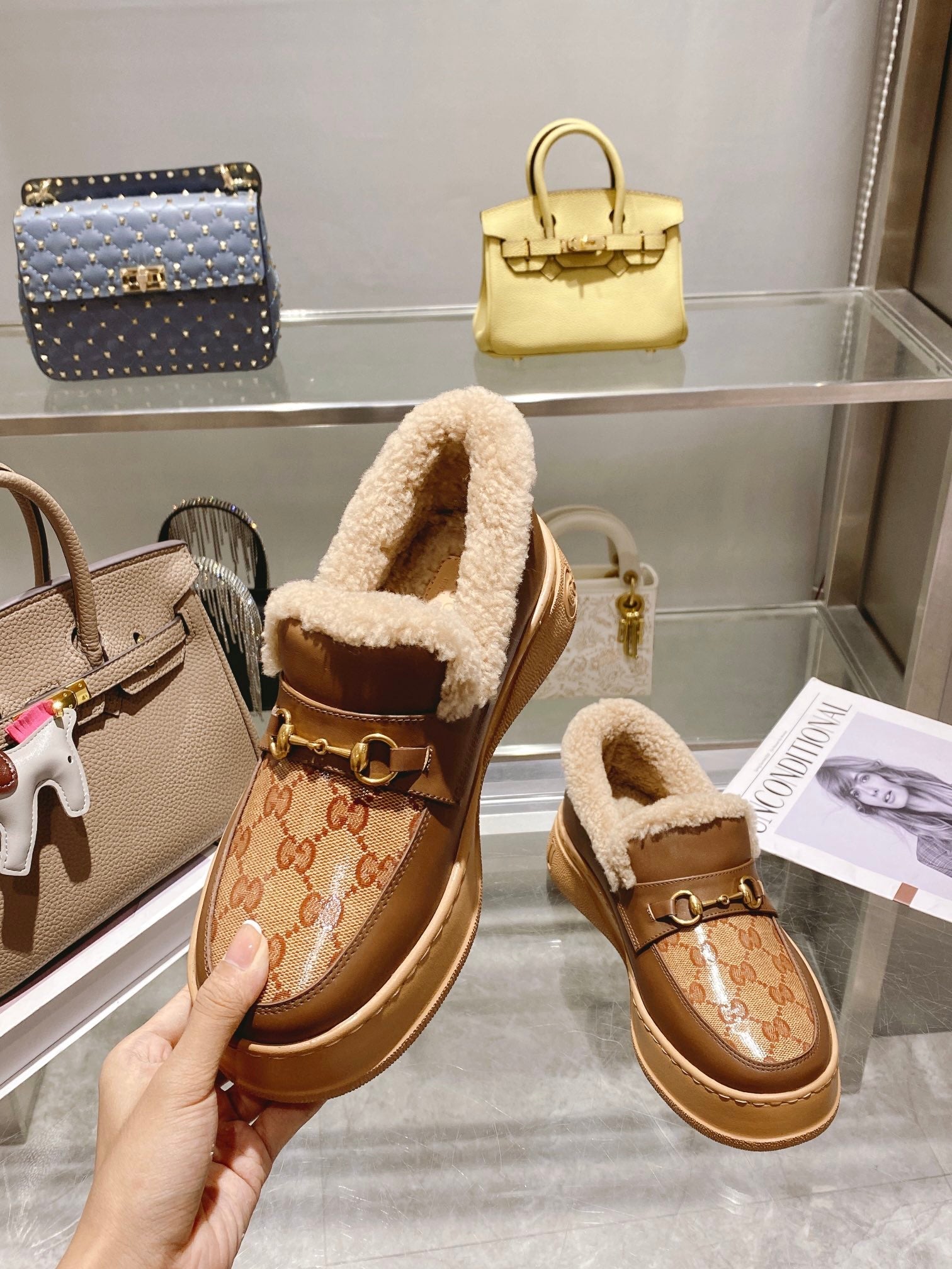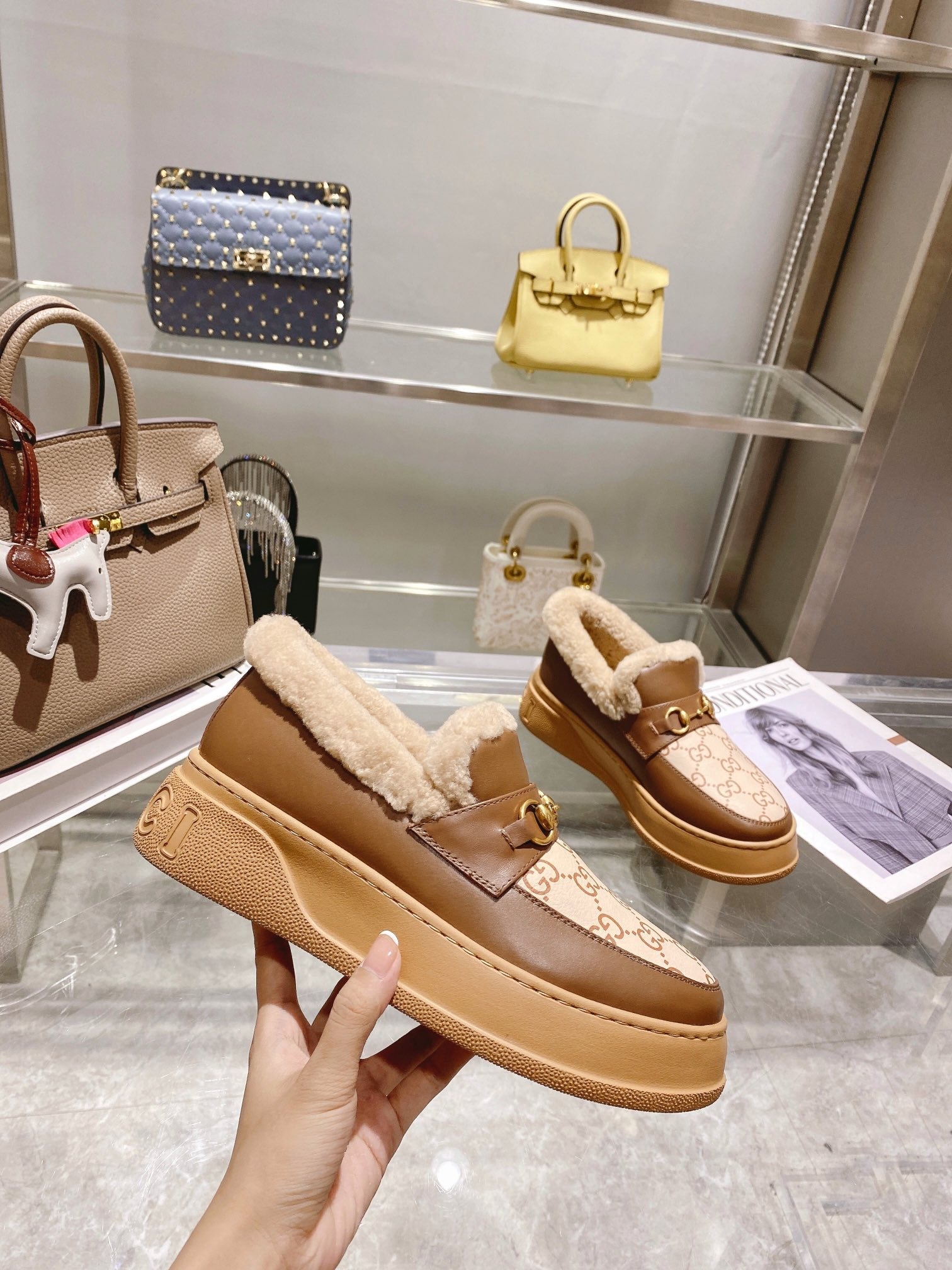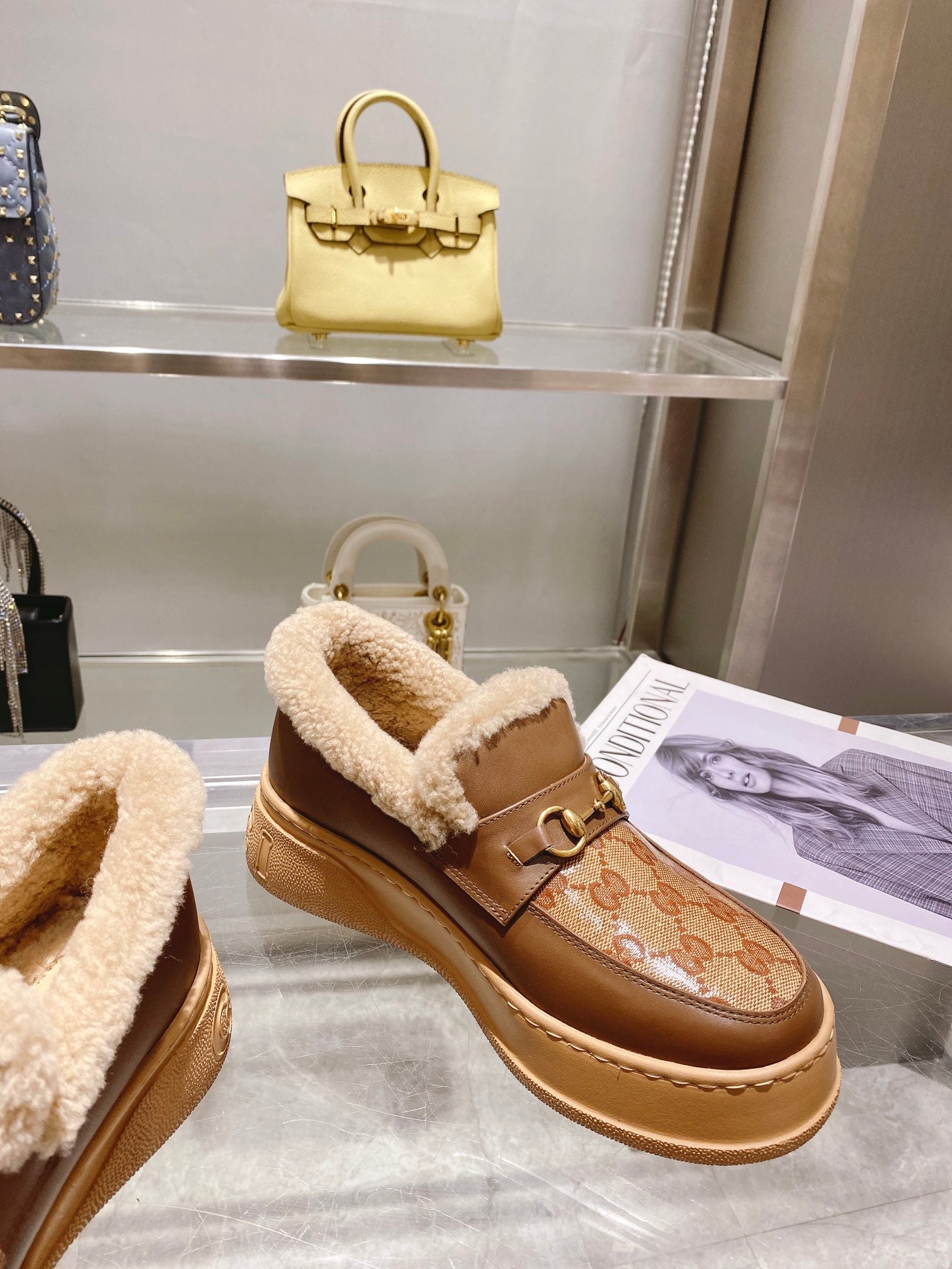 GG Snow Boots Brown Calfskin Wool 576240