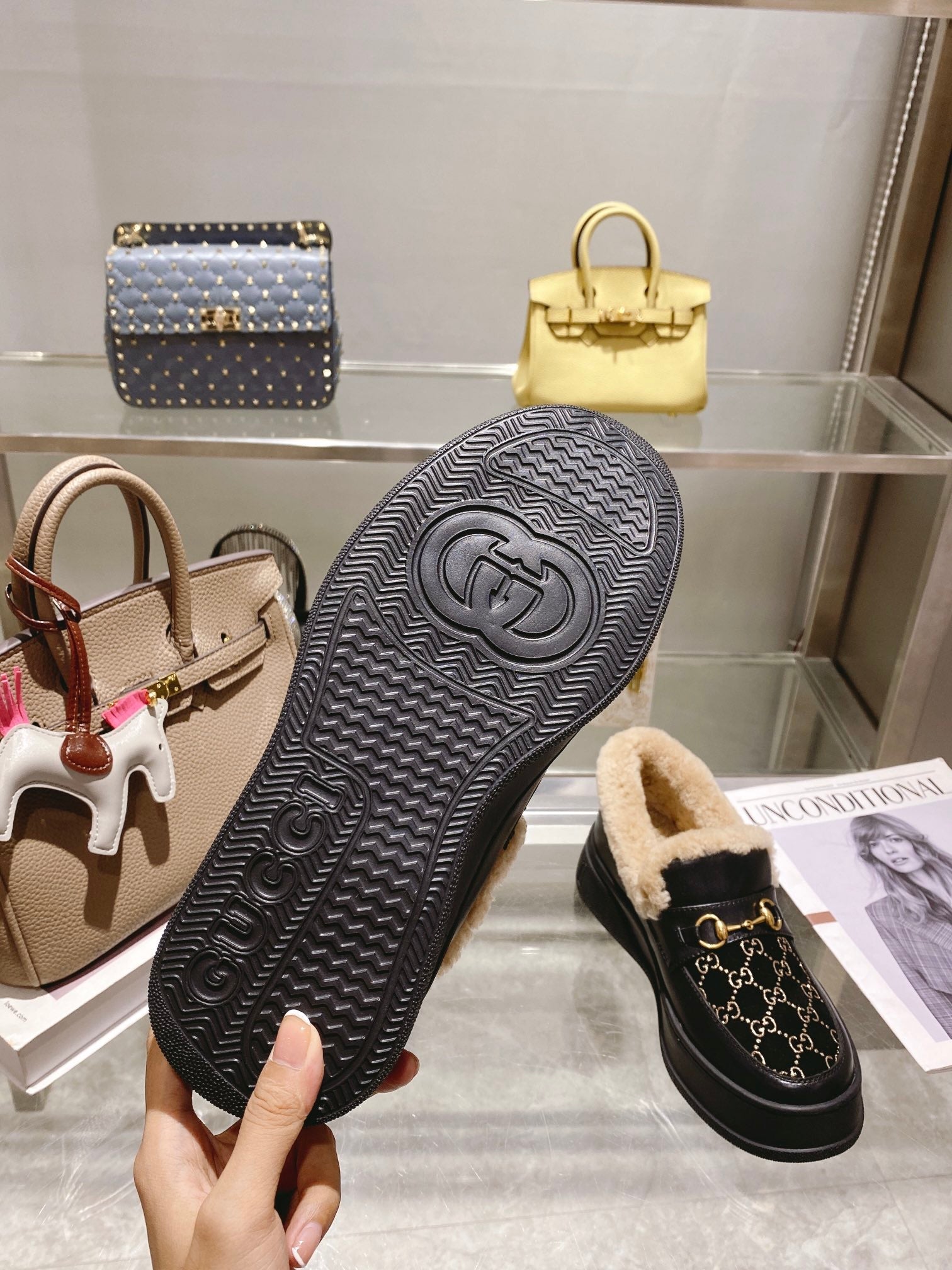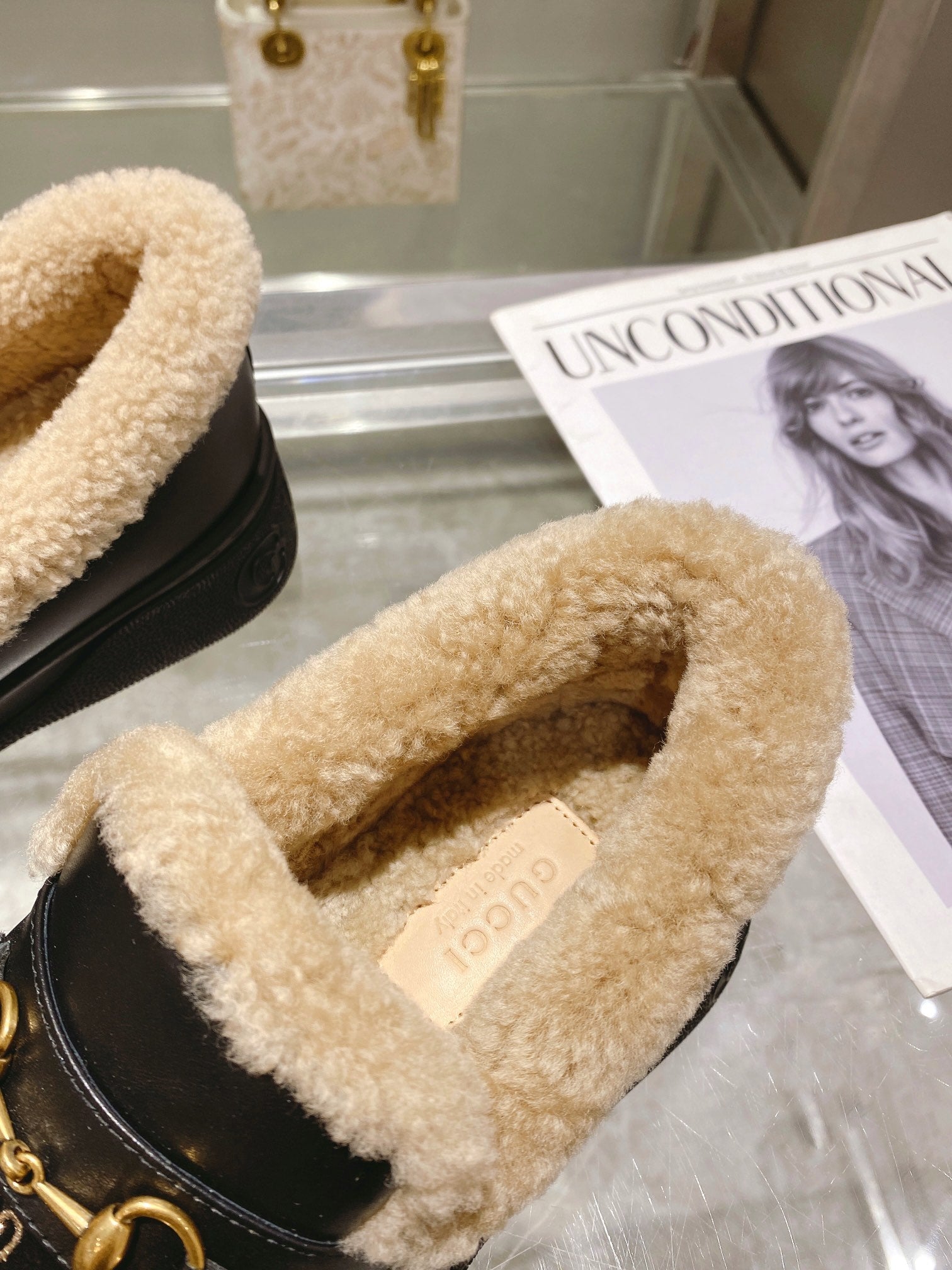 GG Snow Boots Black Cowhide Wool 576234