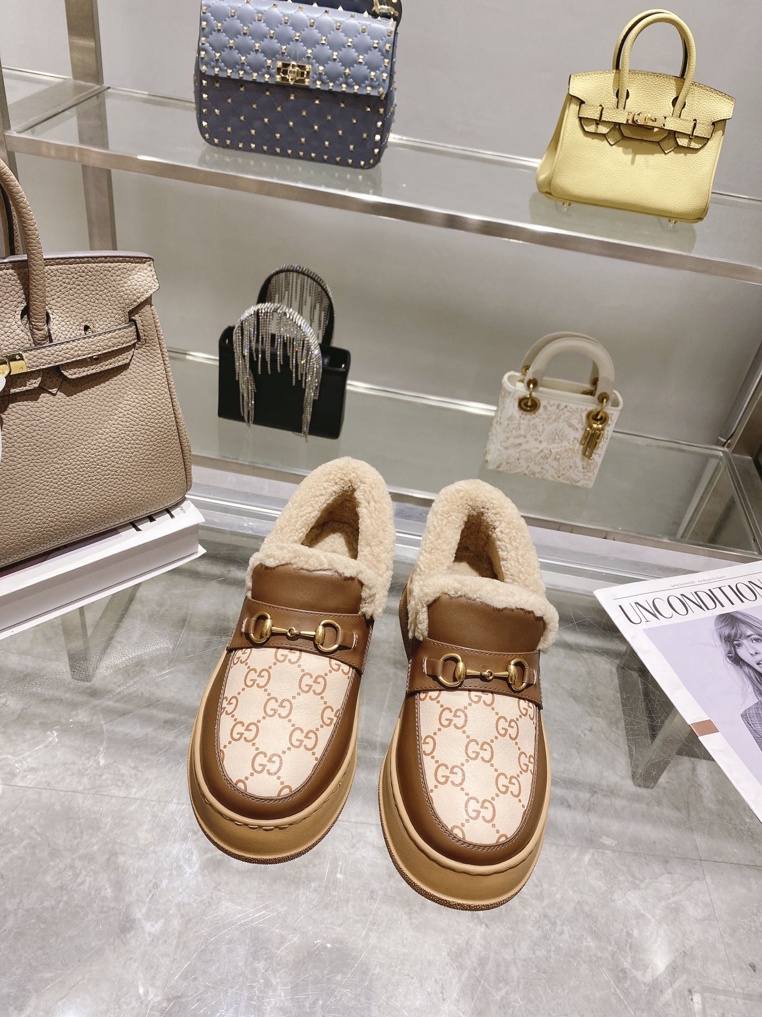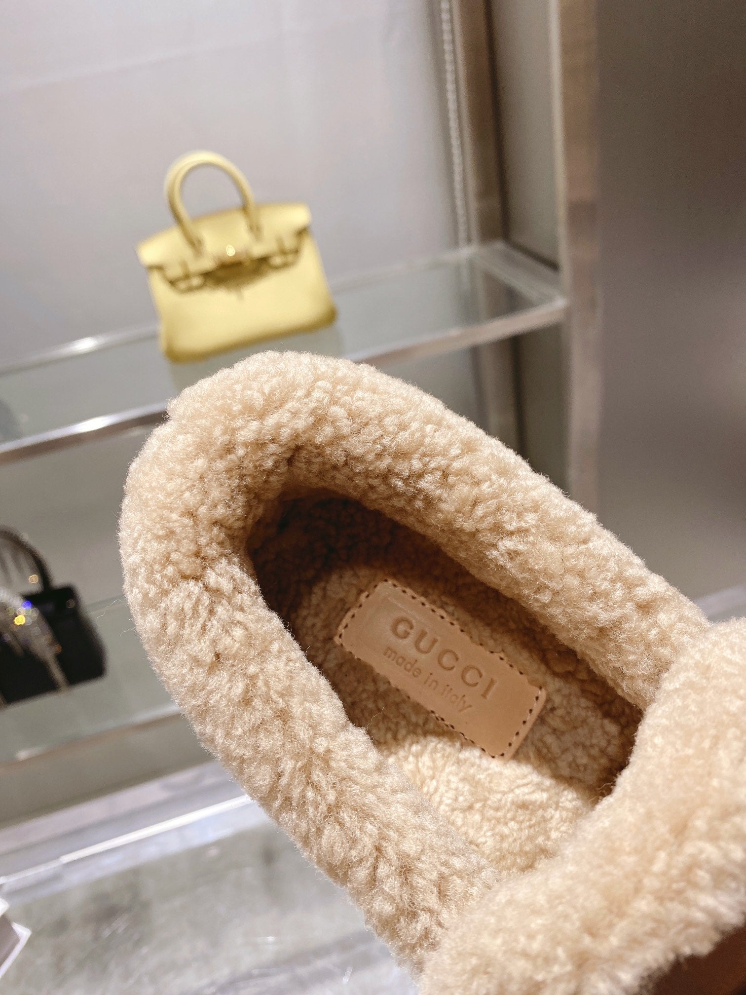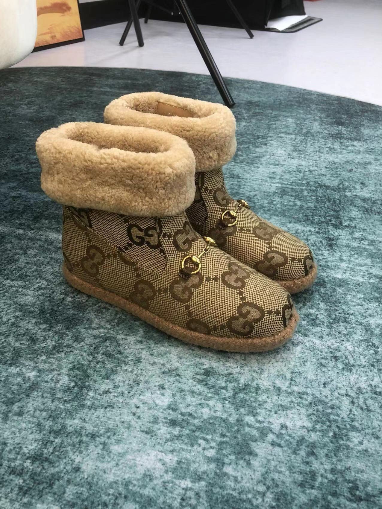 GG Horsebit Snow Boots Beige Woolen Fabric Fleece 576253