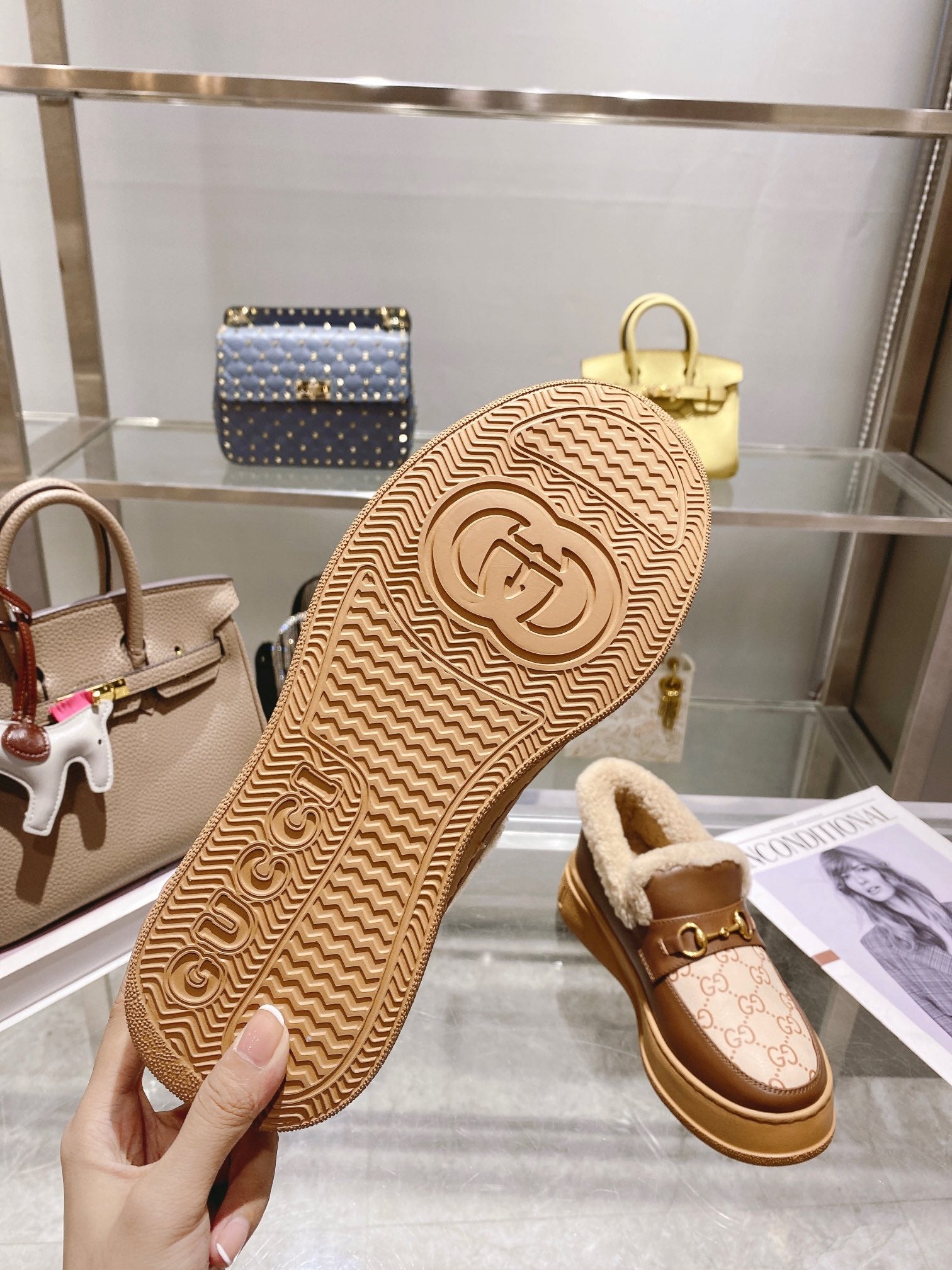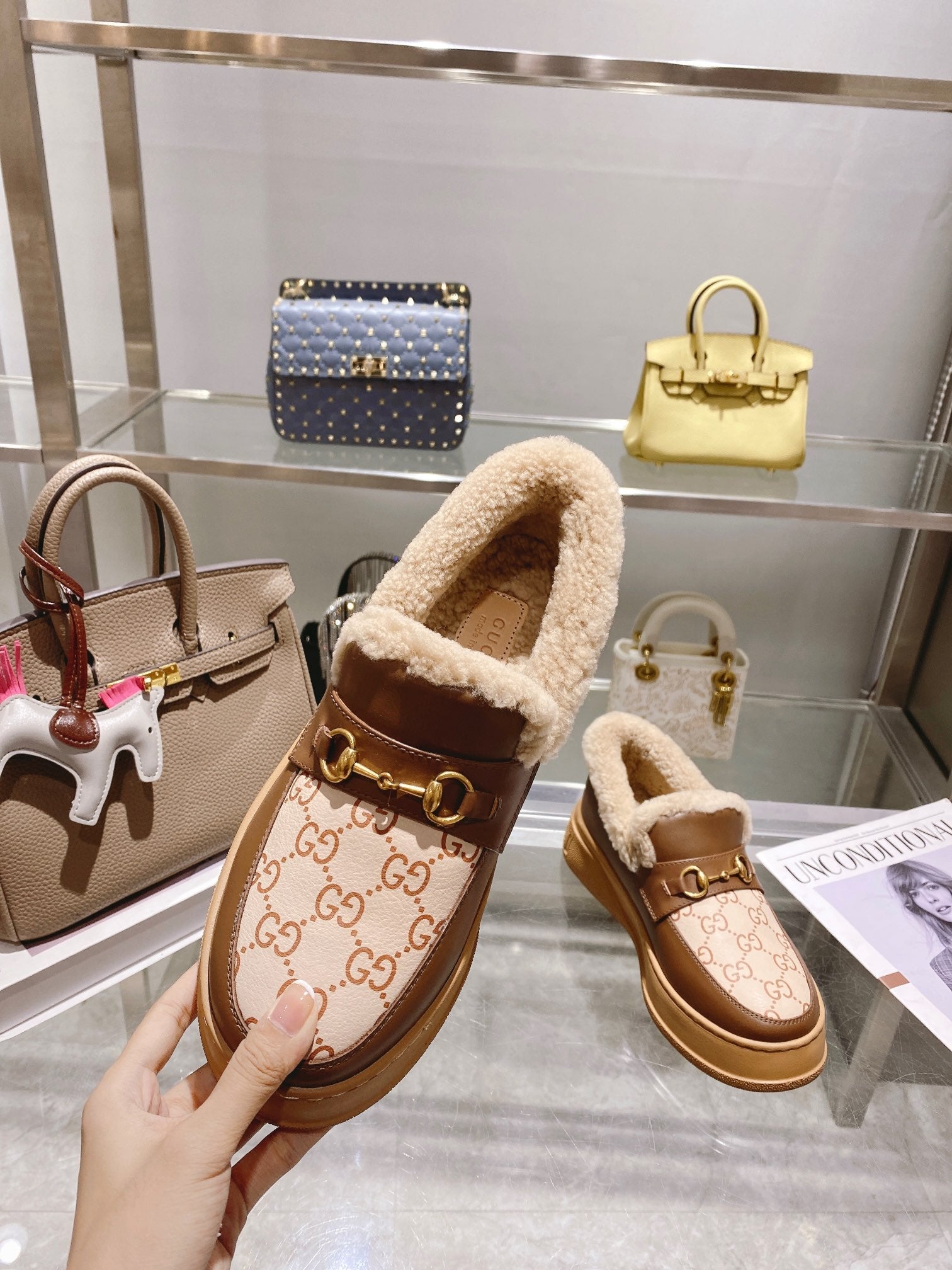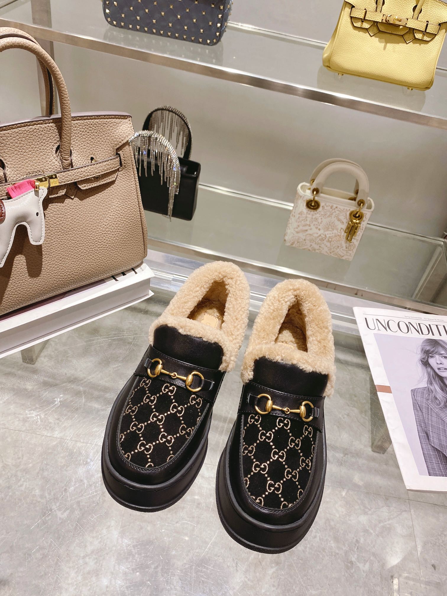 GG Horsebit Snow Boots Beige Woolen Fabric Fleece 576253