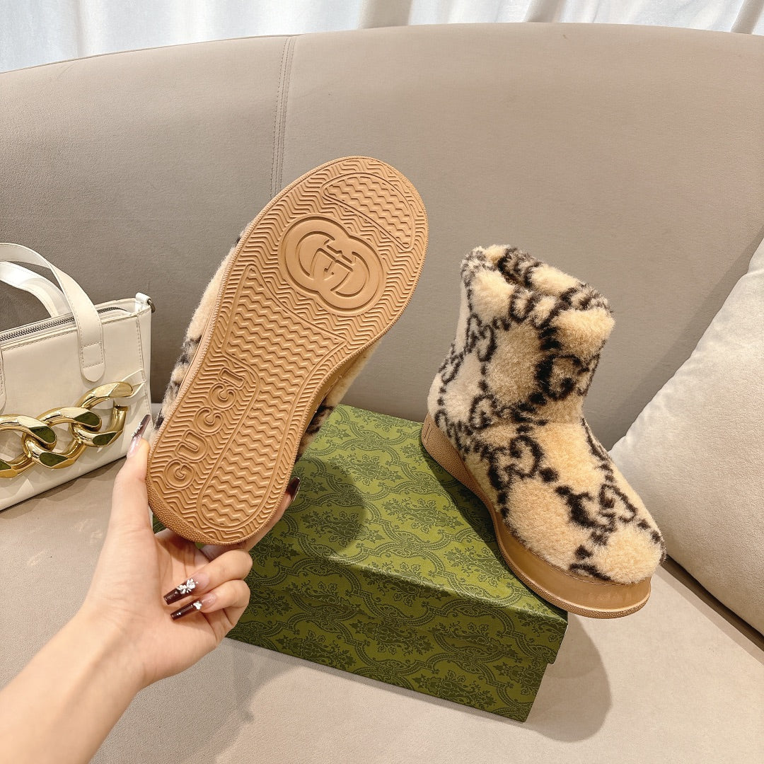 GG Snow Boots Beige Black Wool 576232