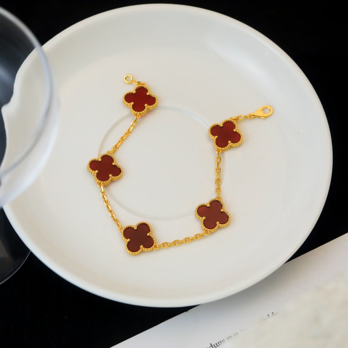 CLOVER BRACELET 5 MOTIF CARNELIAN