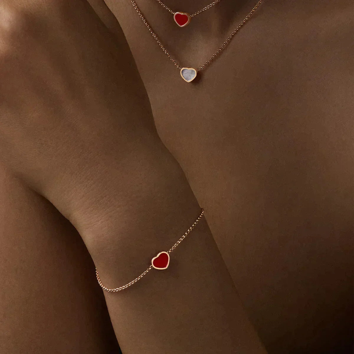 HAPPY HEART CARNELIAN PINK GOLD BRACELET DIAMOND