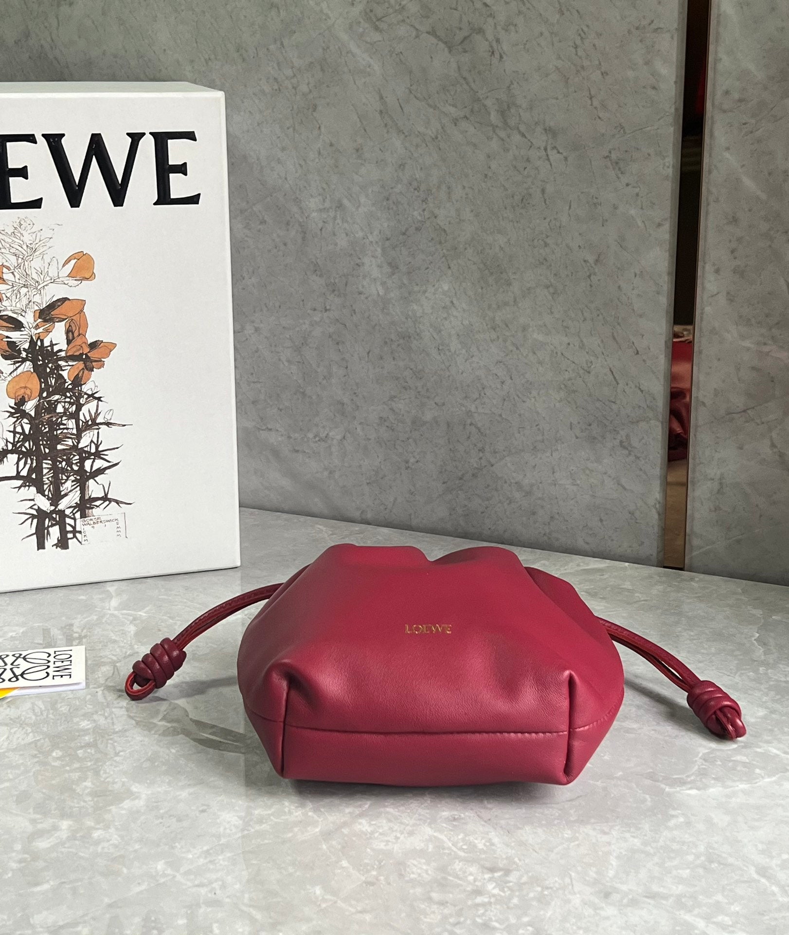 LOE 23 FLAMENCO PURSE BUCKET IN RED PINK LAMBSKIN
