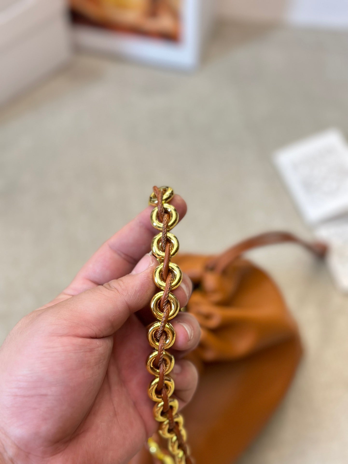 LOE MINI 19 PEBBLE BUCKET IN CAMEL BROWN MELLOW CALFSKIN