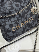 CC 22 Bag Mini Gray Black Camellia Pattern Demin Silver Hardware 243630