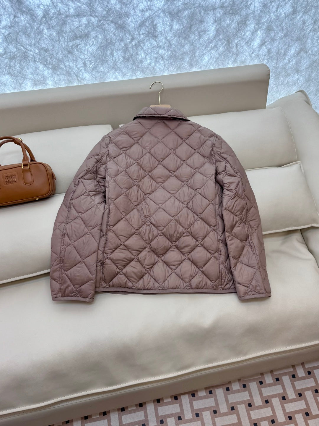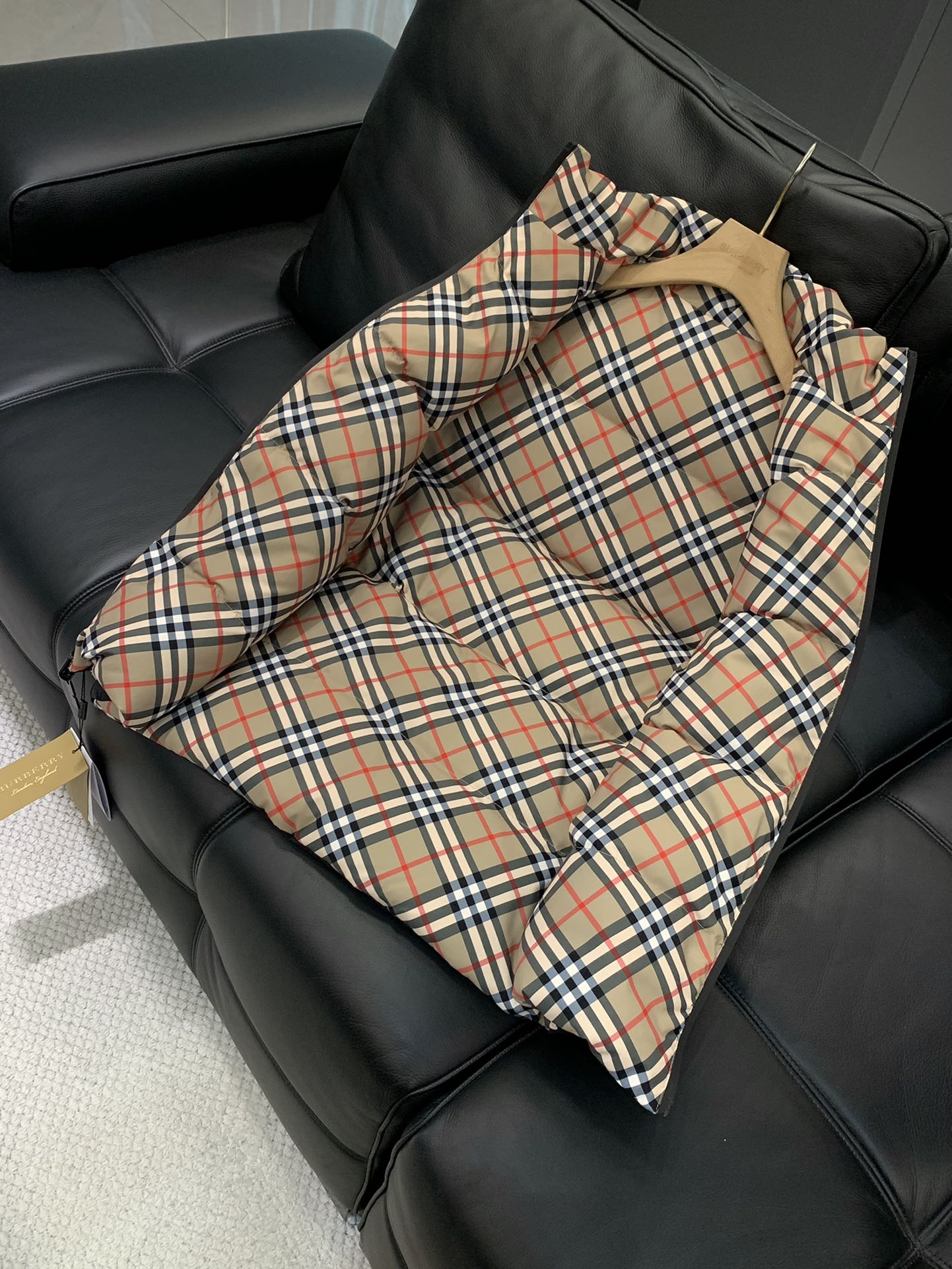 Burberry 25 Plaid Stand Collar Down Jacket Light Yellow Polyester