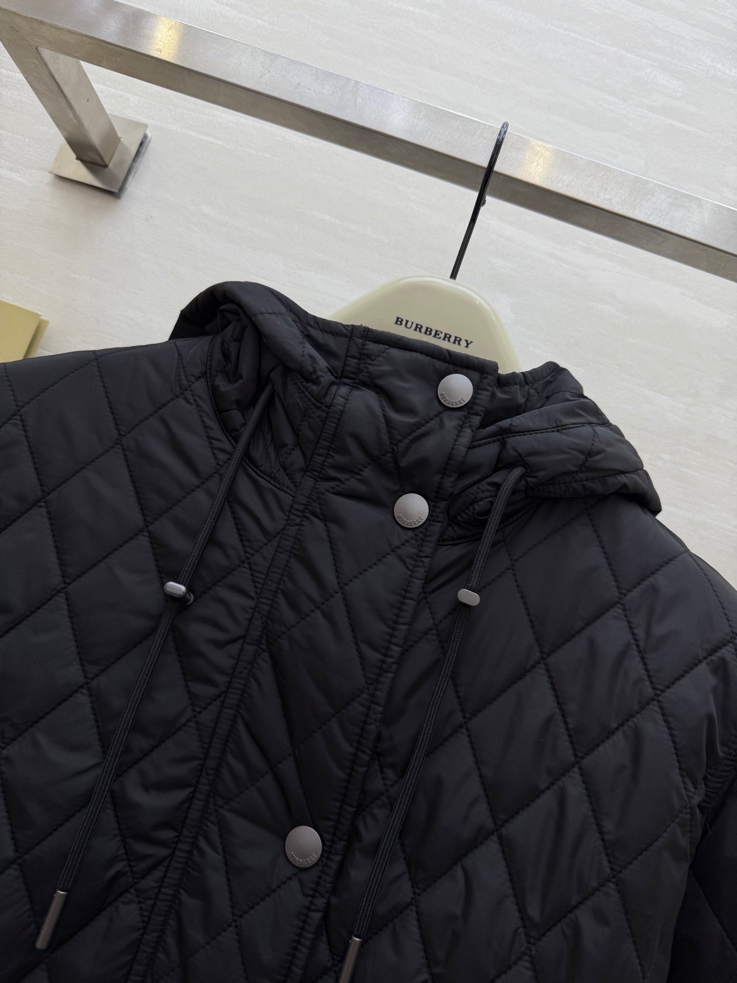 Burberry 25 Quilted Hooded Long Coat Black Polyester Cotton