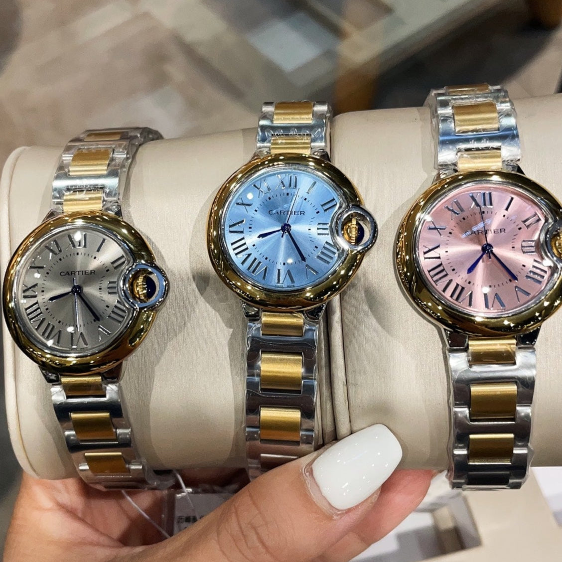 Cartier Balloon 33mm Quartz Silver Gold Bracelet