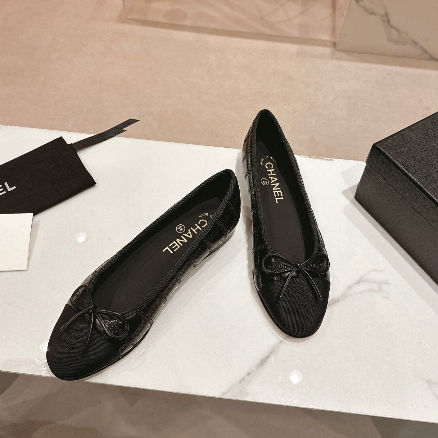 ballet flats black lambskin embroidery grosgrain