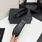 CC 25 Ballet Flat Flower Black Quilted Calfskin