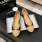 CC 25P Ballet Flat Black Beige Raffia Large Logo