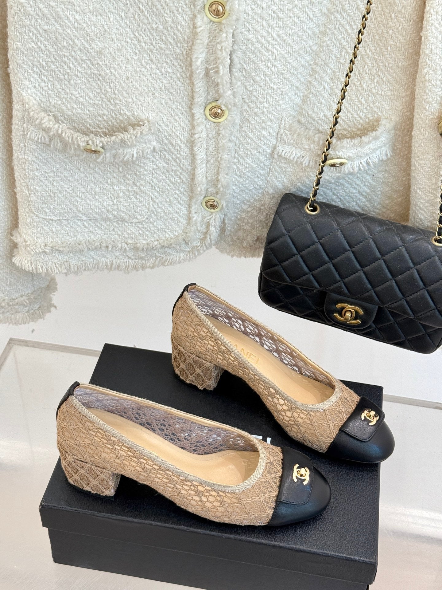 Chanel 25 Ballet Flat 50mm Beige Black Woven Lambskin 473050