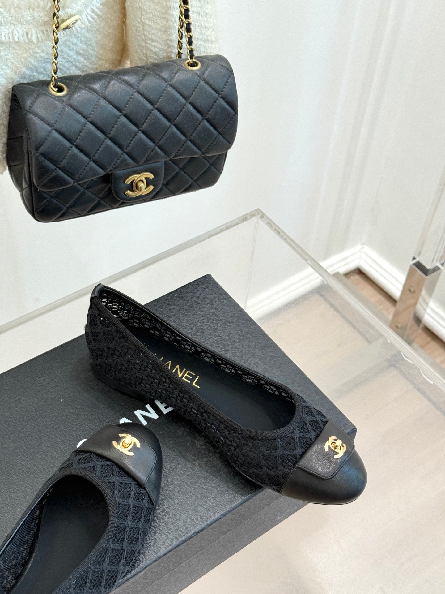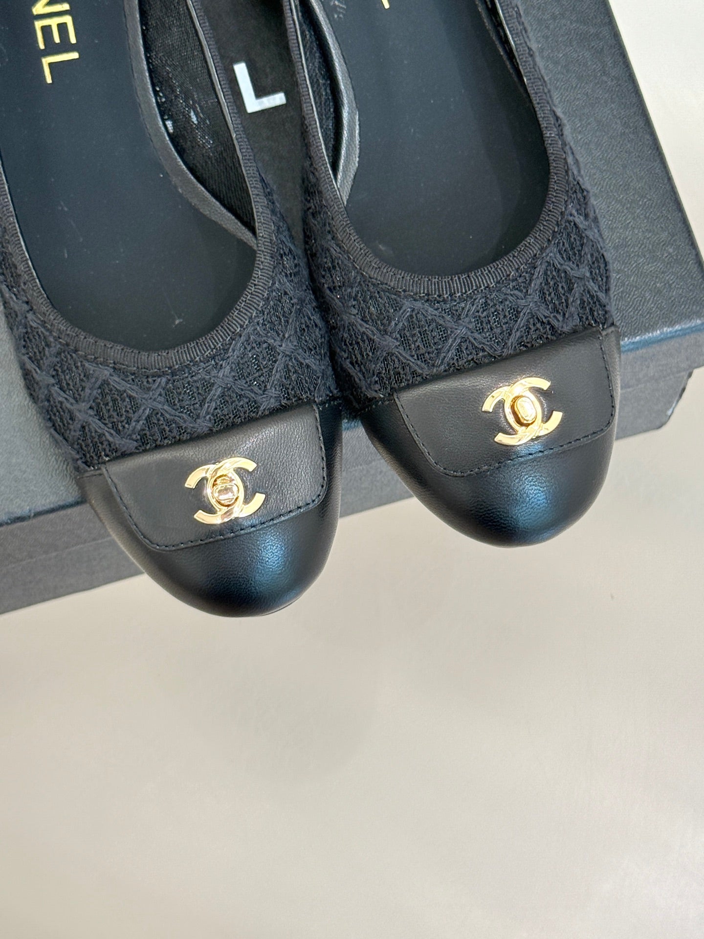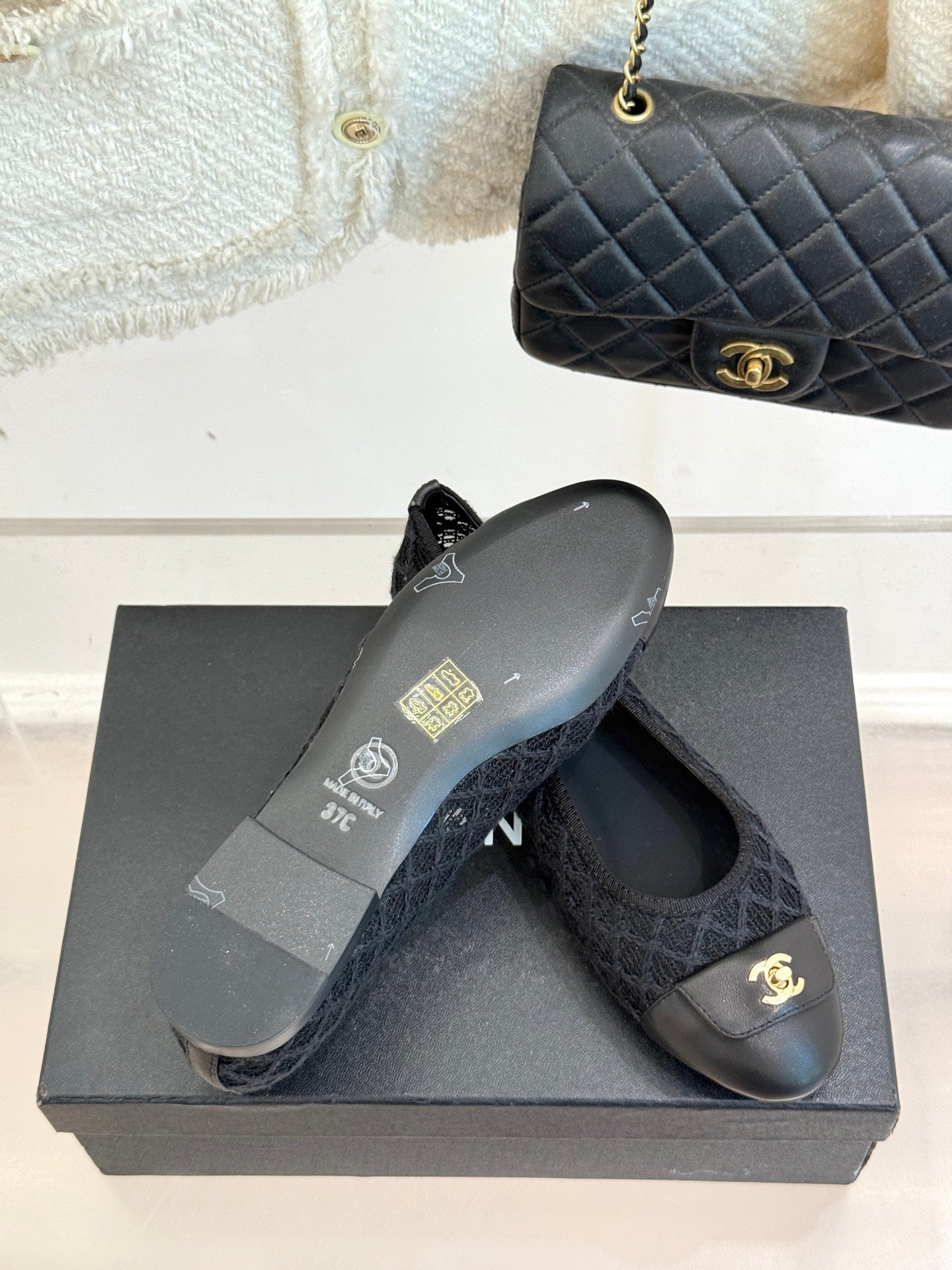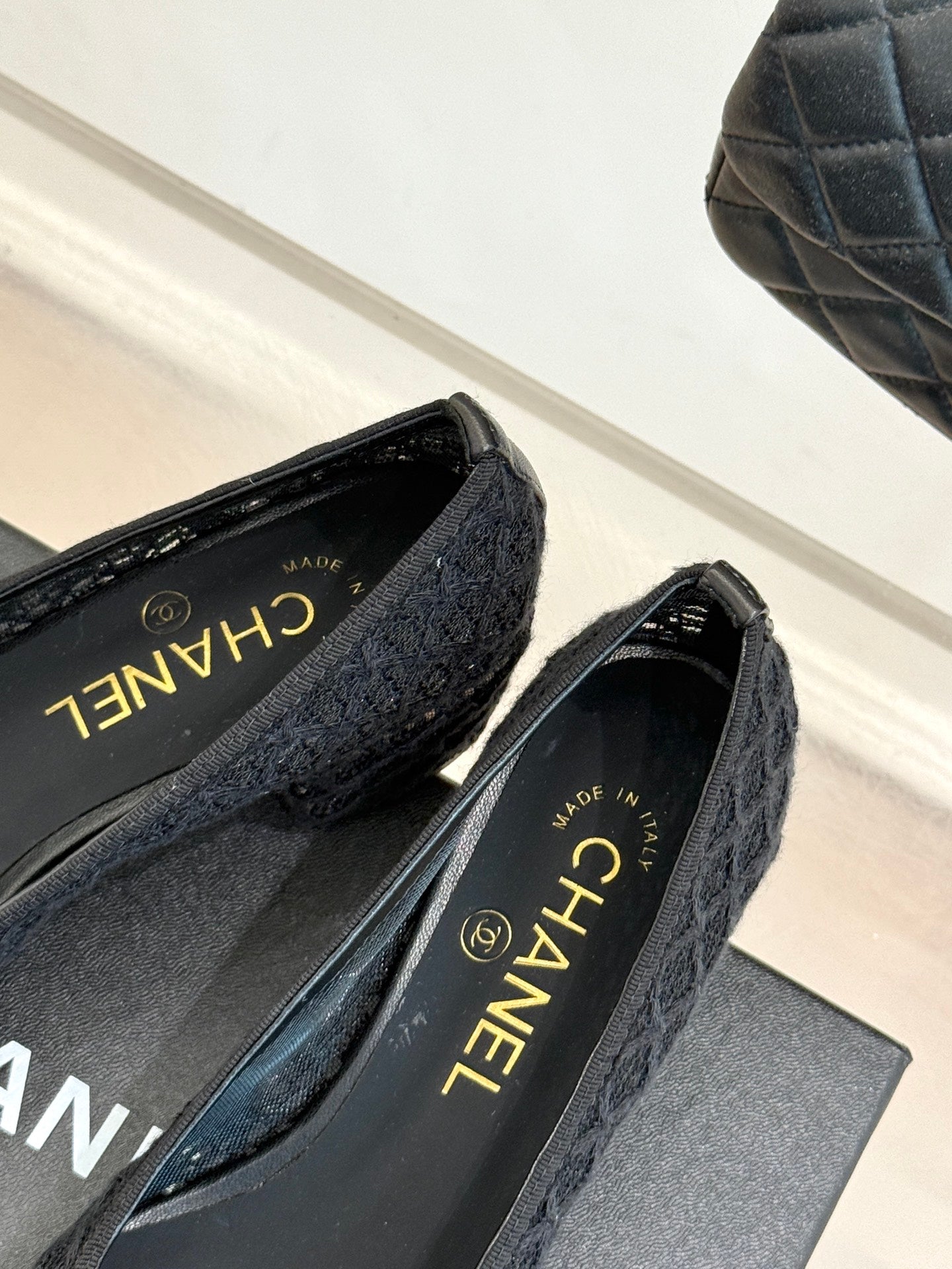 Chanel 25 Ballet Flat 50mm Black Woven Lambskin 473051