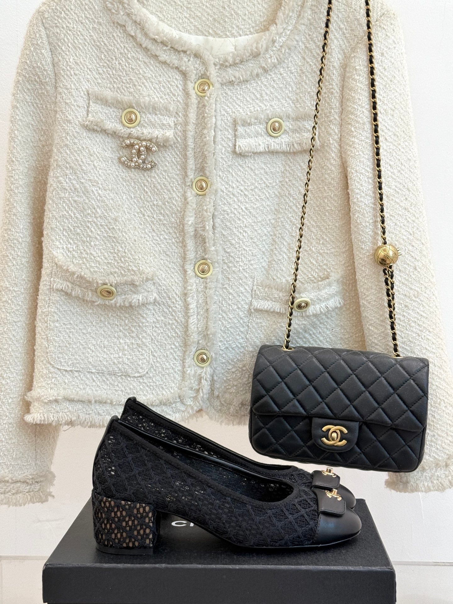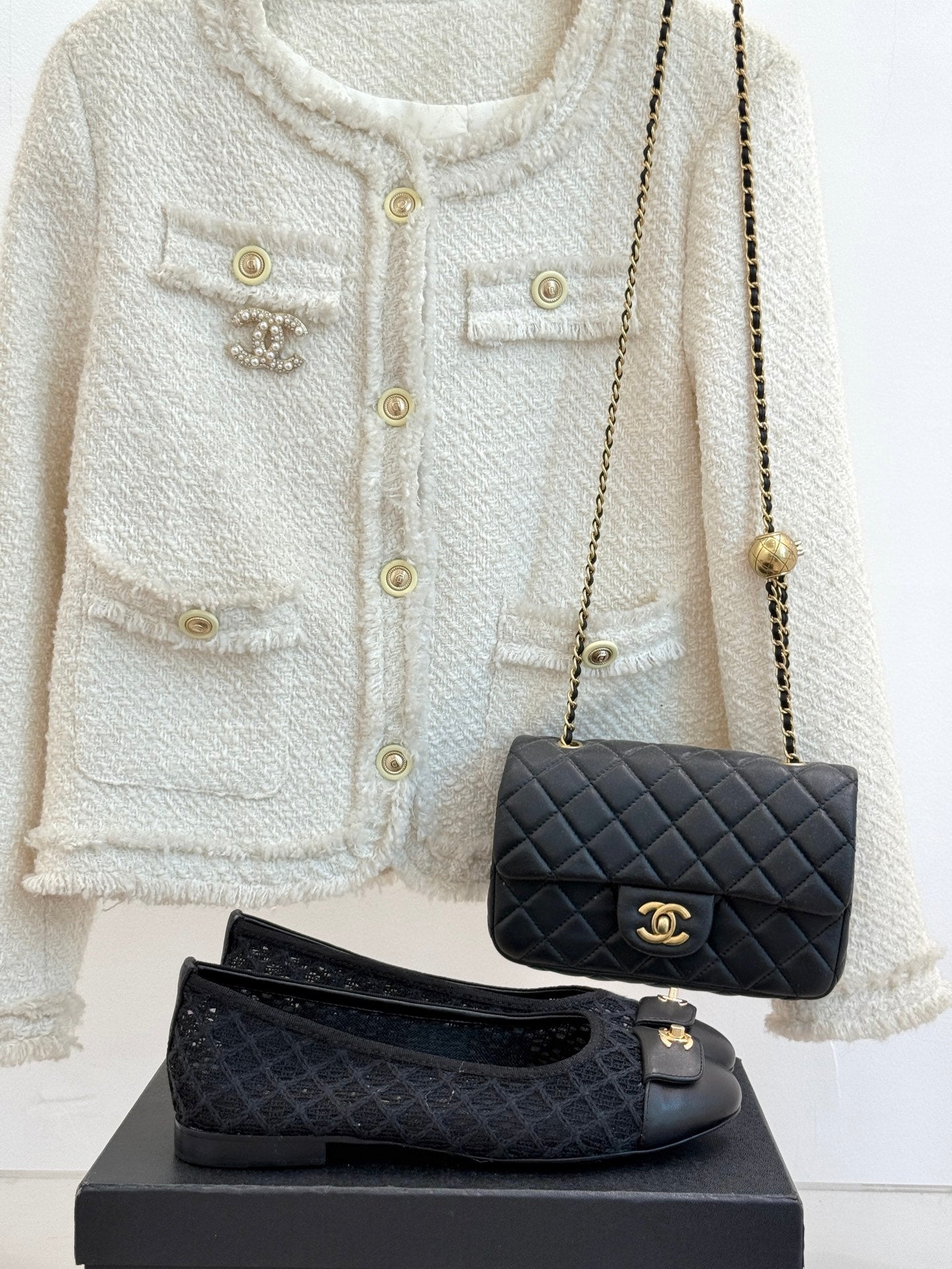 Chanel 25 Ballet Flat 50mm White Black Woven Lambskin 473053