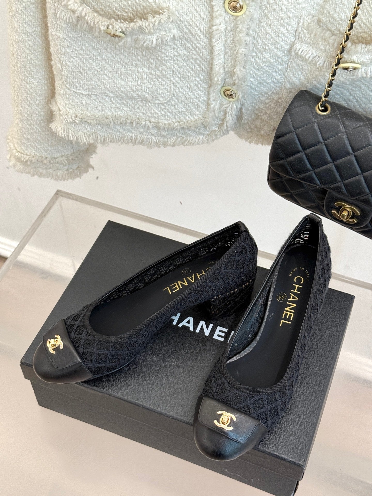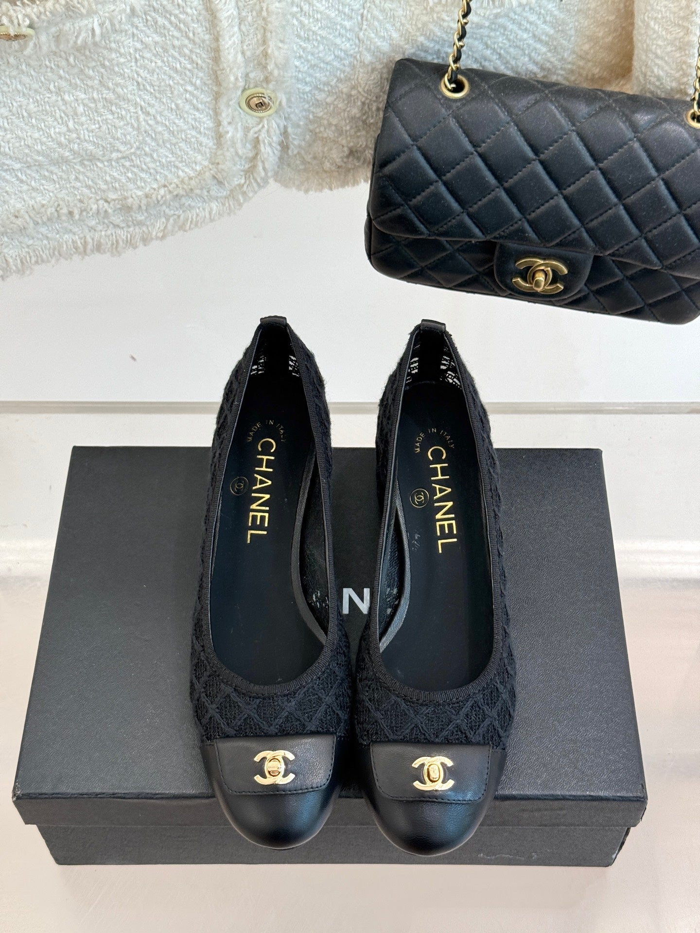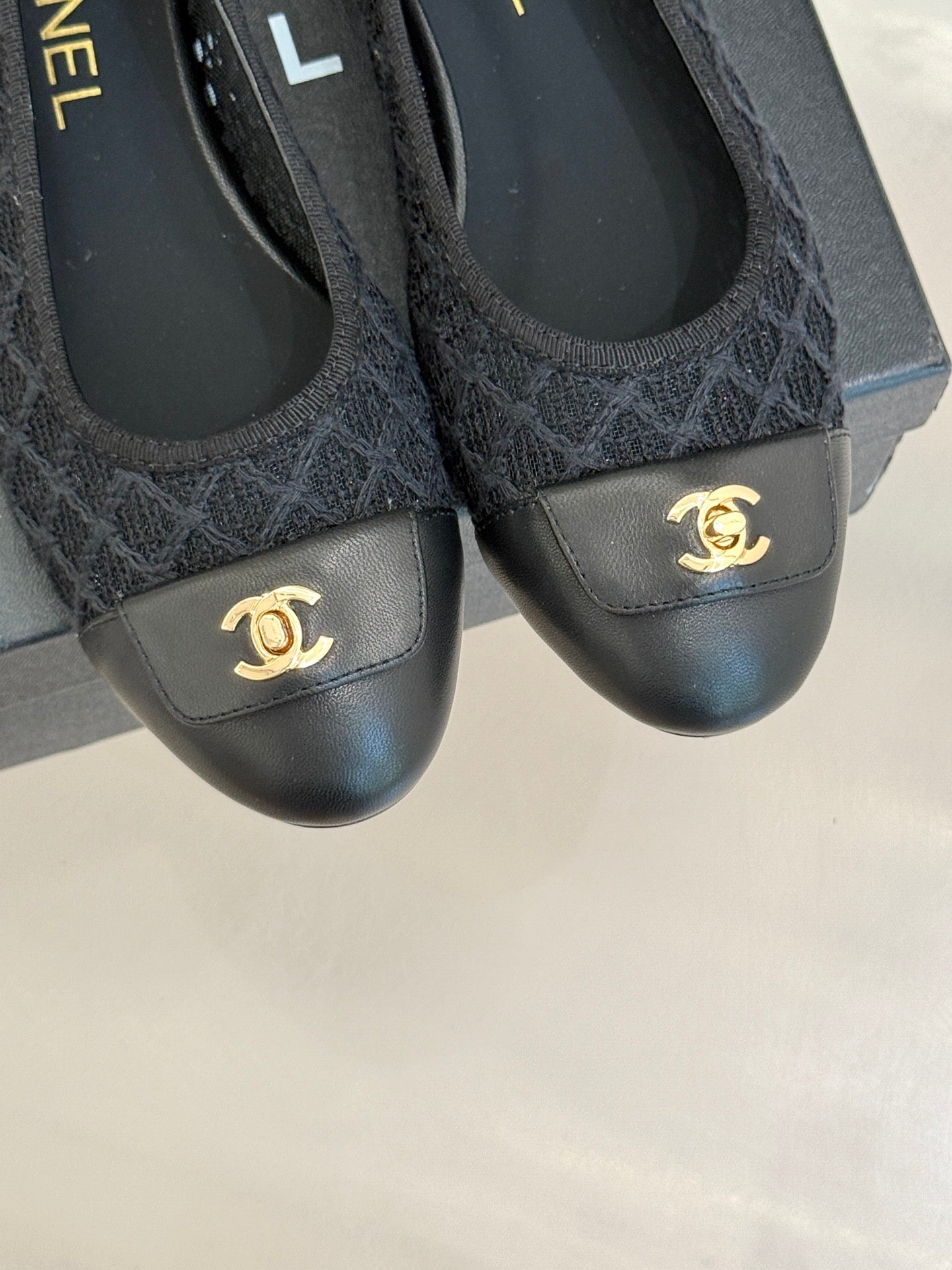 CC Ballet Flats 10mm Black Wool Tweed And Fabric 948826
