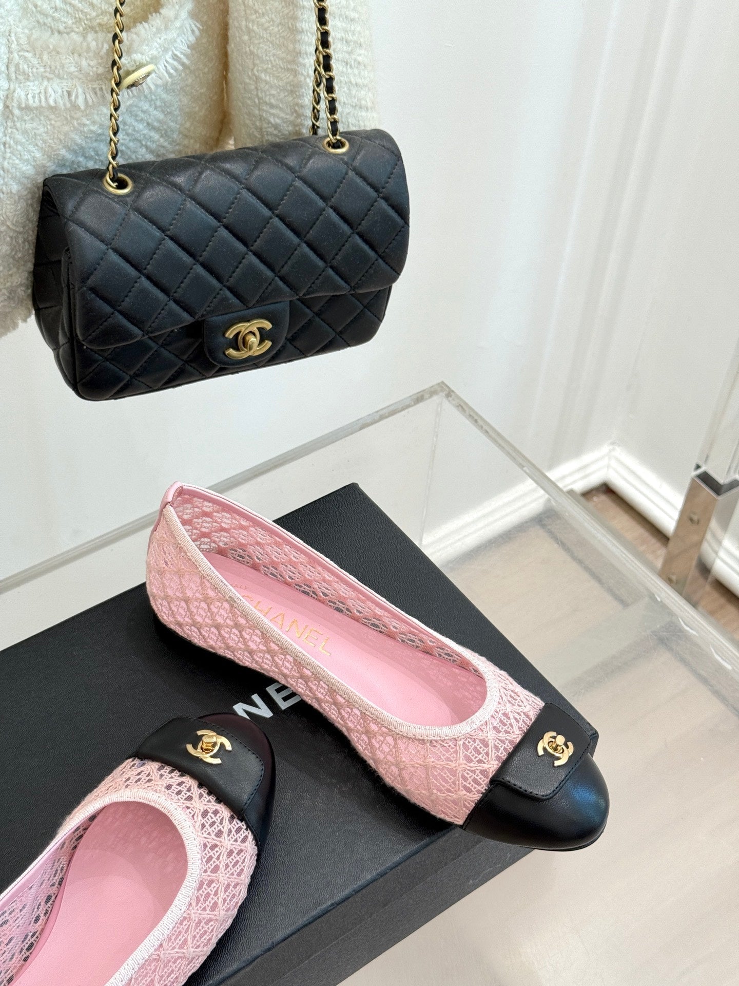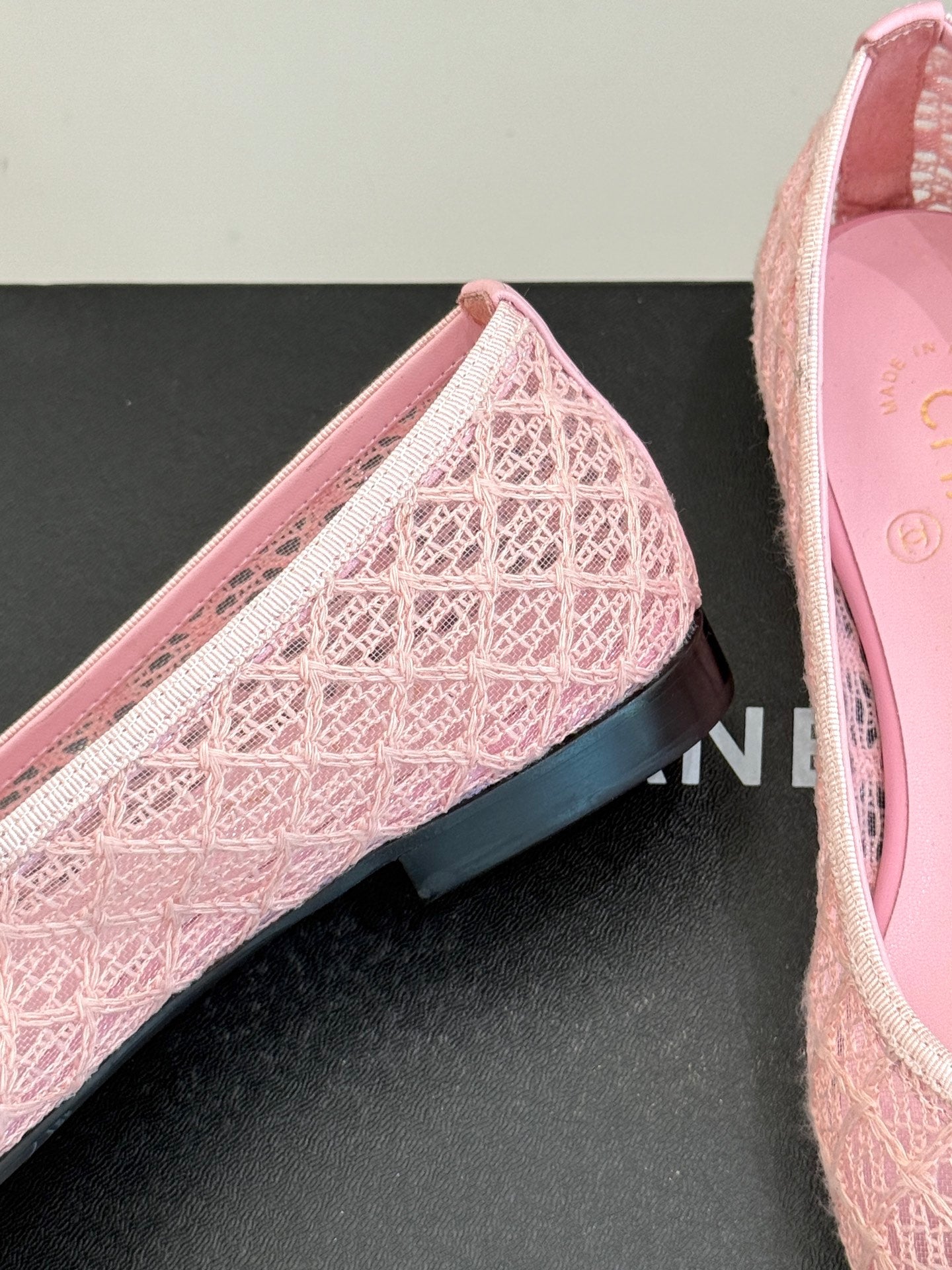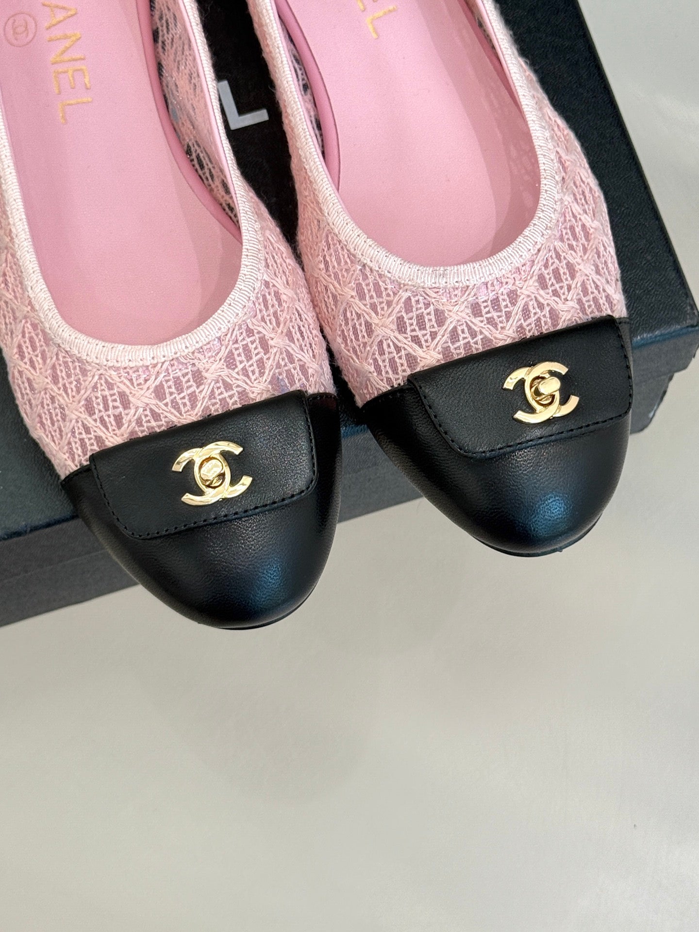 Chanel 25 Ballet Flat Pink Black Woven Lambskin 473054