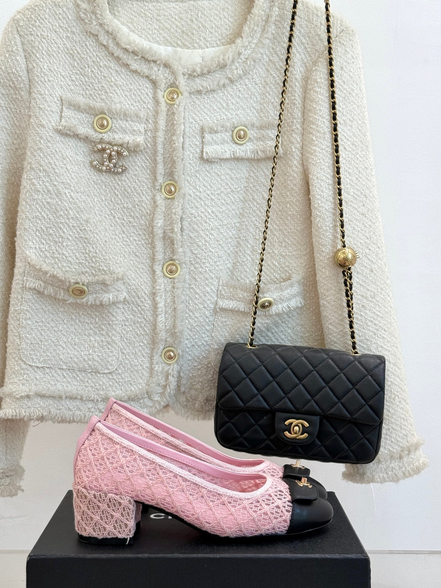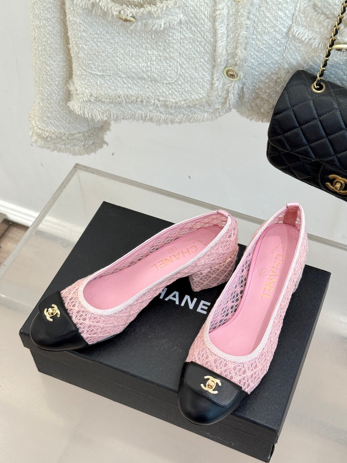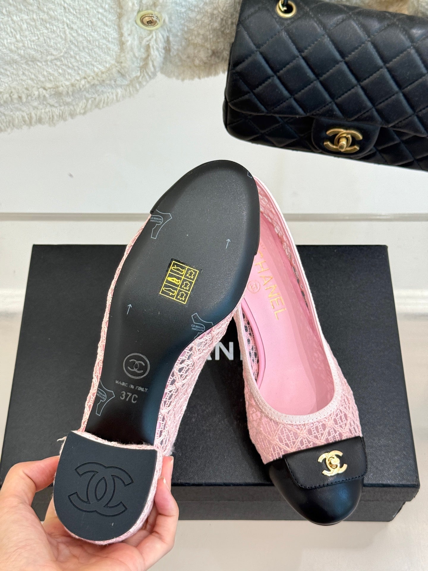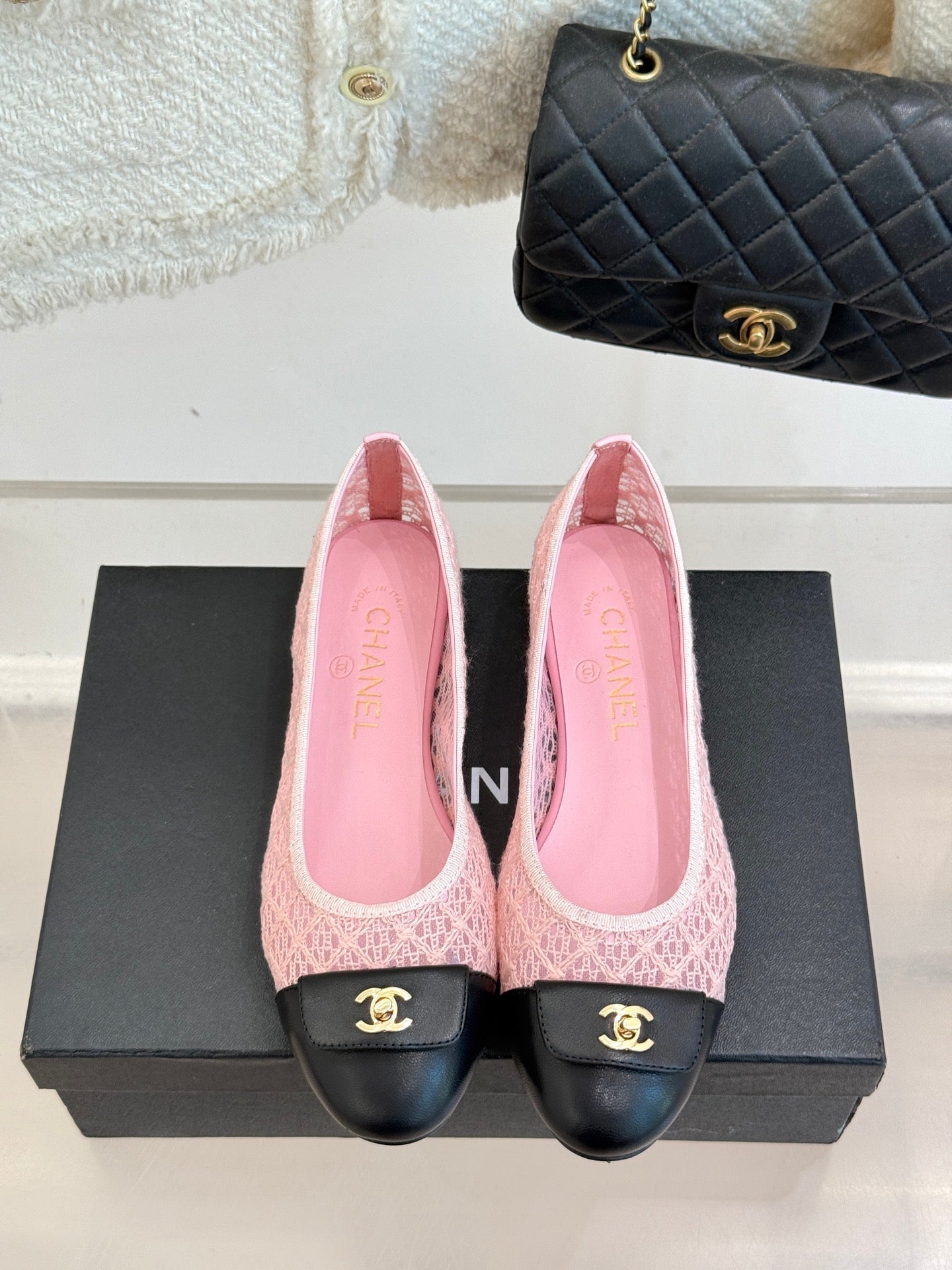 Chanel 25 Ballet Flat Pink Black Woven Lambskin 473054