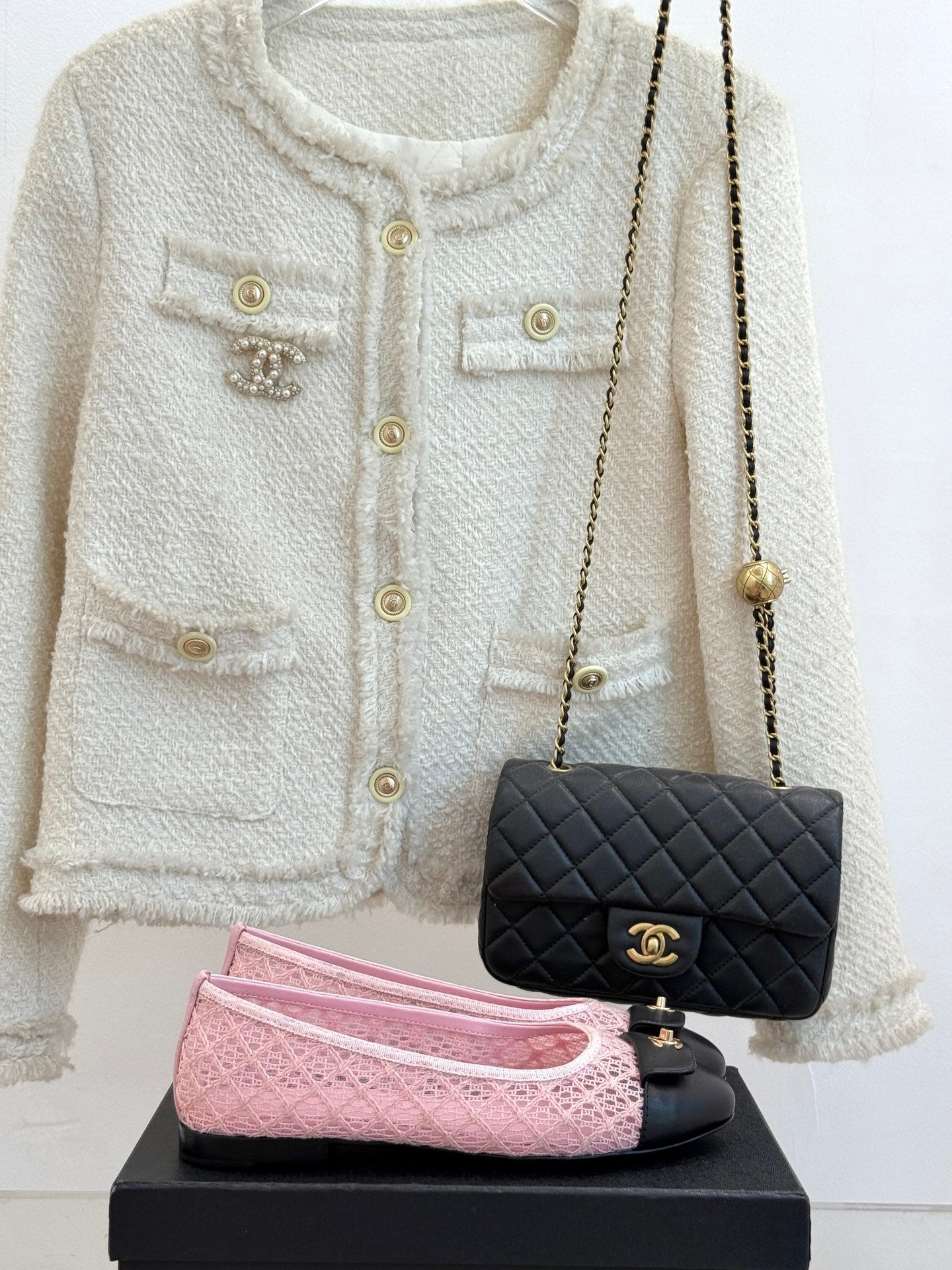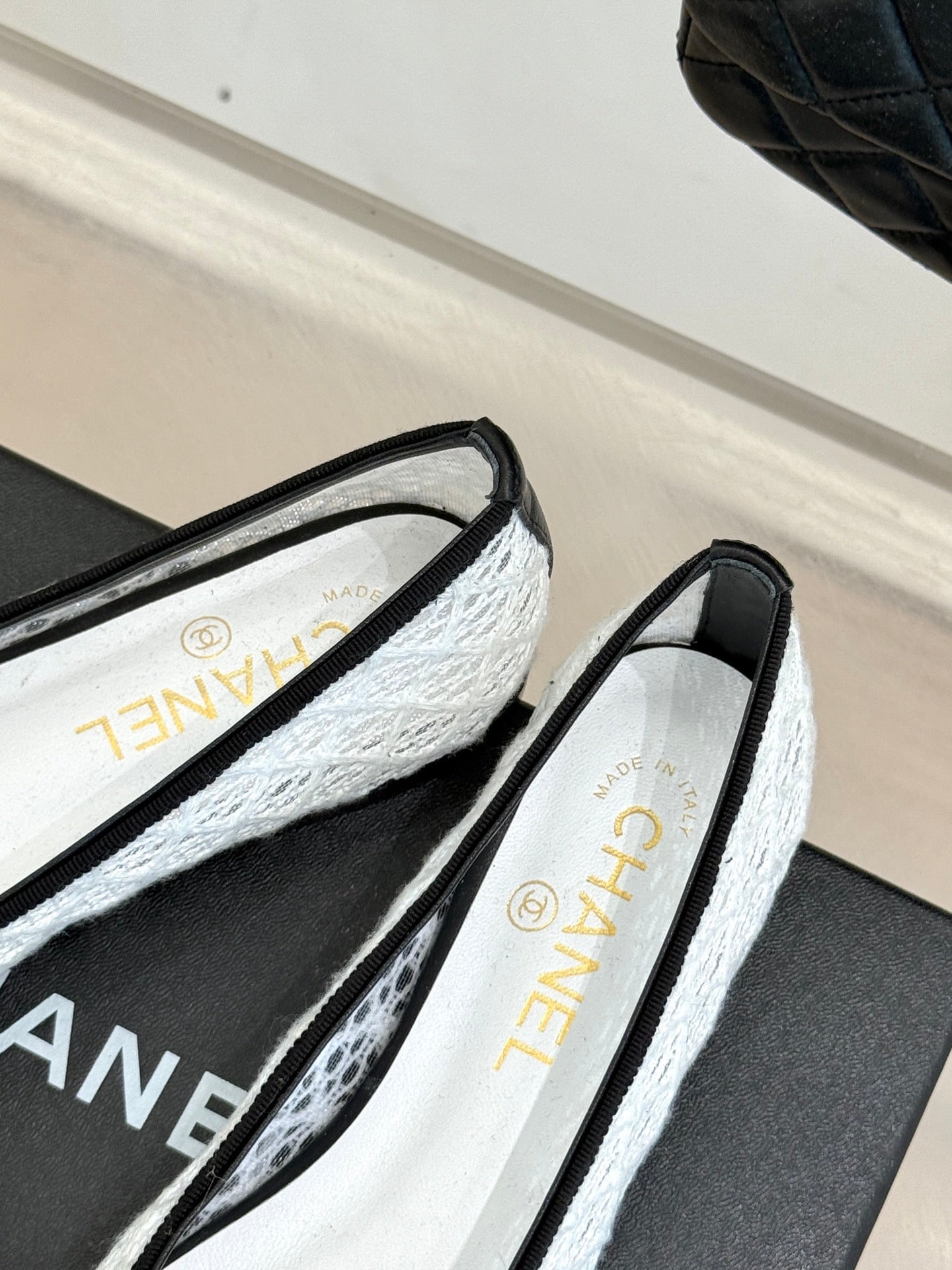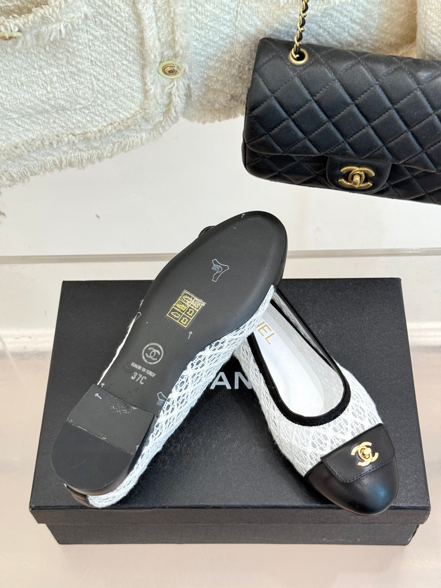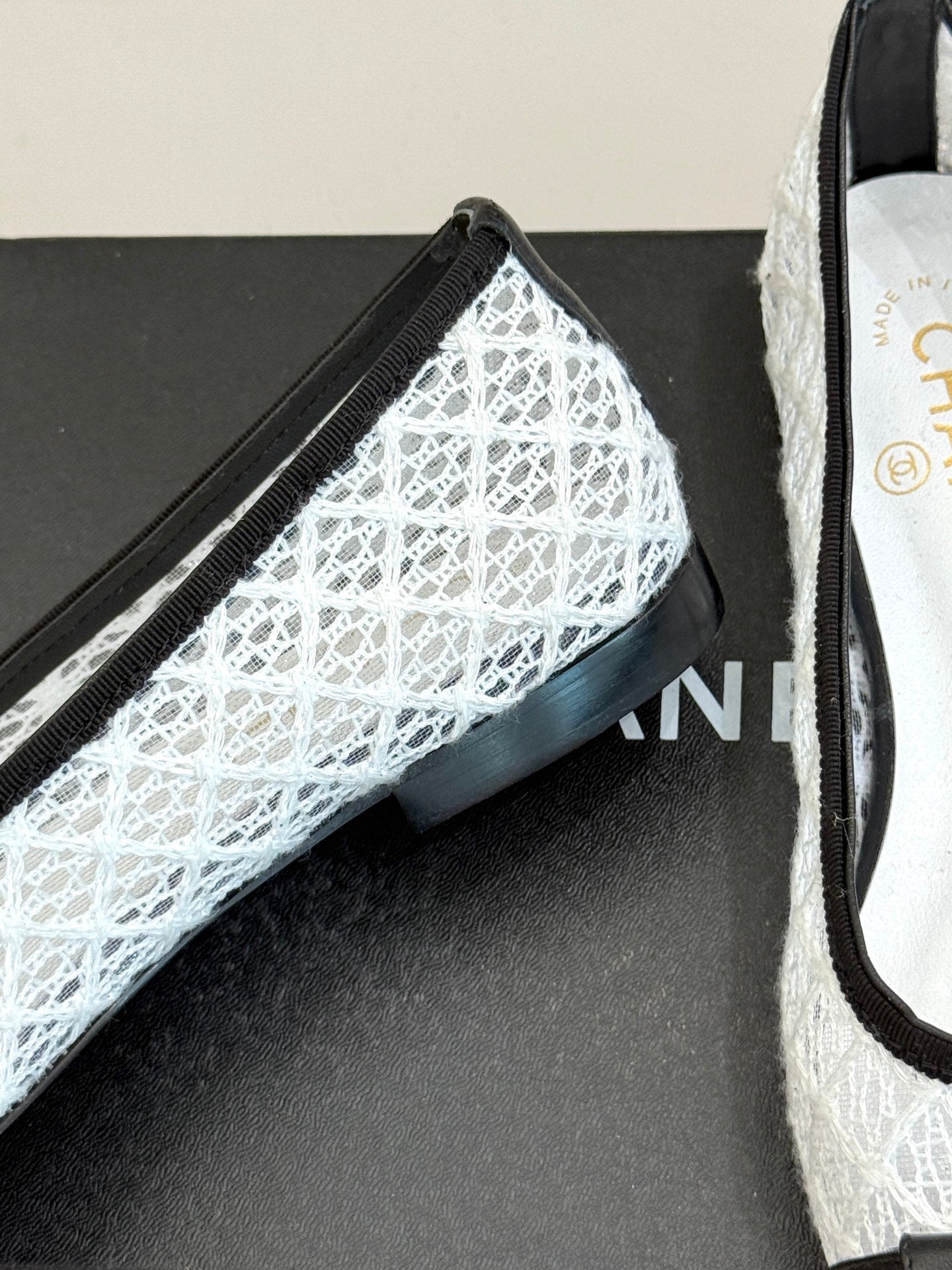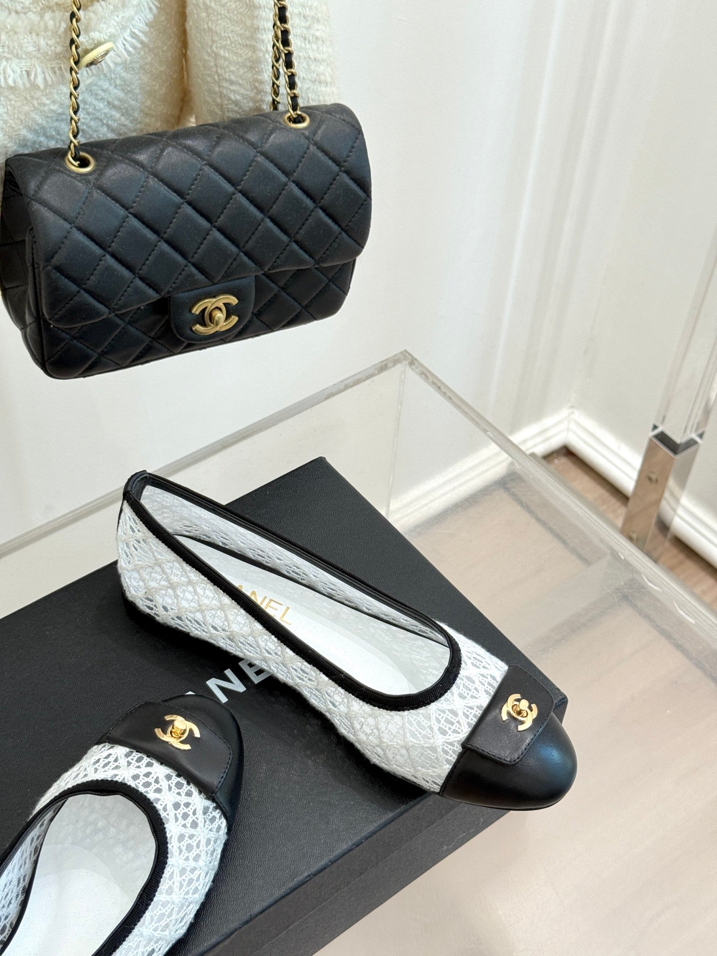 Chanel 25 Ballet Flat White Black Woven Lambskin 473057