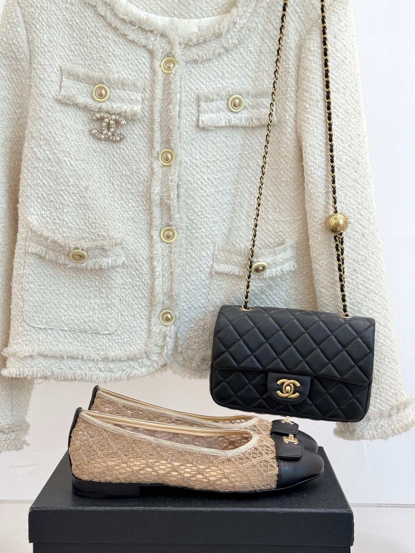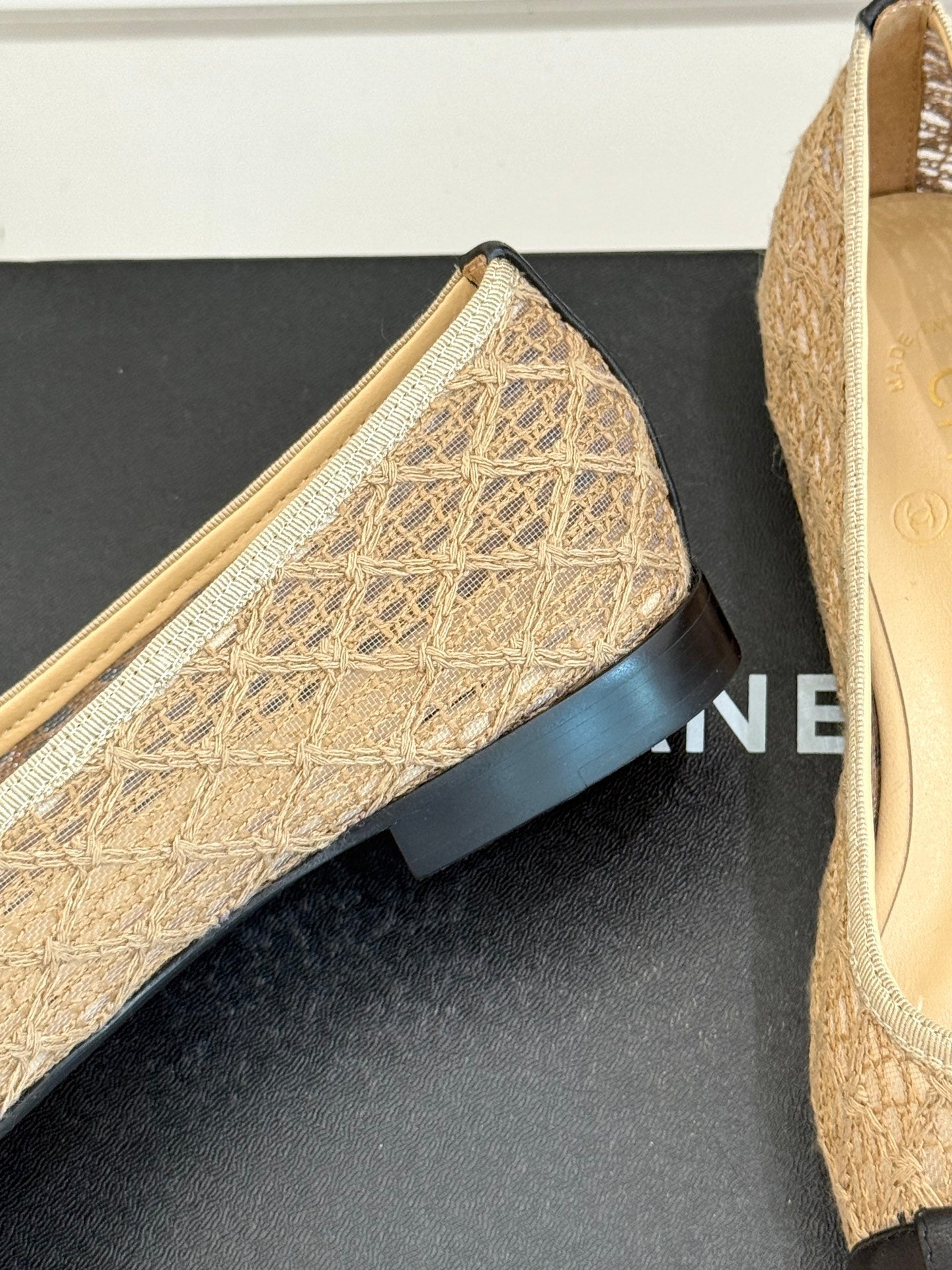 Chanel 25 Ballet Flat Beige Black Woven Lambskin 473056