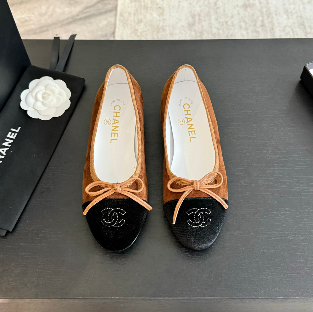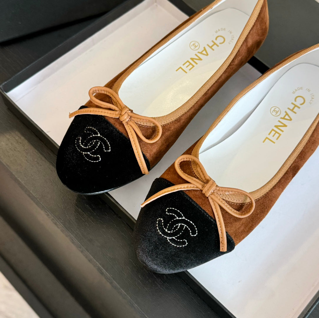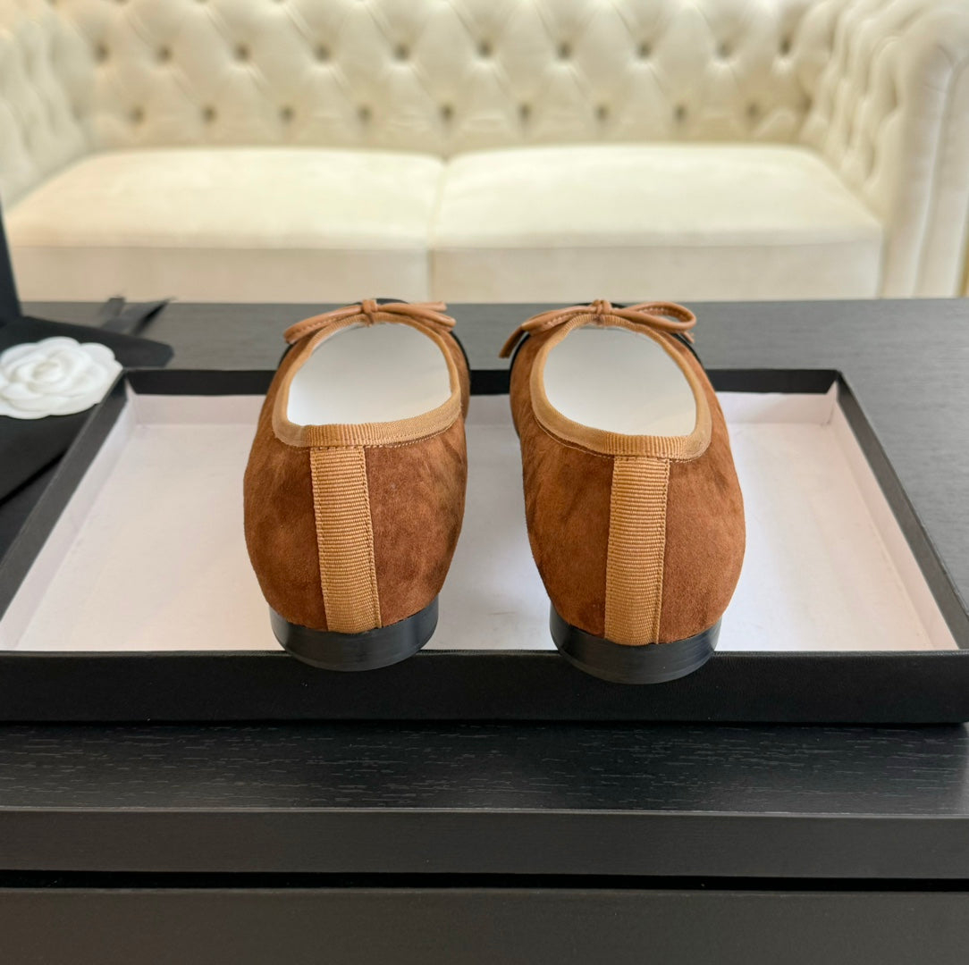 BALLET FLAT DARK CREAM LAMBSKIN WITH WHITE BOW