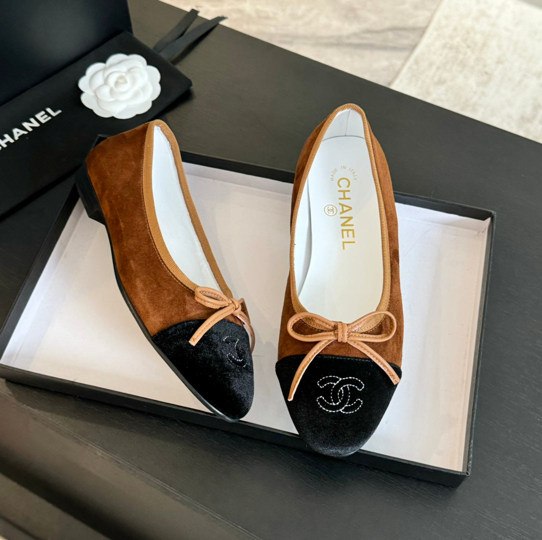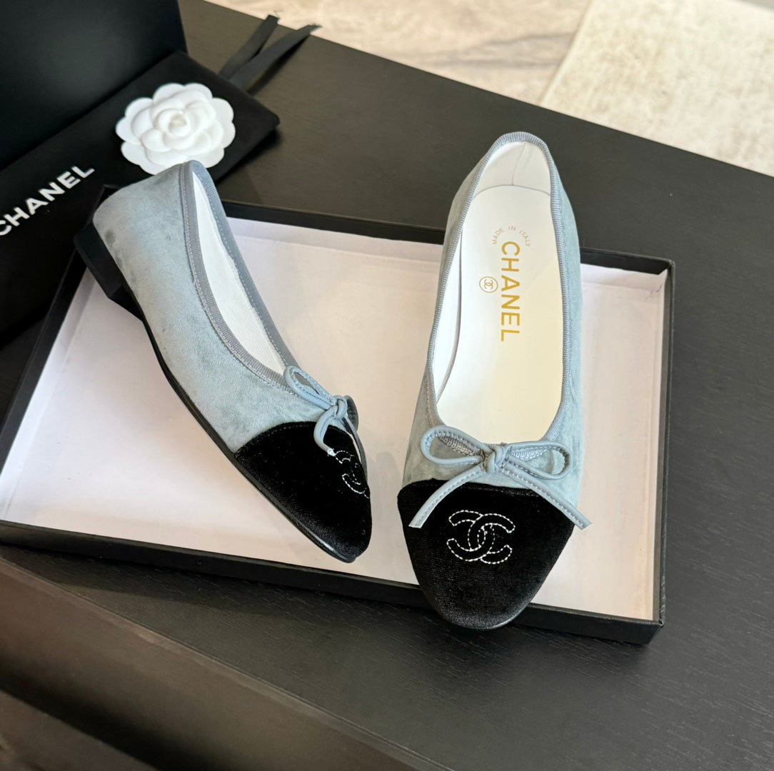 BALLET FLAT BLACK CALFSKIN AND FABRIC