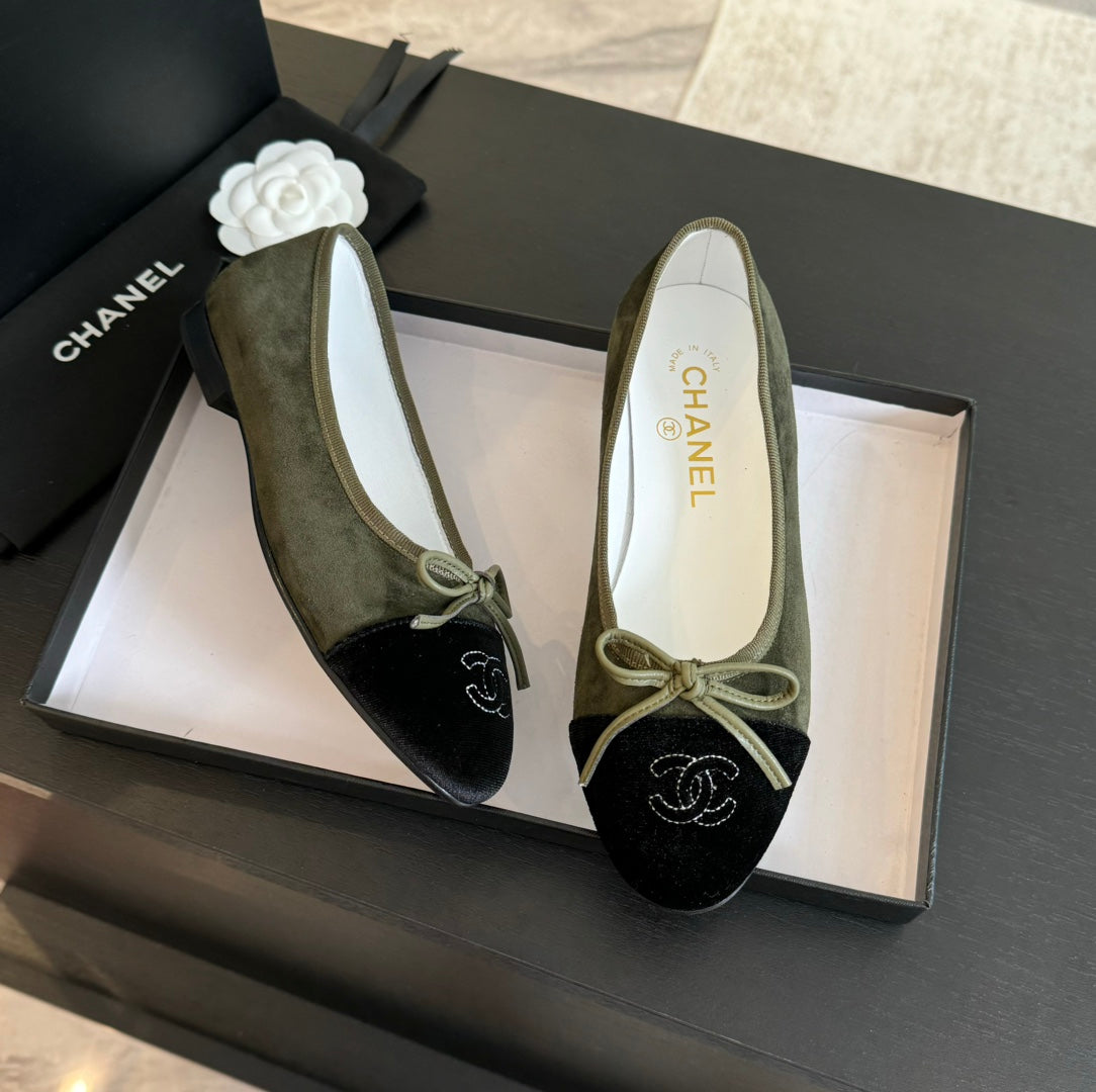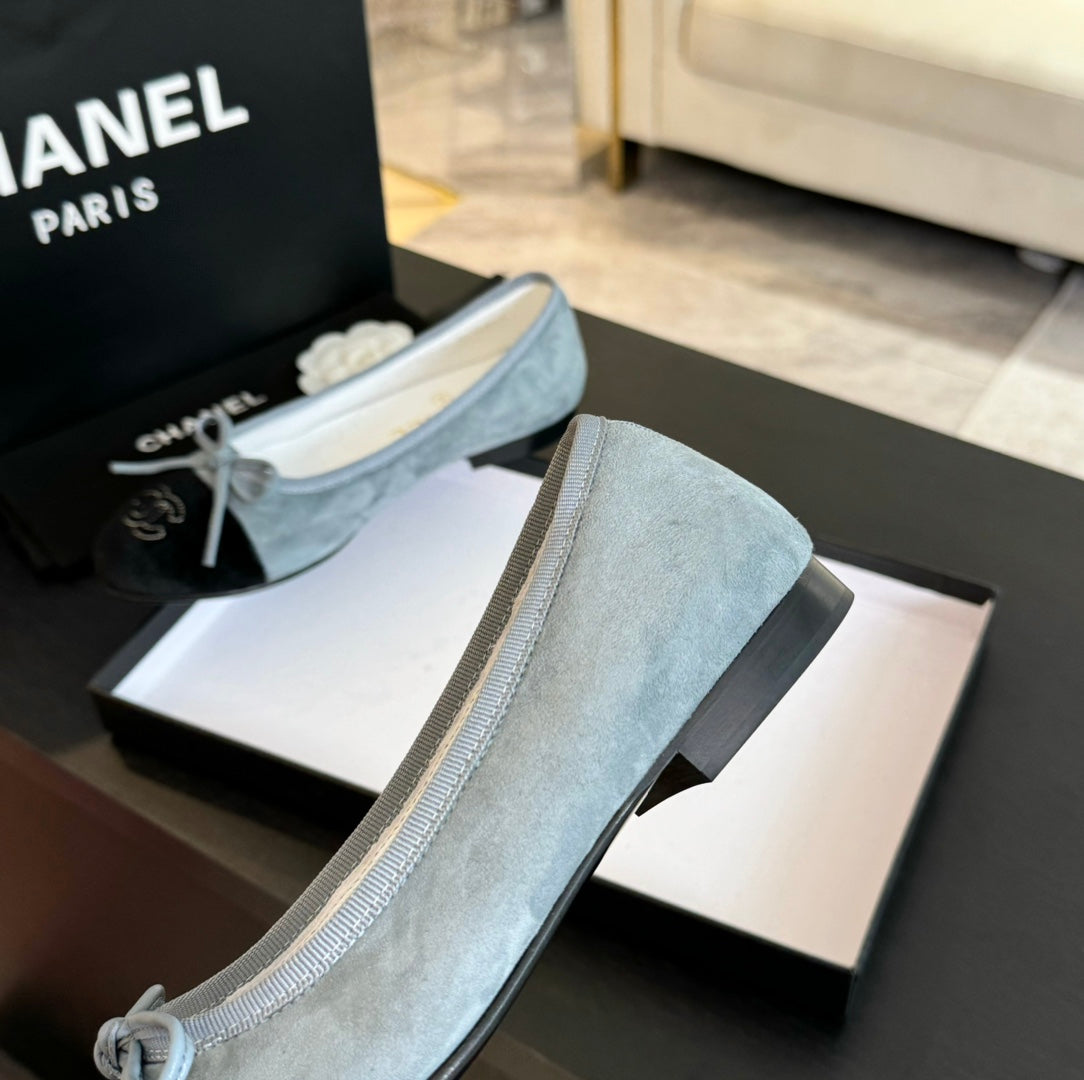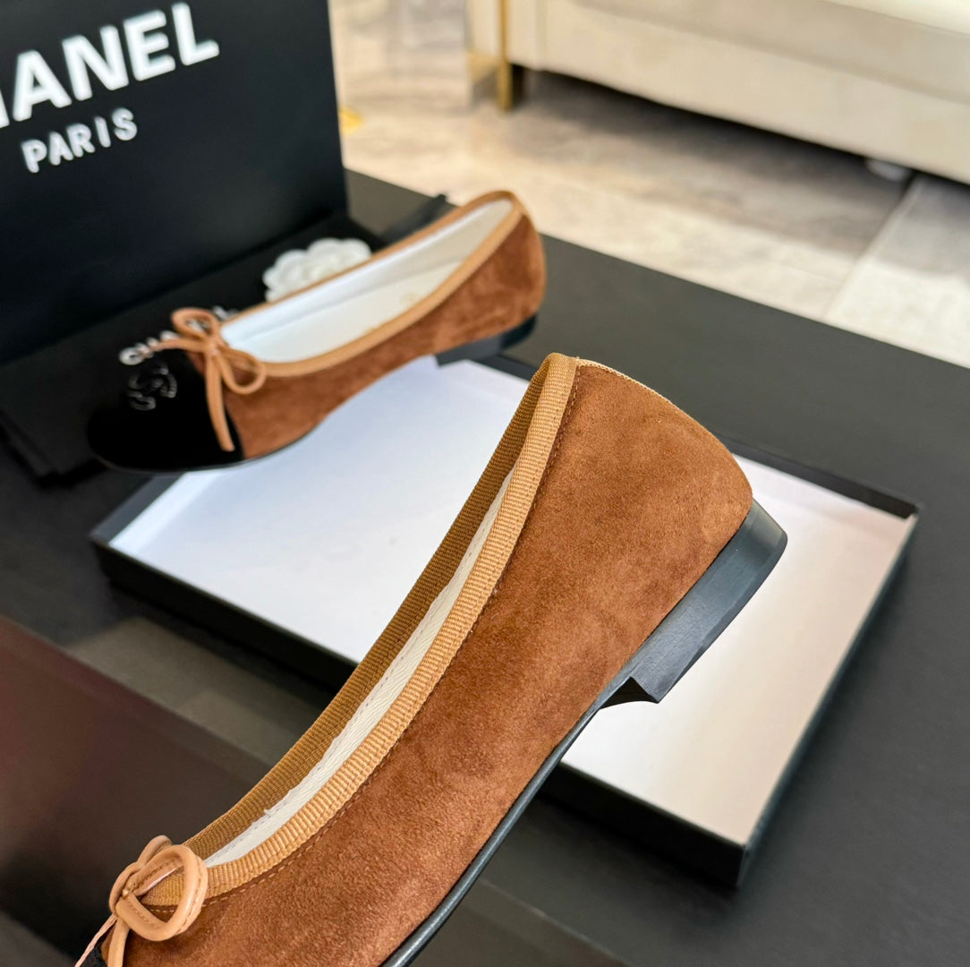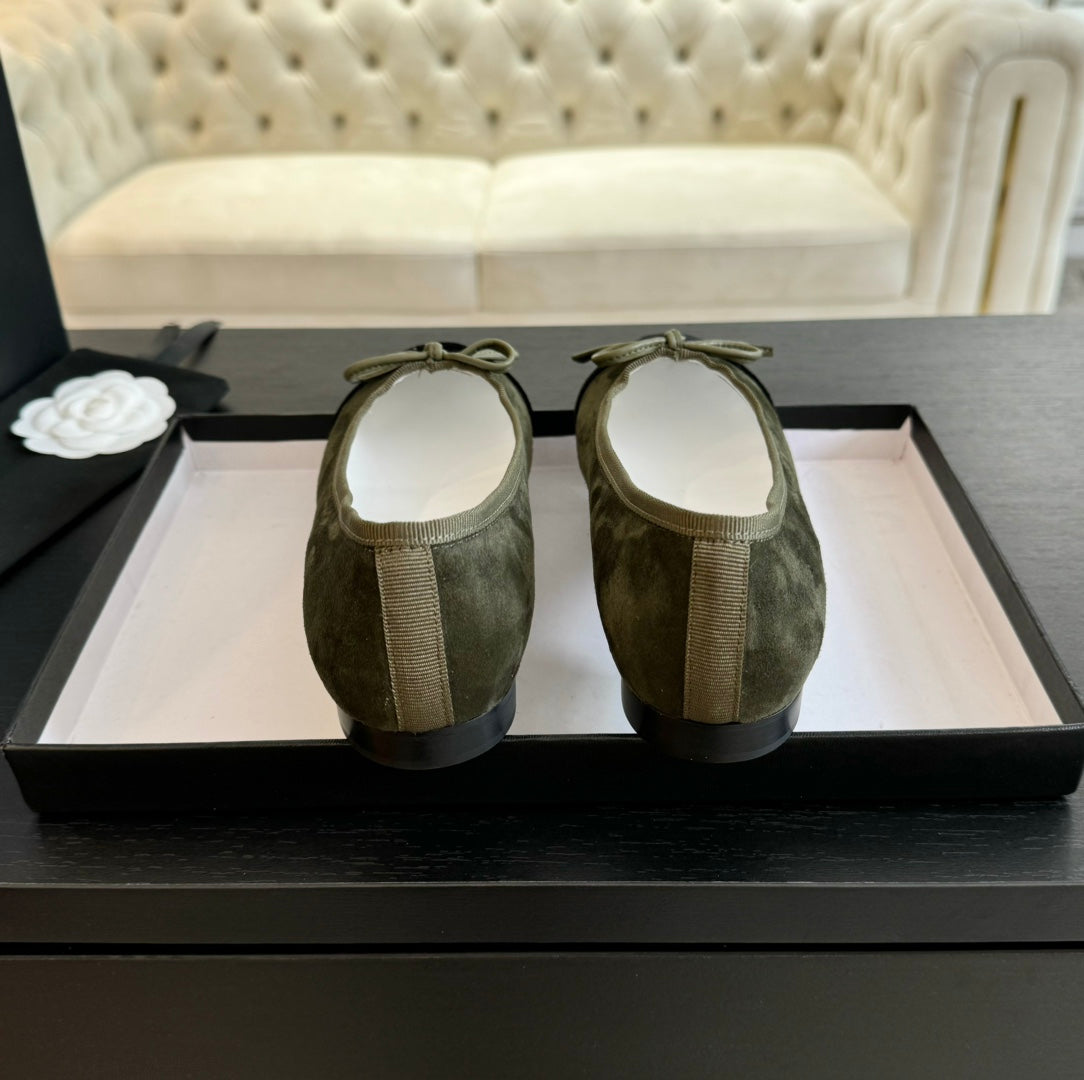 BALLET FLAT BLACK SUEDE LAMBSKIN WITH WHITE BOW