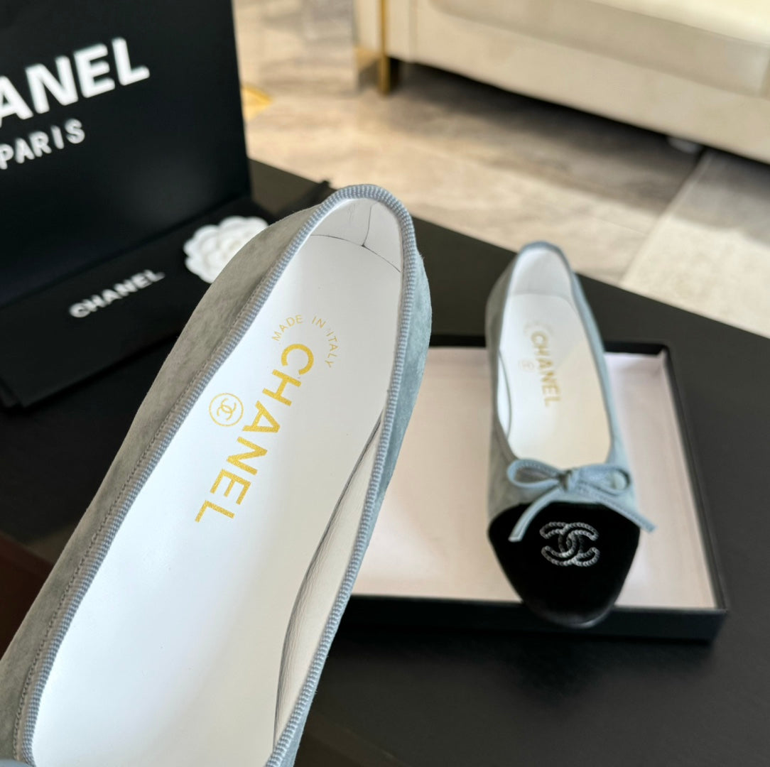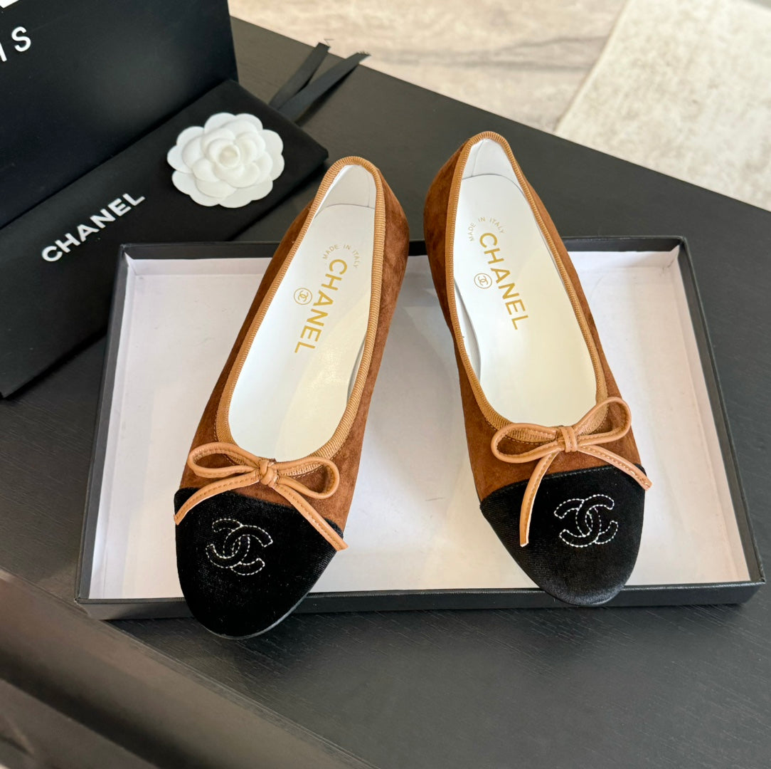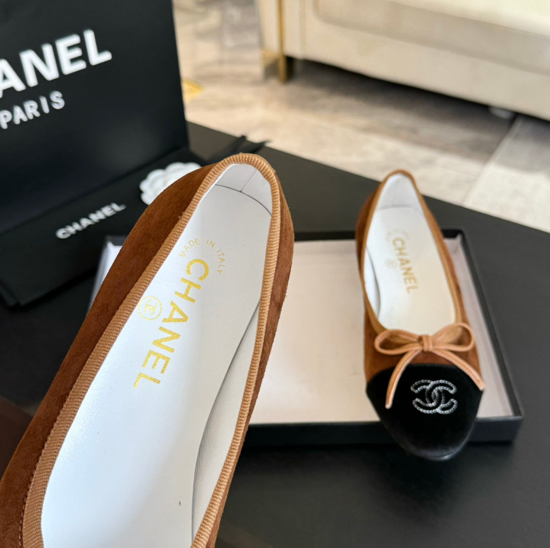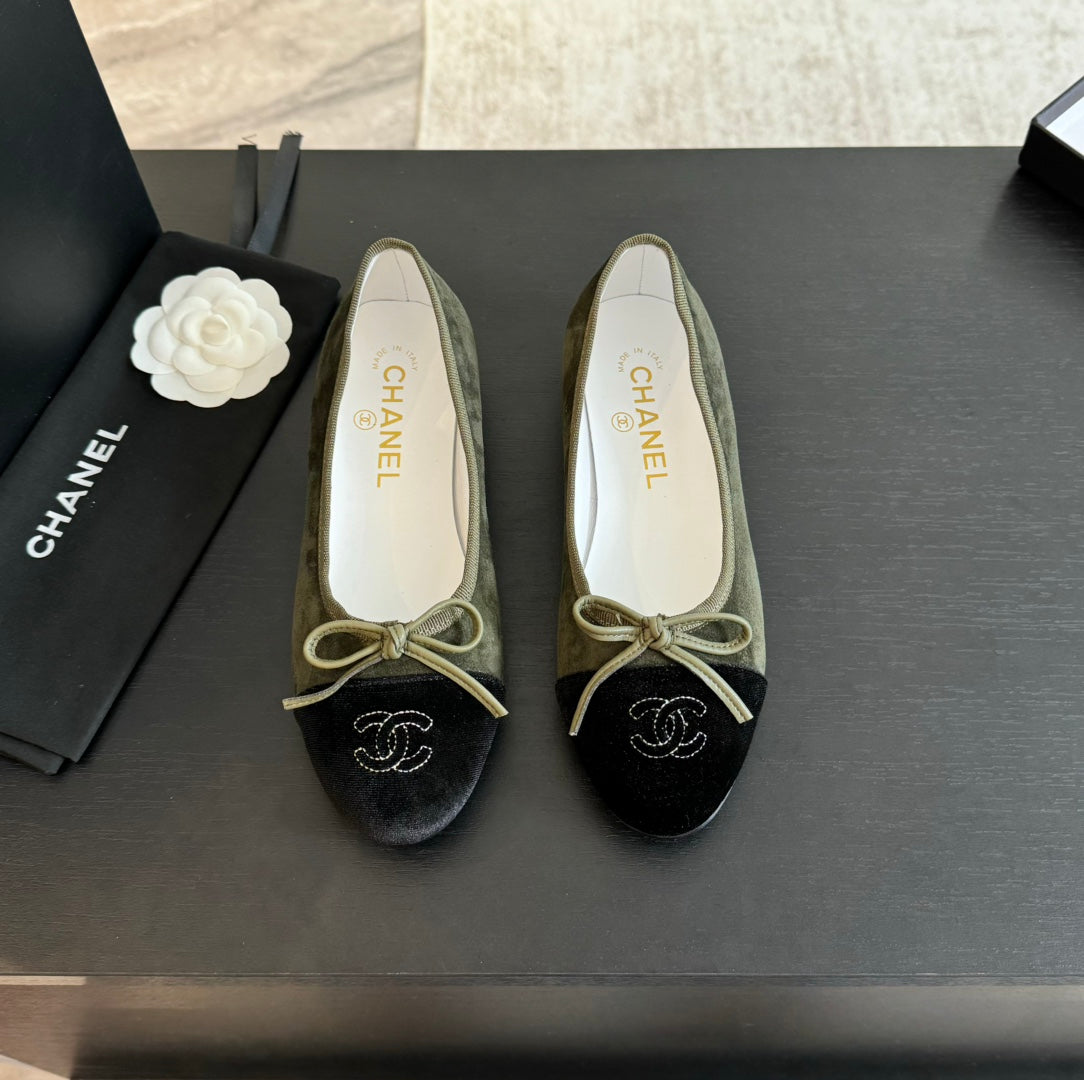 BALLET FLAT BLACK SUEDE LAMBSKIN WITH WHITE BOW
