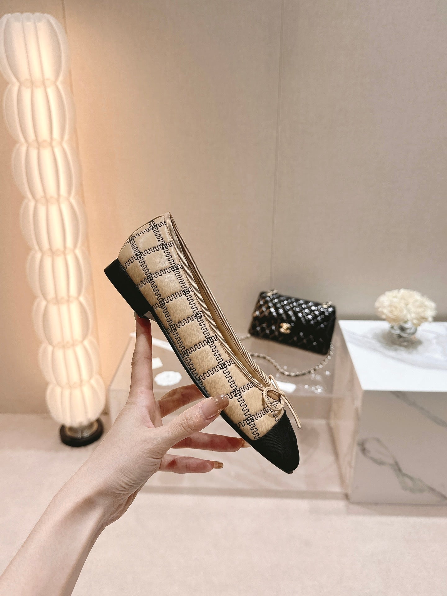 BALLET FLAT BEIGE CREAM CALFSKIN AND FABRIC