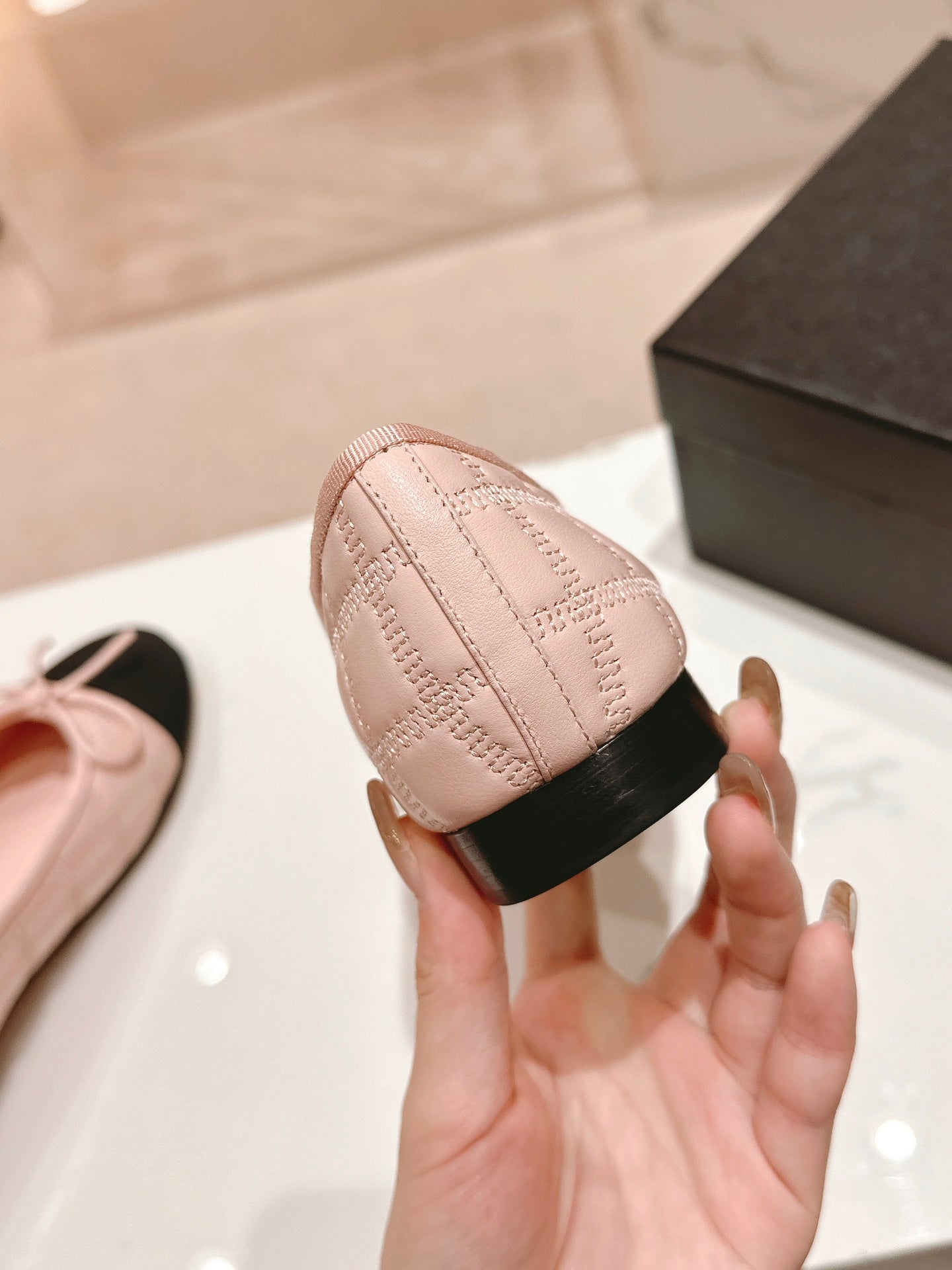 BALLET FLAT LIGHT PINK LAMBSKIN WITH WHITE BOW