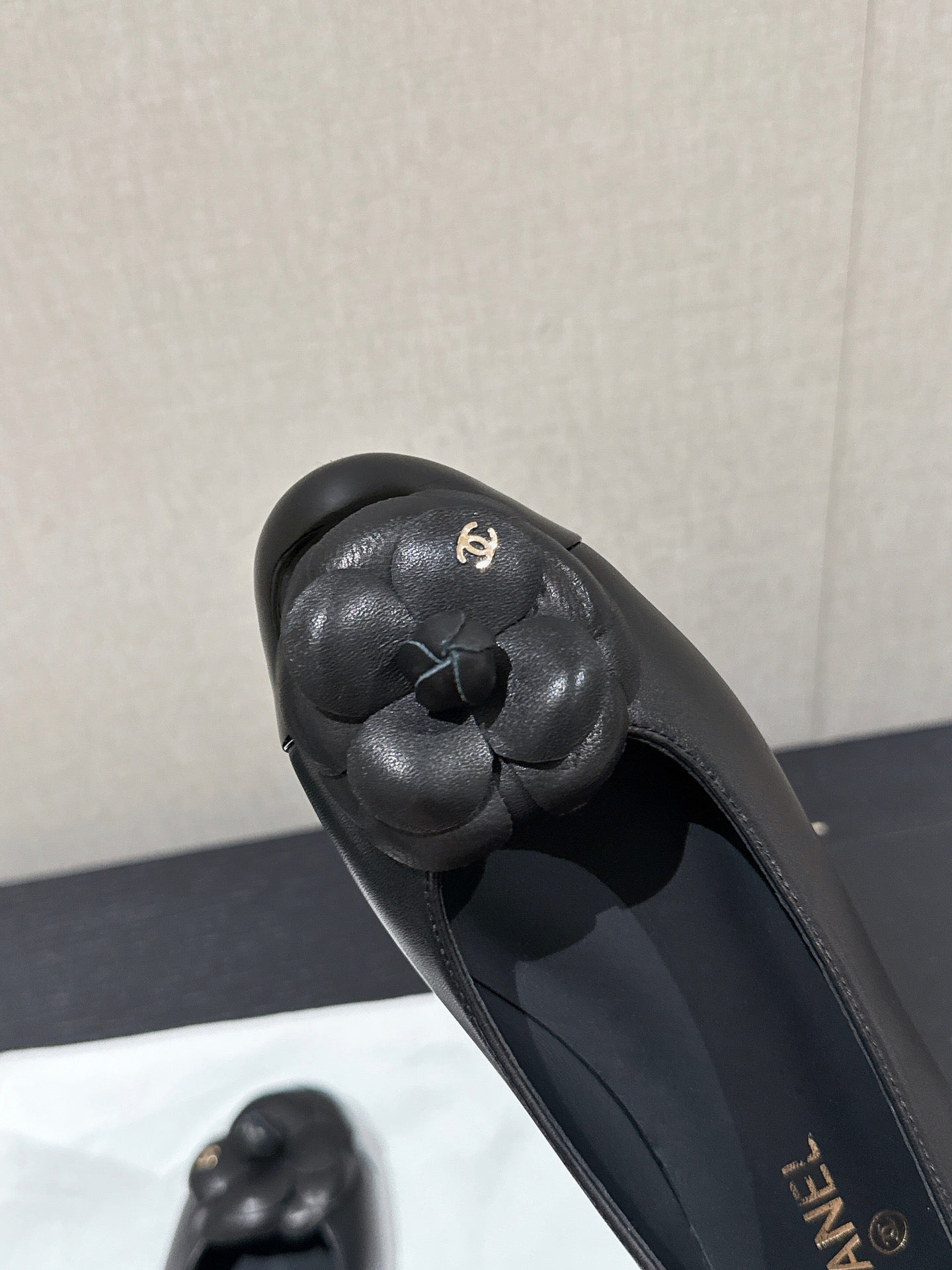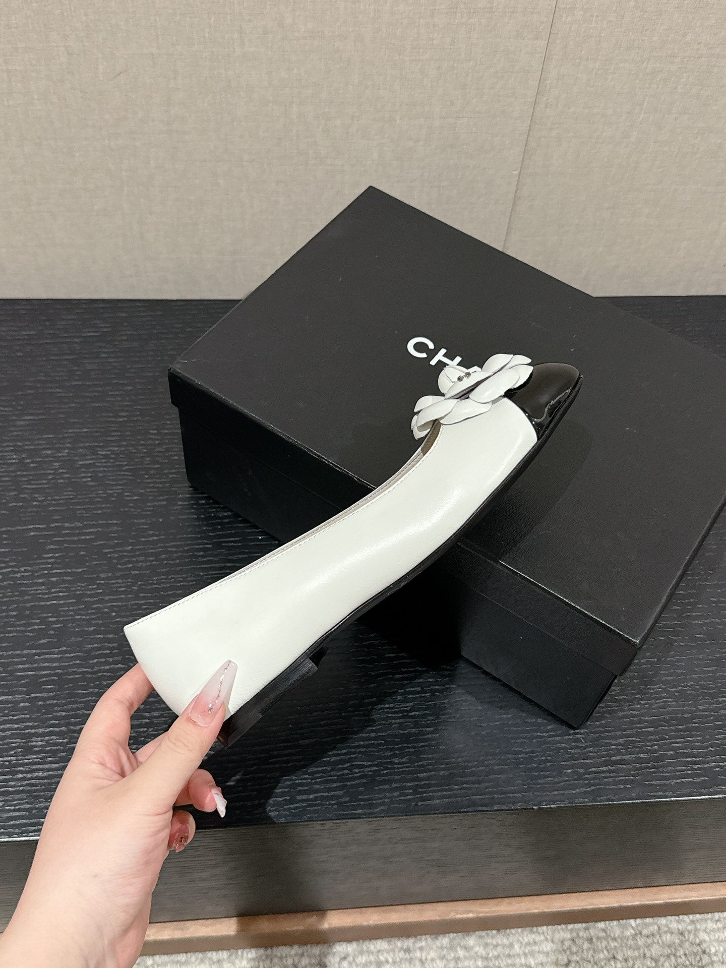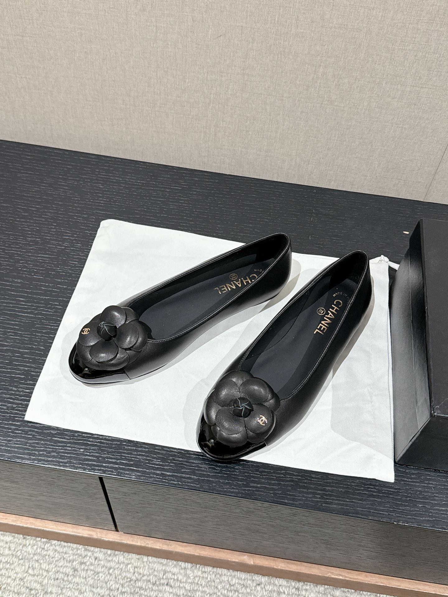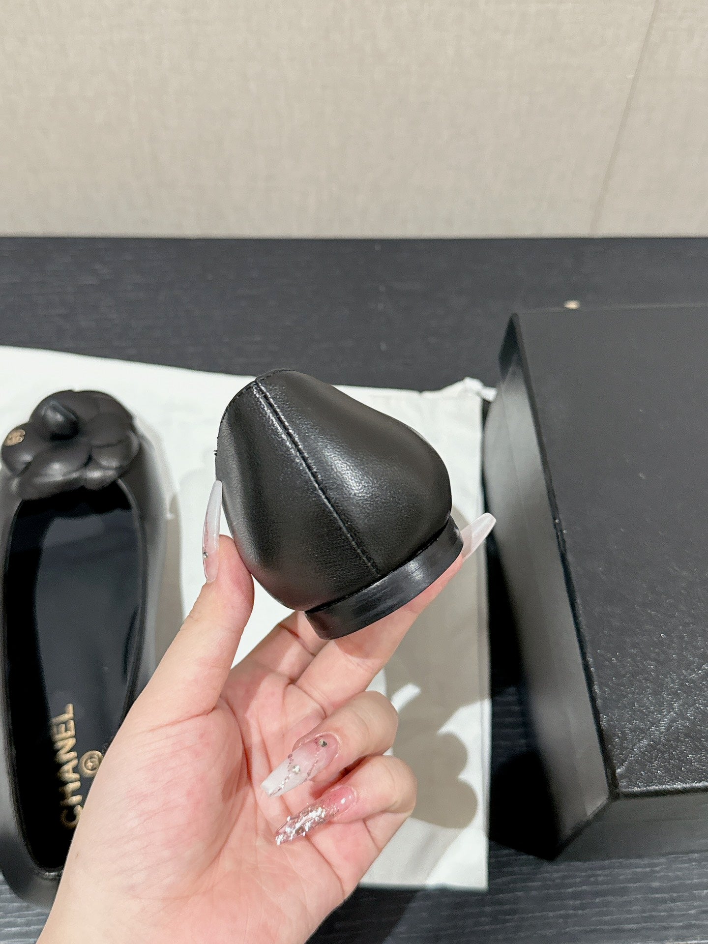 BALLET FLAT BLACK LAMBSKIN WITH WHITE BOW